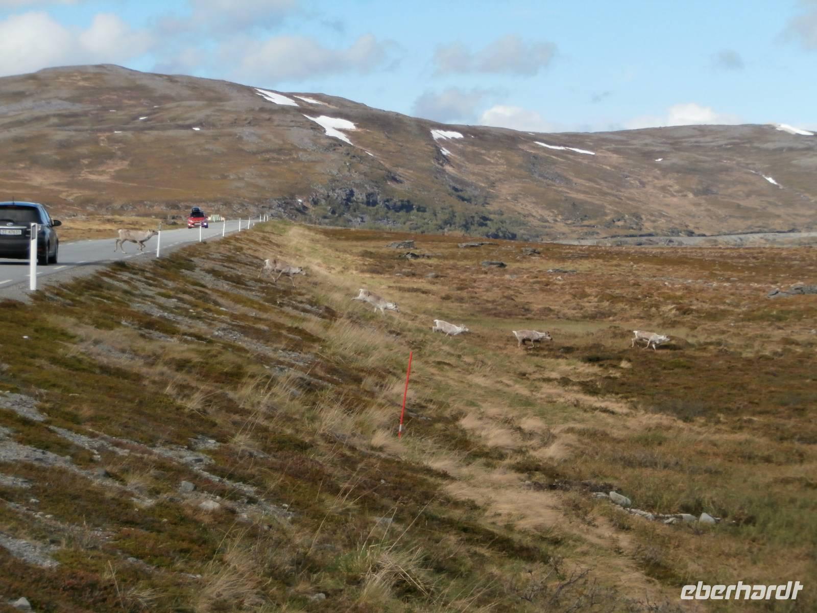 Heute Morgen zur Abfahrt sieht der Himmel etwas trüb aus, kalt ist es auch wieder. Immer wieder gibt es Regenschauer. Unsere geht Fahrt in Richtung Oslo. Durch schöne Landschaft entlang der Driva und später am großen Fluss Lagen entlang geht's weiter voran in Richtung Süden. Wir legen einen Stopp am Lappencamp ein und kaufen Ren- und Elch Tier Salami, sowie Felle und Käsehobel. An Dovregubbens Hall müssen wir wieder anhalten, denn auch hier gibt es viel zu sehen und Einkaufen ist immer angesagt. Auch in Dombas fahren wir raus, um im großen Center Informationsmaterial zu bekommen. Letzte Einkäufe tätigen wir und heute werden süße Sachen am Stand eingekauft. An der Stabkirche zu Ringebu müssen wir leider ein Foto von der eingerüsteten Kirche aufnehmen, einige Gäste schauen auch ins Innere der Kirche. An den Schanzen von Lillehammer genießen wir den fantastischen Ausblick auf die Stadt und den Möjsasee. Leider können wir heute keine Springer in Aktion erleben. Die Kilometer bis zum Hotel in Oslo am Flughafen wollen heute nicht weniger werden. Wir erleben noch den Wahnsinns Ausbau der E6 während der Weiterfahrt zum Hotel, heute zum Samstag wird hier gearbeitet. Wir freuen uns am Abend über wärmere Temperaturen und bekommen auch die Sonne noch zu sehen.