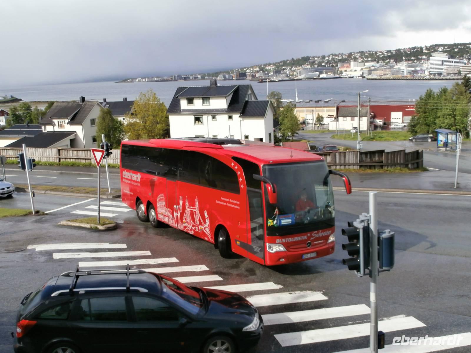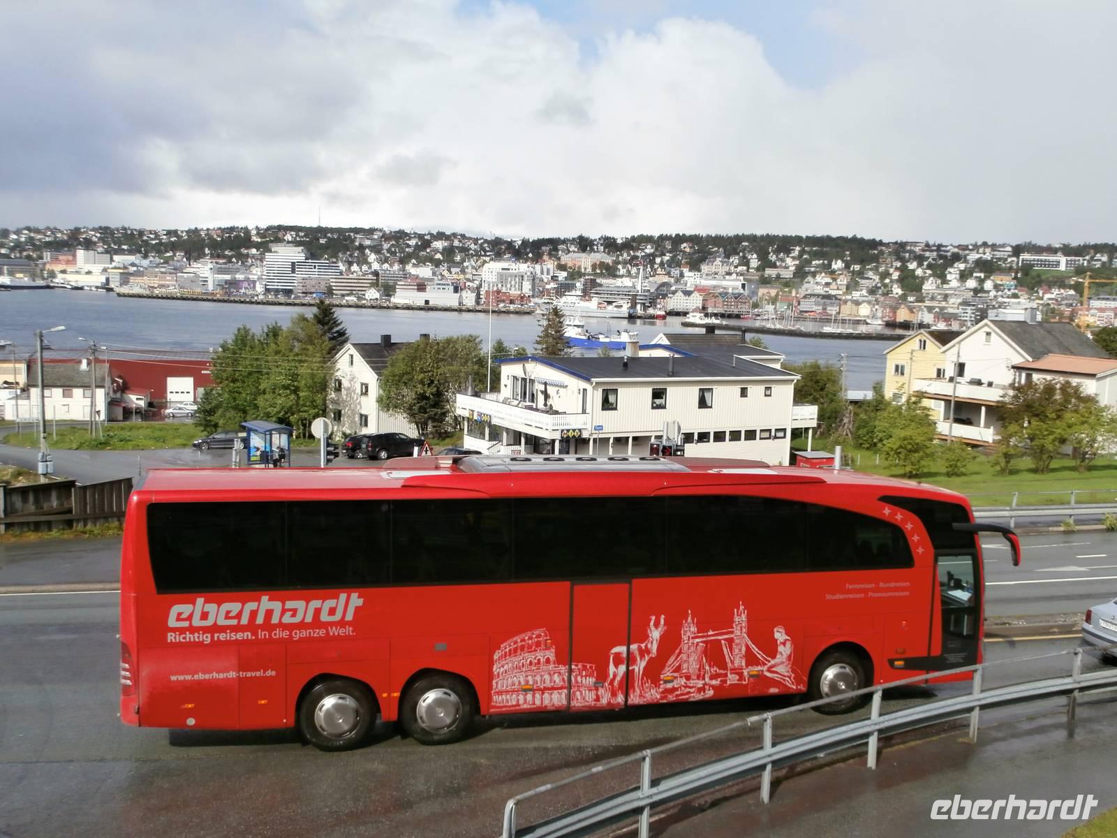 Leider müssen wir heute mit strömenden Regen und Kälte in den Tag starten. Ein Stück des Weges nehmen wir heute Morgen wieder den Weg wie bei Anreise durch den Nordkaptunnel. Vorbei an Alta mit den berühmten Felszeichnungen geht es durchs karge Nordland, entlang des Lyngenfjordes und der Lyngner Alpen, die wir kaum zu sehen bekommen, setzen wir unsere Fahrt fort in Richtung West. Nach 2 Fährüberfahrten und ständigen Regengüssen und Kälte kommen wir am Abend in Tromsö an. Diese Stadt nennt man auch die „Pforte zum Eismeer." Im Rica Grand Hotel verbringen wir wieder nur eine Nacht, hier sind wir gut untergebracht und jeder freut sich nach der letzten, kurzen Nacht auf sein Bett.