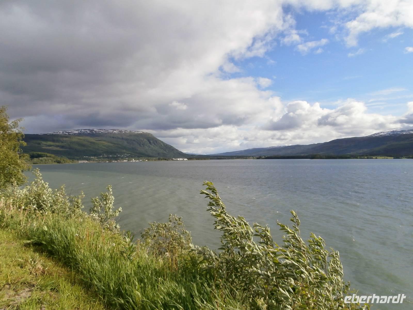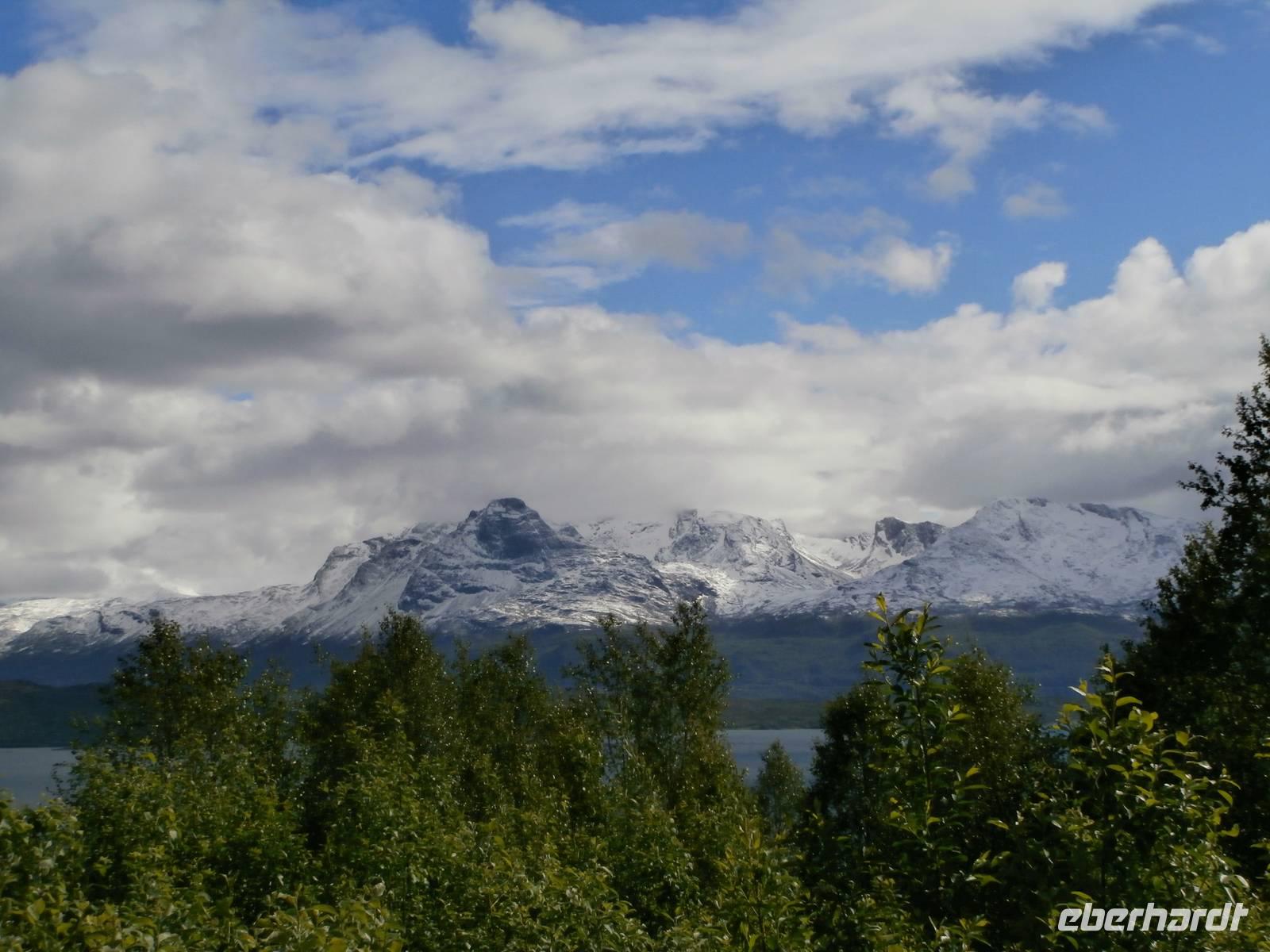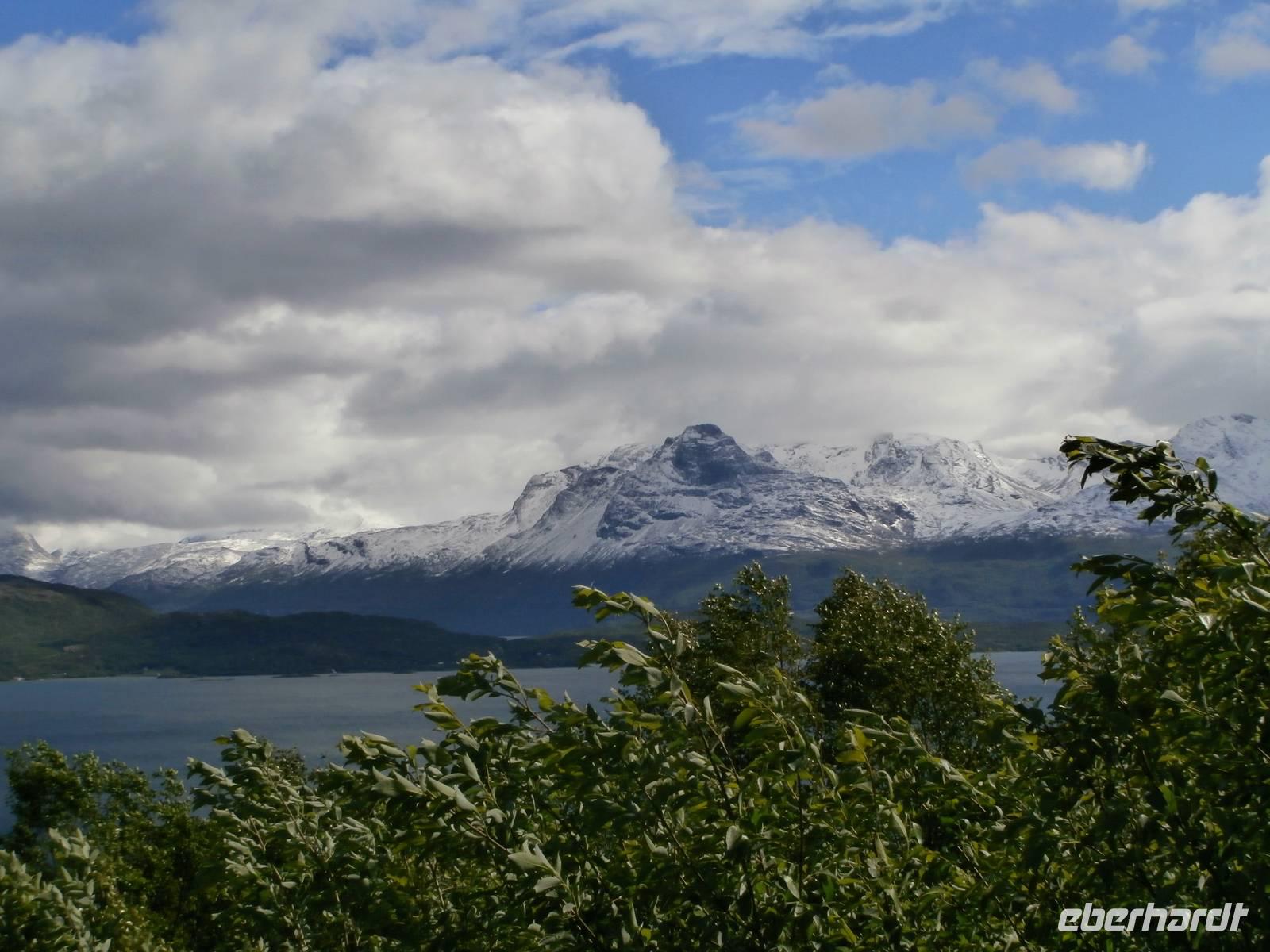 Mit Schneeschauern und Kälte verladen wir heute Morgen unsere Koffer und legen als Erstes einen Fotostopp am Dom ein. An der fantastischen Eismeerkathedrale steigen wir auch aus und besichtigen dieses tolle Bauwerk. Ihr Bau erinnert an die mächtigen Trockenfischgestelle in Nordnorwegen. Wir setzen unsere Fahrt heute bei fast Winterwetter fort, am Abend meldet der TV Sender Wintereinbruch in Tromsö, wir haben Glück, das wir schon in Harstad angekommen sind. Wir haben trotzdem ab und an klare Sicht auf Berge und Gletscher, die meisterhaft in Szene gesetzt sind. Der nächste Stopp bei den Samen an der E6 gefällt allen Gästen sehr gut. Im großen Zelt lodert ein wärmendes Feuer und die Gäste können hier Elch-und Rentiersalami verkosten und einkaufen. Wir besichtigen den Malselvfossen, Norwegens Nationalwasserfall mit Lachstreppe und im Restaurant, hier lassen wir uns heute die Fischsuppe schmecken. Bei leichter Wetterbesserung legen wir noch einige Fotostopps ein. Über die Tjeldsundbrücke fahren wir bis hinein nach Harstad. Die zeitige Ankunft im Hotel freut heute alle Gäste und das zeitige Abendessen läßt uns noch zum Bummeln im Stadtzentrum aufbrechen. Mit einem herrlichen Blick auf Fjord und Berge gehen wir heute zu Bett.