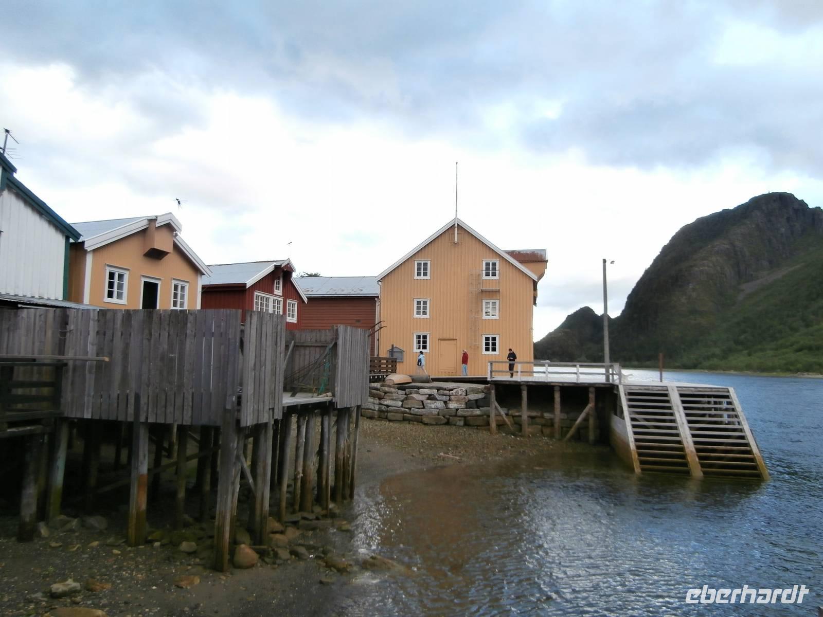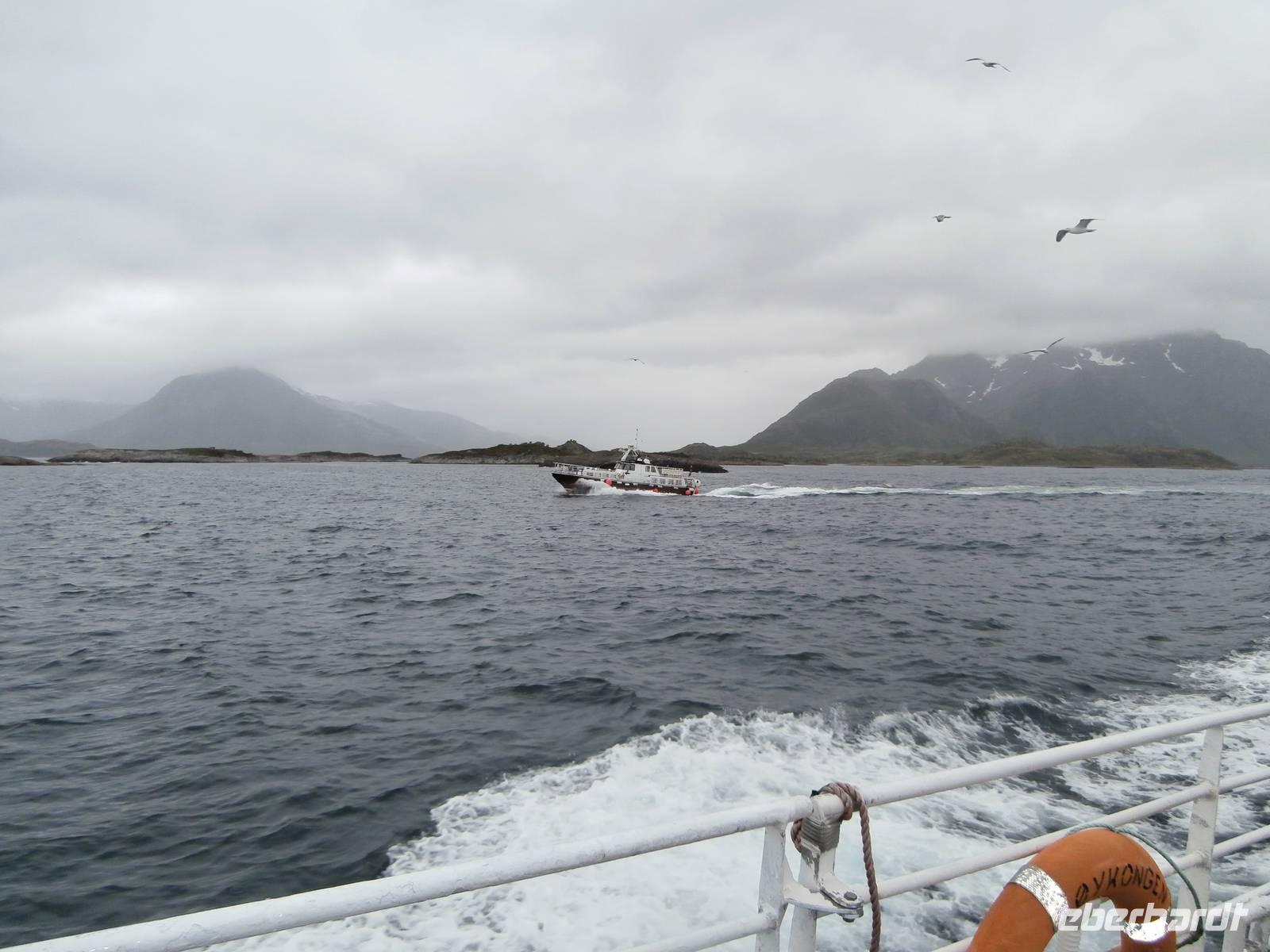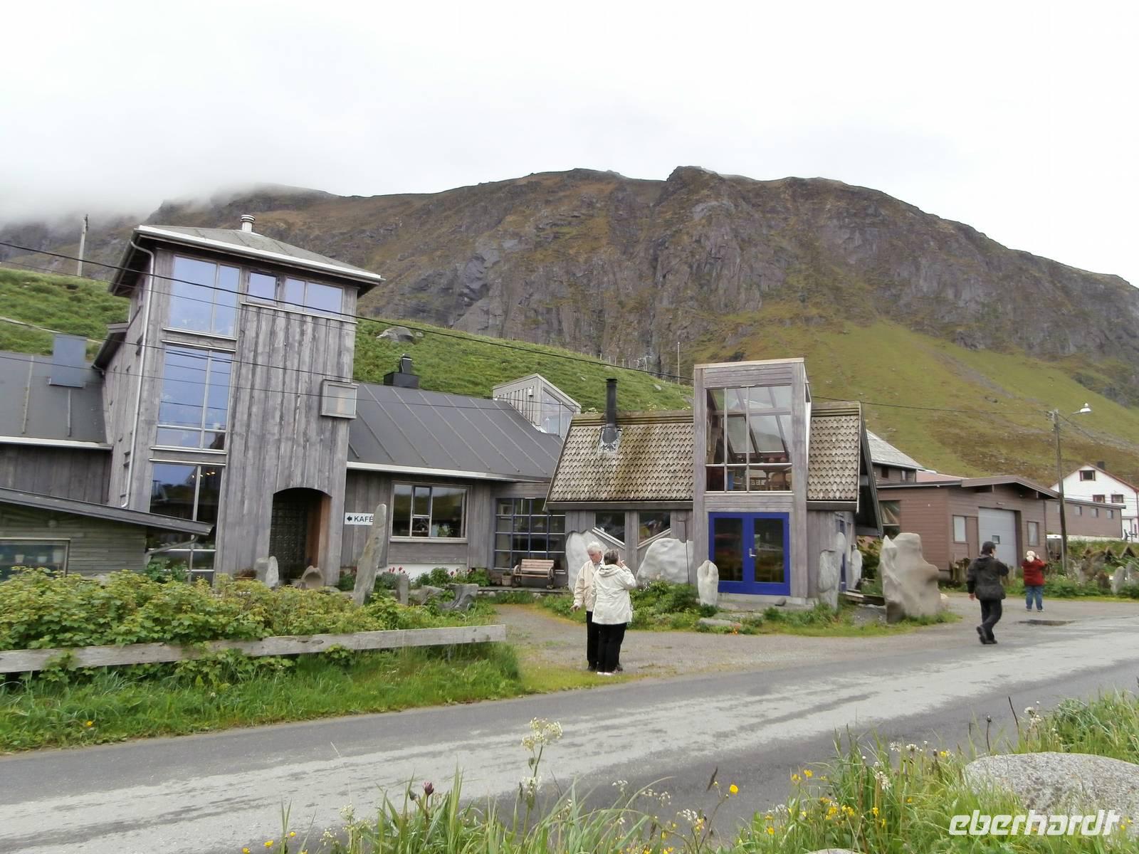 Start bei Regen, Nebel und kühlem Wetter zur Rundfahrt auf den Lofoten. Klare Luft und Regenstopp begleiten uns beim Rundgang durch Henningsvaer. Weiter geht unsere Fahrt nach Borg ins Wikinger Museum. Hier werden wir von Christian, unserem örtl. Führer, erwartet. Er bringt uns die Geschichte um die Wikinger mit ihrem Leben, Traditionen und Weisheiten sehr nah und bei der anschließenden Wikingermahlzeit sitzen wir alle beieinander in der großen Gildehalle am wärmenden Feuer und lassen uns die Lammsuppe schmecken. Ein Glas Meet von einigen Gästen dazu getrunken, rundet das Wikingermahl vorzüglich ab. In Flakstad stoppen wir am weißen Sandstrand, gerade Regenpause abgepasst, so gebe ich ein kleines Picknick an unsere Gäste aus. Wir lassen unsere Gäste von Elch-und Rentiersalami kosten. Die Multebeermarmelade schmeckt toll zu Brot und Kaviar aus der Tube, es kommt aufs Knäckebrot. Wir sehen uns auch noch die Kirche in Flakstad an. Ein nächster Stopp führt uns nach Vikten, ein hübscher Ort mit herrlichen rundgeschliffenen Steinen und Glas-und Keramikwerkstätten. Auf unserer Rückfahrt sehen wir noch die Lofot Kathedrale in Kabelvag, sie wird fotografiert, ja rein schauen können wir nicht, es ist geschlossen. Mit Sonne und ohne Regen kommen wir am Abend in Svolvär wieder an.