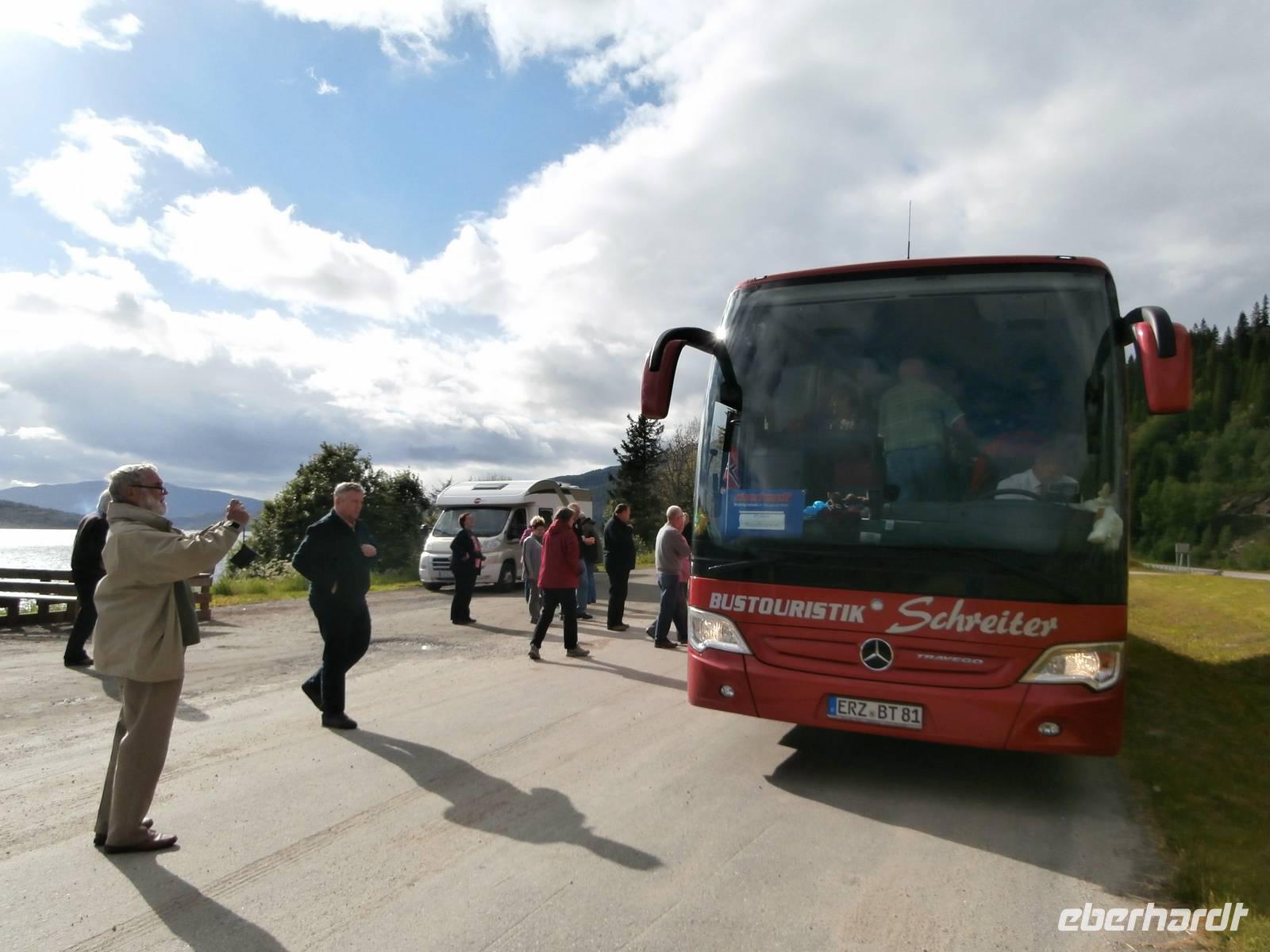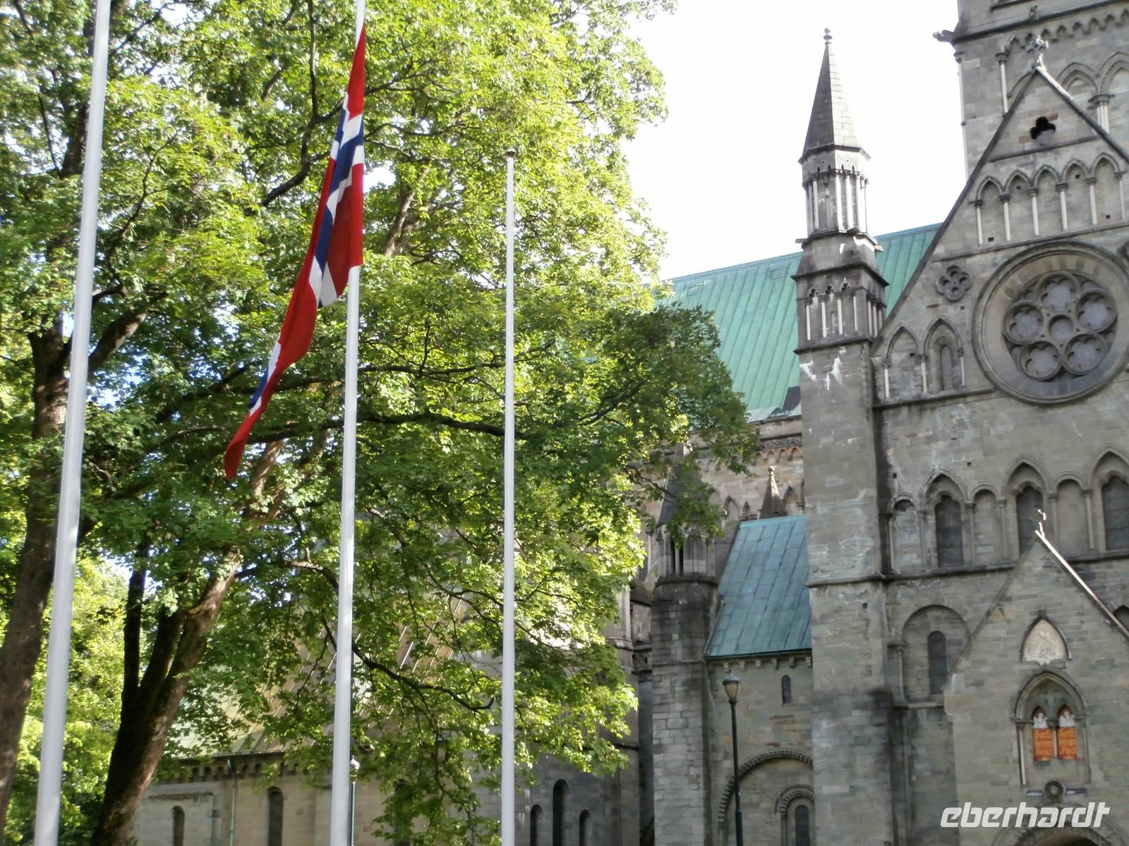 Nach einem guten Frühstück starten wir bei kühlem sonnigen Wetter mit nicht mehr als 7 Grad in Richtung Süden. Unsere Gäste sind während der Rundreise viel am Filmen und Fotografieren. Am Wasserfall Laksforsen gönnen wir uns einen längeren Fotostopp. Einige Regenschauer, aber auch trockene Phasen haben wir während der Fahrt. Vorbei an großen Seen, durch einige sehr lange Tunnel und einem Stopp am Wasserfall Formofossen. Schließlich entlang des Trondheimfjordes erreichen wir die Stadt am Fjord mit dem großartigen Nidaros Dom. Hier werden wir von Ingrid, unsere norwegische Führerin, erwartet und von ihr erfahren wir viel zur Geschichte des Bauwerkes. Unsere örtliche Reiseleiterin Blanca Bali erwartet uns danach am Bus. Mit ihr lernen wir Trondheim sehr gut kennen und auch den Fahrradlift führt sie uns vor. Der Tag war wieder voller schöner Eindrücke und so lässt sich jeder von uns das Abendessen im Clarion Hotel & Congress gut schmecken. Das Hotel ist erst 2012 eröffnet worden und verfügt über eine fantastische Skybar. Die Gäste starten noch zur abendlichen Exkursion durch Trondheim, es gibt wieder einige Regenschauer und mit Wind und Kälte endet auch der heutige Tag in Trondheim.