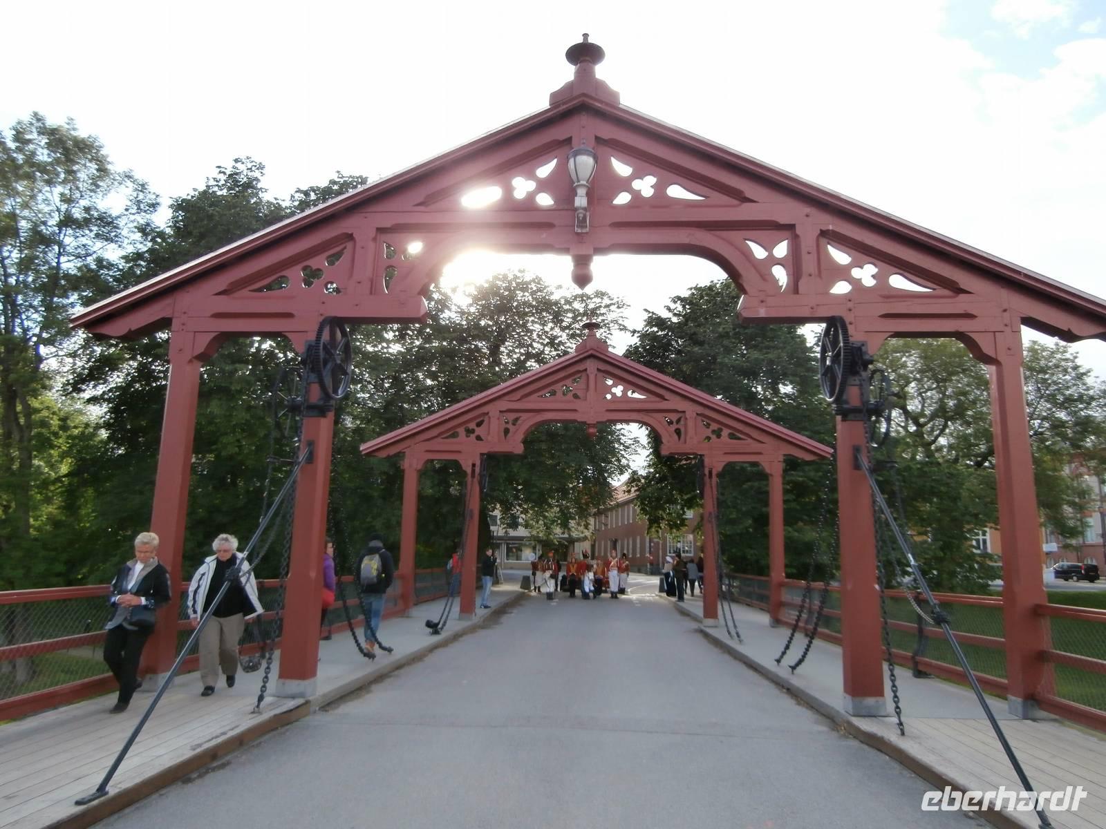 Nach einem guten Essen gehen viele der Gäste noch durch die Sjögata mit den liebevoll hergerichteten alten Holzhäusern entlang des Flusses. Wunderschöne Fotomotive werden uns präsentiert.