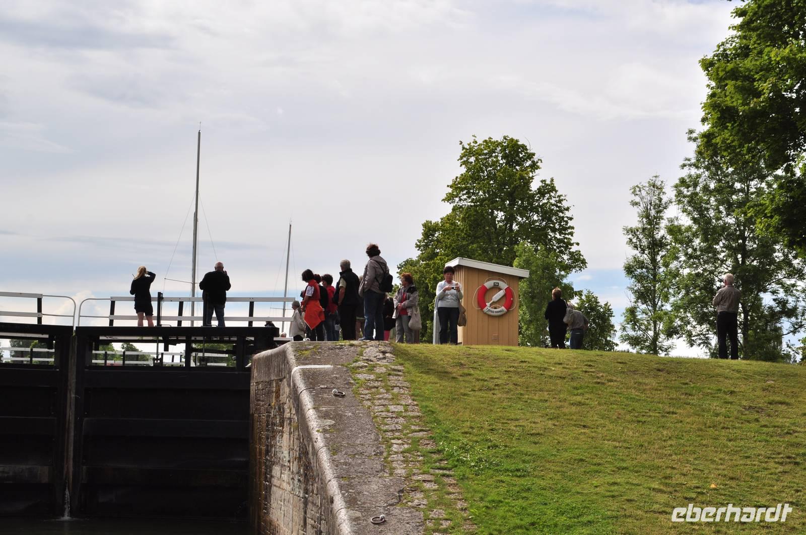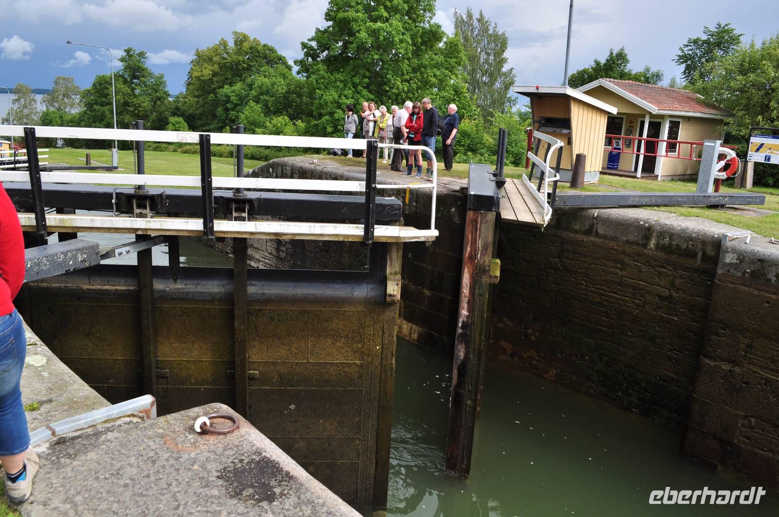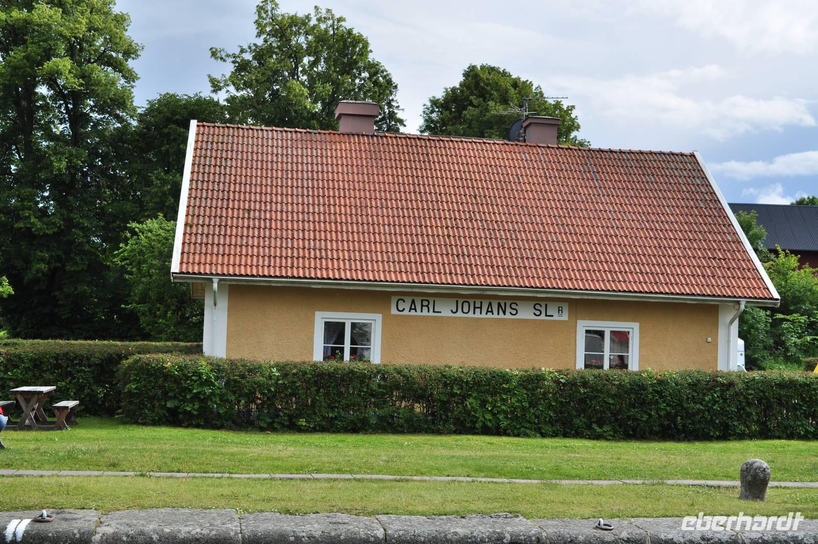 An diesem schönen Sommertag führt uns die nächste Etappe zum Götakanal nach Berg. Die Carl Johanns Slussen ist das beeindruckendste Bauwerk des Kanals. Es handelt sich dabei um eine