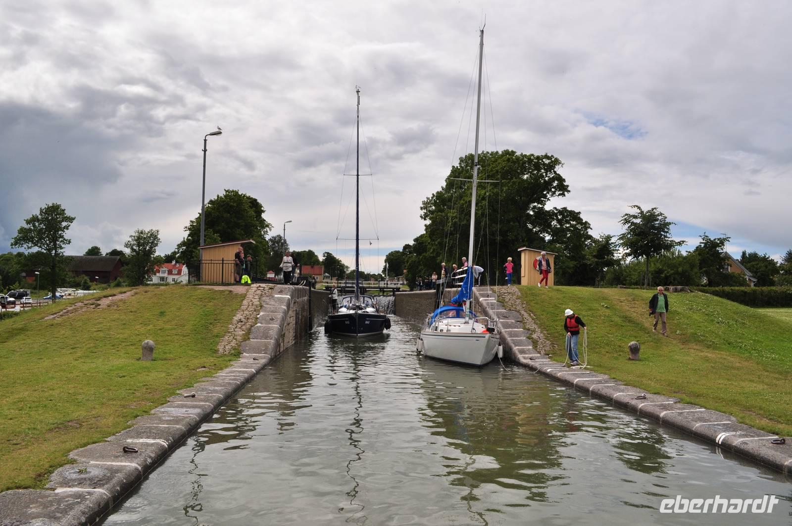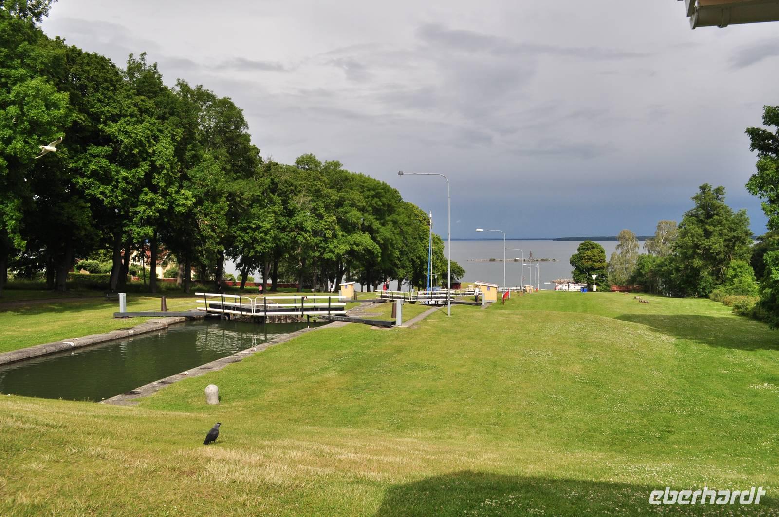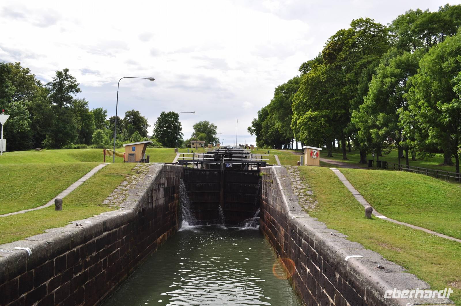 An diesem schönen Sommertag führt uns die nächste Etappe zum Götakanal nach Berg. Die Carl Johanns Slussen ist das beeindruckendste Bauwerk des Kanals. Es handelt sich dabei um eine