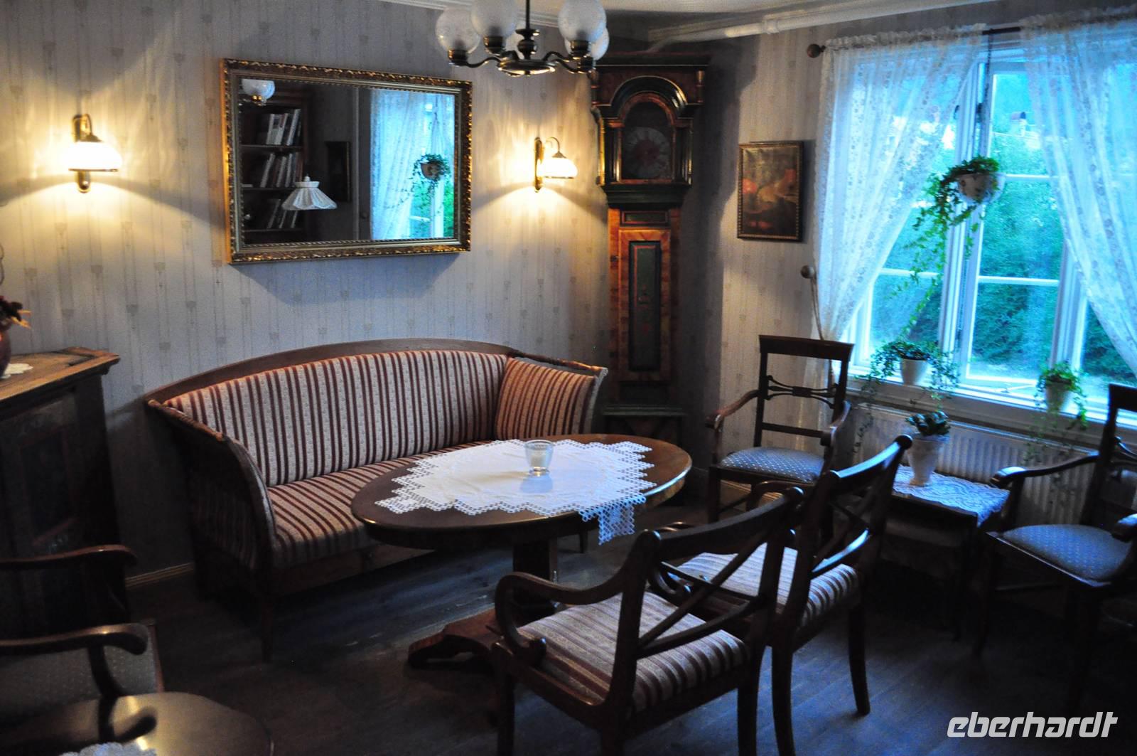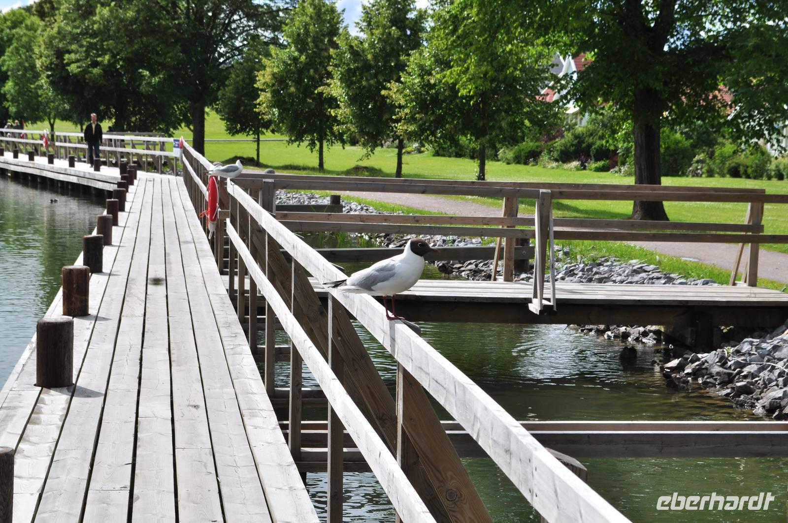Wir verlassen die Stadt über den Riksvägen 40 in Richtung Jönköping. Durch wunderschöne schwedentypische Landschaften (Wälder, Seen, Rote Häuschen) führt uns der Weg nach Jönköping, ein wichtiger Verkehrsknotenpunkt am Südufer des zweitgrößten schwedischen Sees dem Vättern gelegen. Wir treffen auf die Europastraße E4, die uns nun weiter in Richtung Stockholm bringen wird. An der Autobahn grüßt der Riese Vist, der für seine Frau ein wenig Erde in den See warf um ihr die Überquerung zu erleichtern. Die noch heute existierende Insel Visingsö sehen wir von Gränna aus, einem kleinen Städtchen, direkt am steilen Ostufer gelegen. Dieser Ort ist im ganzen Land bekannt wegen seiner Polkagrisar (Polka-Schweinchen), den Zuckerstangen, denen bereits viele Generationen an Kindern verfallen sind. Auch wir bekommen die Möglichkeit zu kosten und zu beobachten wie diese rot-weiß-gestreiften nach Pfefferminz schmeckenden Stangen hergestellt werden.