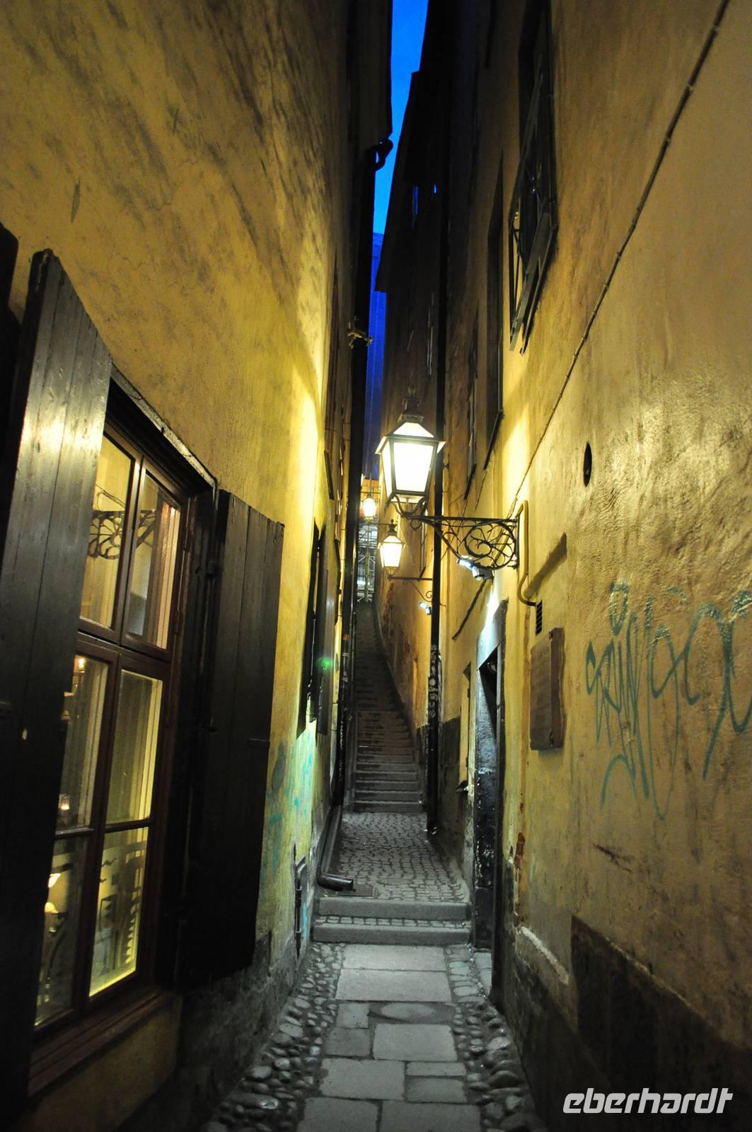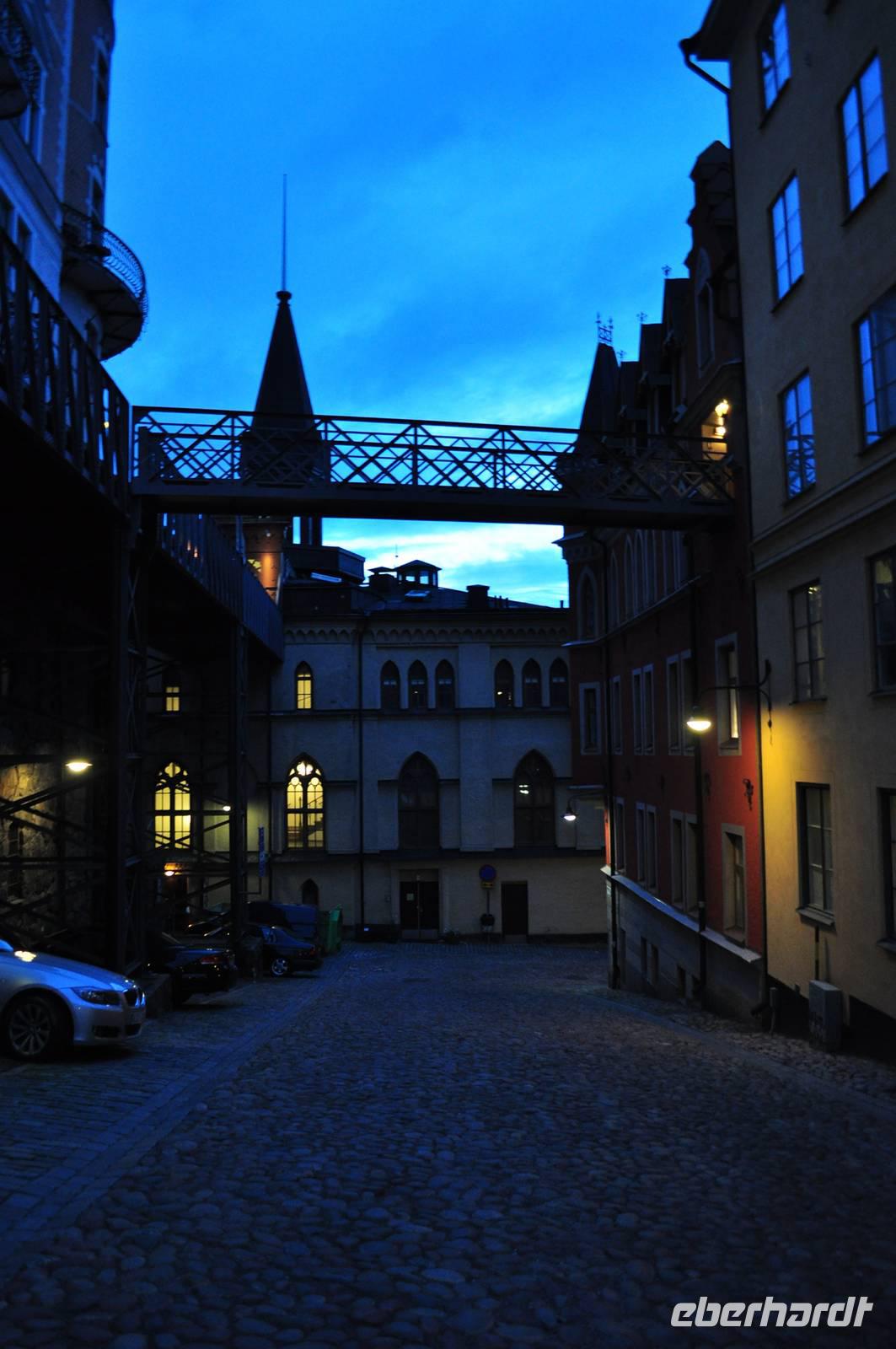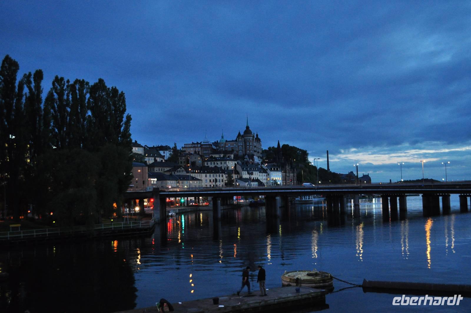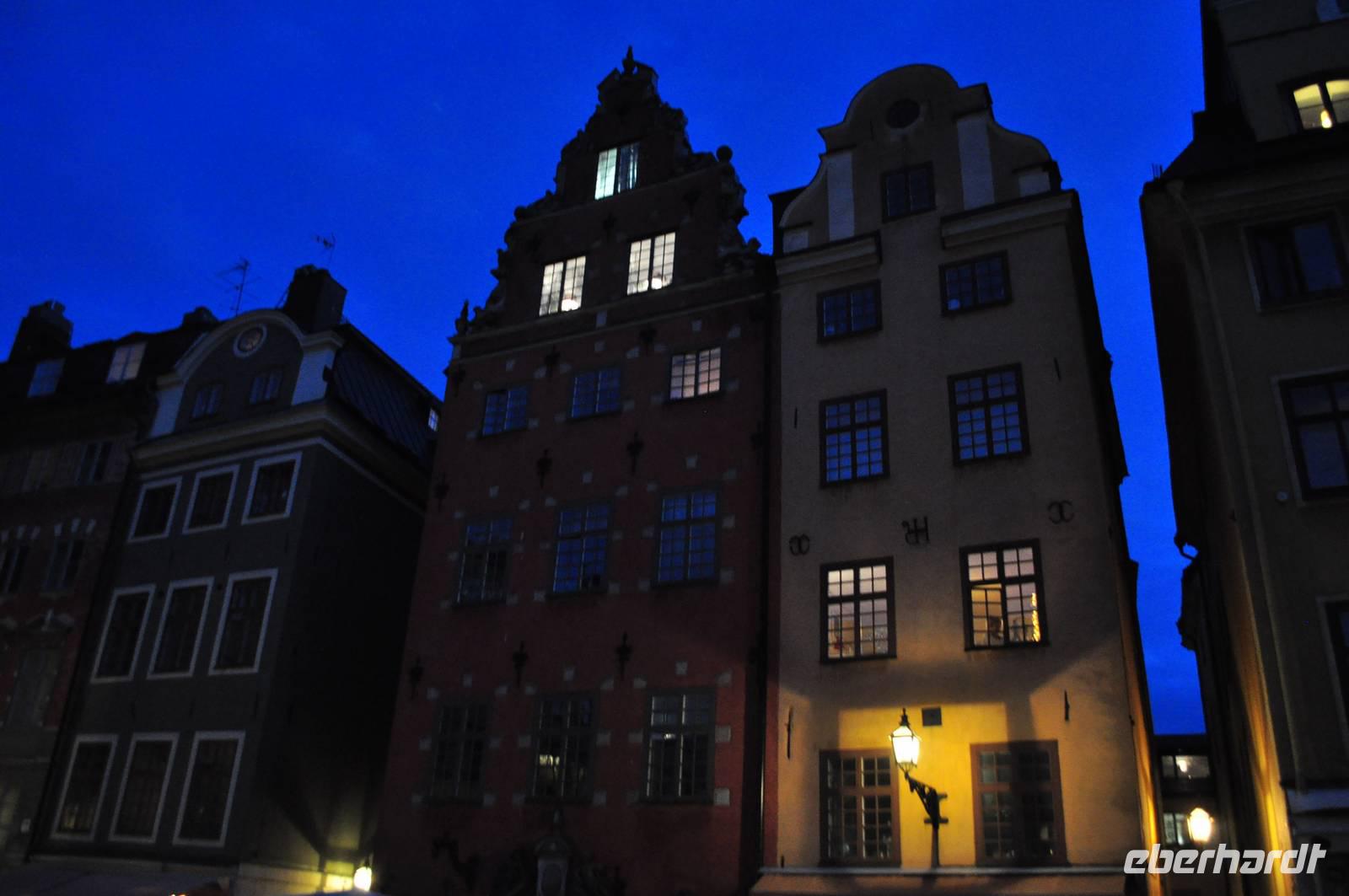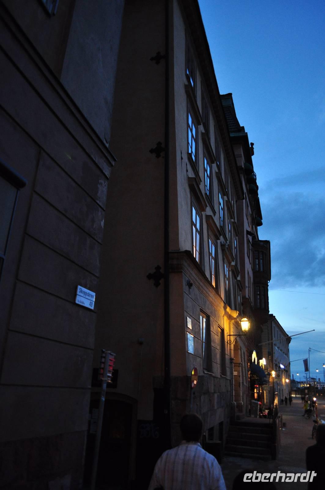 Für interessierte Gäste biete ich einen Abendspaziergang durch Gamla Stan an. Nur ca. 5 Minuten entfernt liegt der S-Bahnhof der mit einer regelmäßigen Verbindung eine Fahrt in die Altstadt erlaubt. Stockholm im Sommer erzeugt durchaus Erinnerungen an mediterrane Fischerstädtchen. Mildes Klima, laue und natürlich weiße Sommernächte. Es ist geradezu idyllisch und nach dazu leer, keine großen Touristengruppen. Nach Mitternacht erreichen wir mit der Bahn unser Hotel.