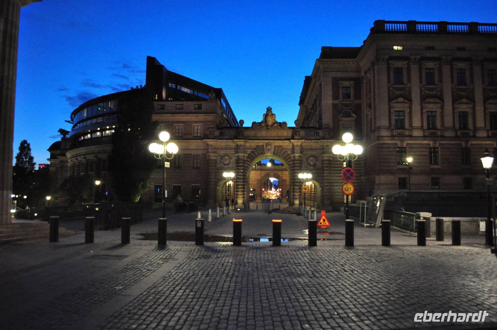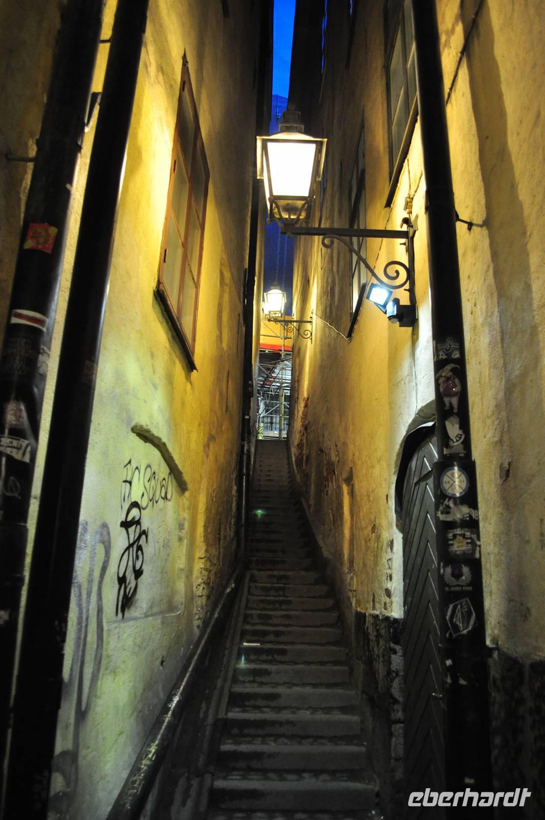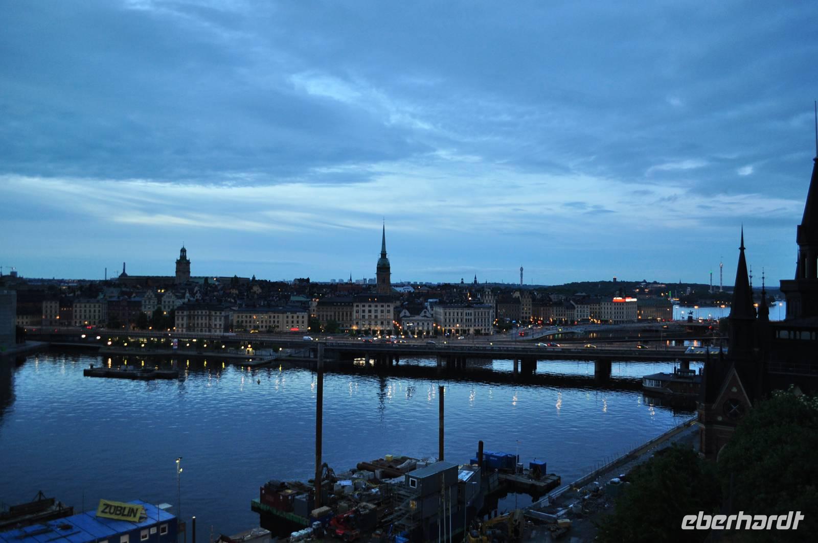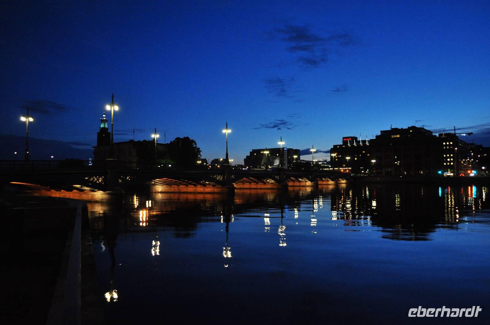 Für interessierte Gäste biete ich einen Abendspaziergang durch Gamla Stan an. Nur ca. 5 Minuten entfernt liegt der S-Bahnhof der mit einer regelmäßigen Verbindung eine Fahrt in die Altstadt erlaubt. Stockholm im Sommer erzeugt durchaus Erinnerungen an mediterrane Fischerstädtchen. Mildes Klima, laue und natürlich weiße Sommernächte. Es ist geradezu idyllisch und nach dazu leer, keine großen Touristengruppen. Nach Mitternacht erreichen wir mit der Bahn unser Hotel.