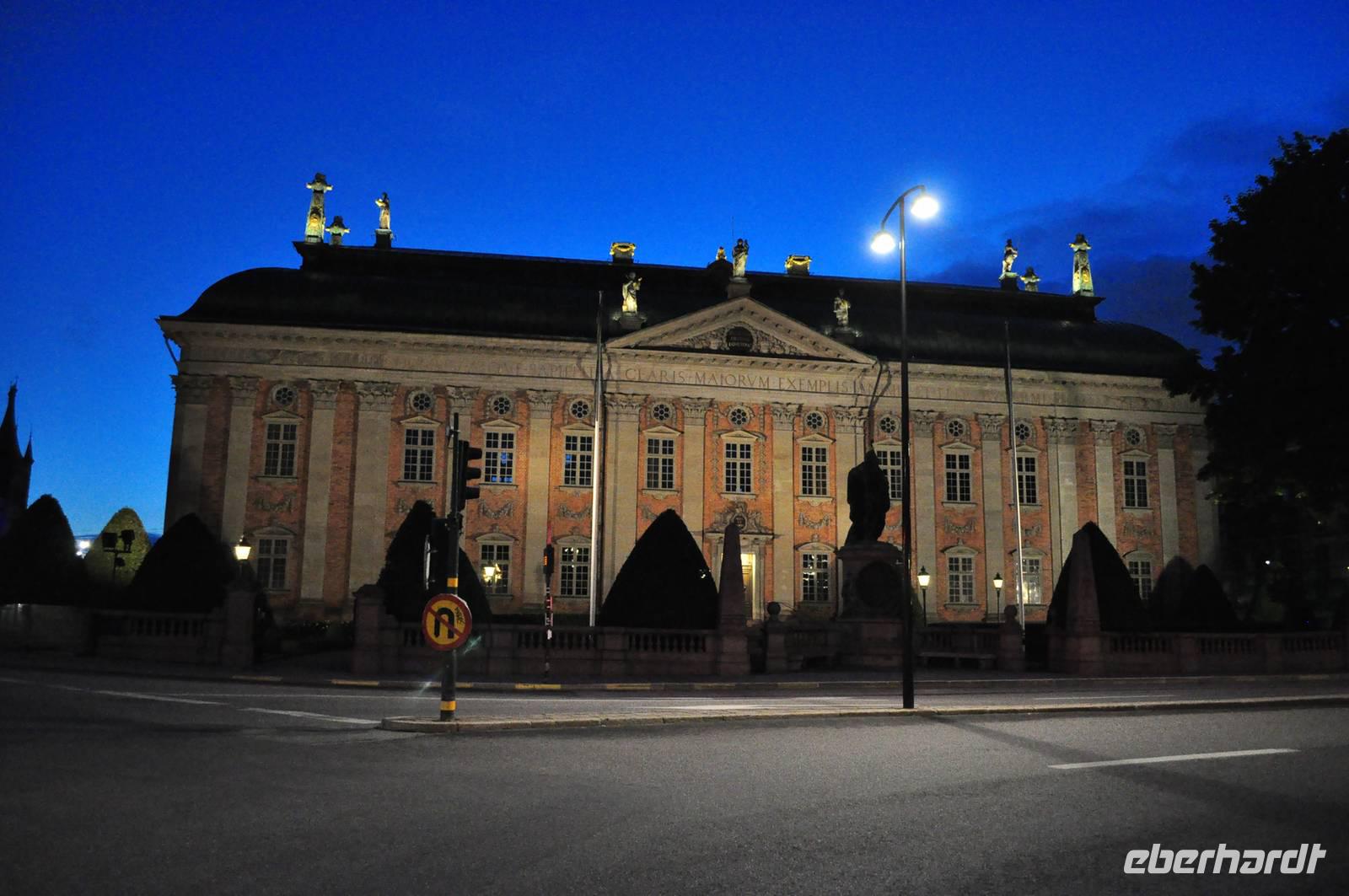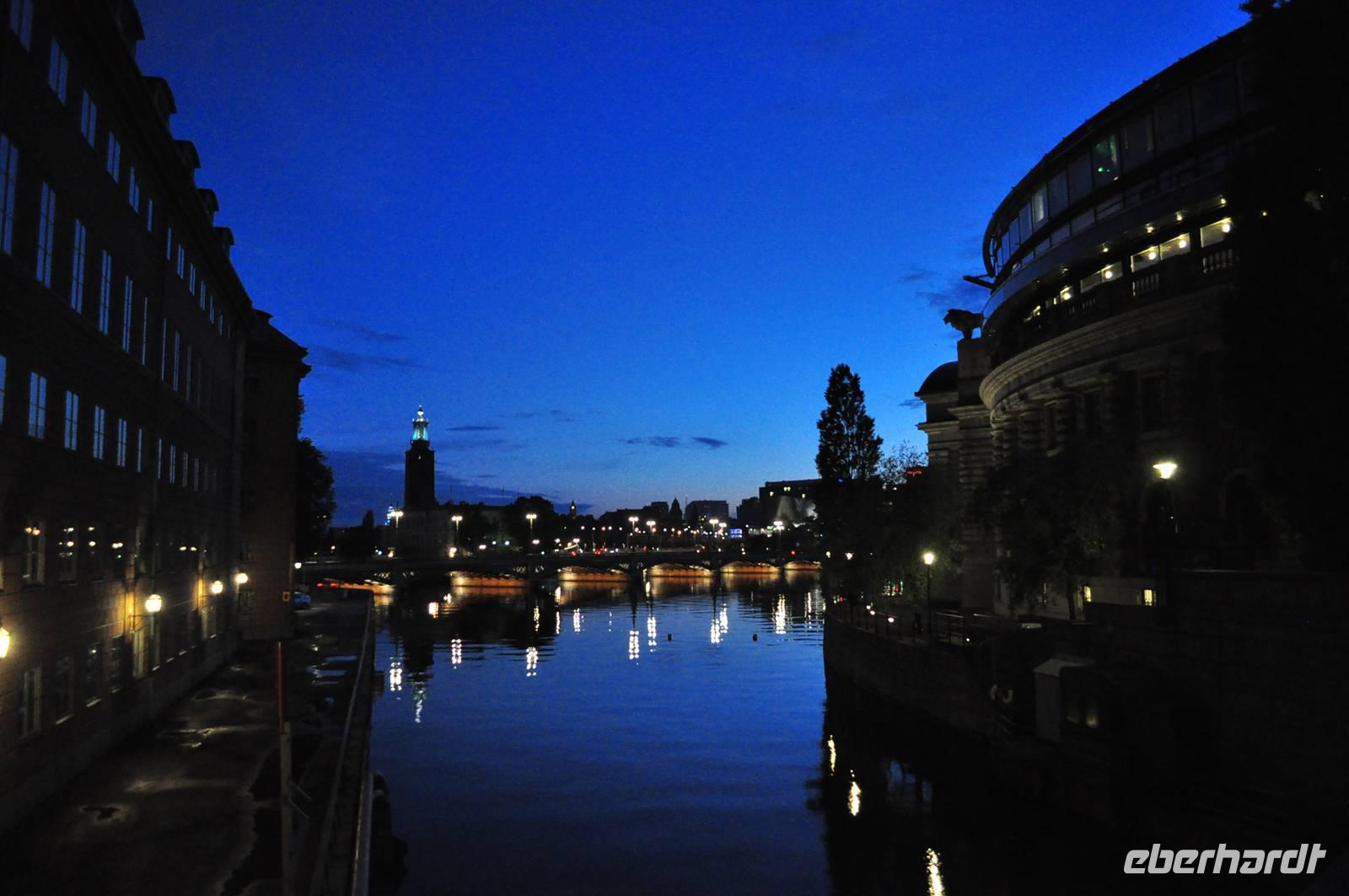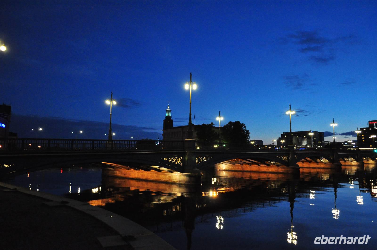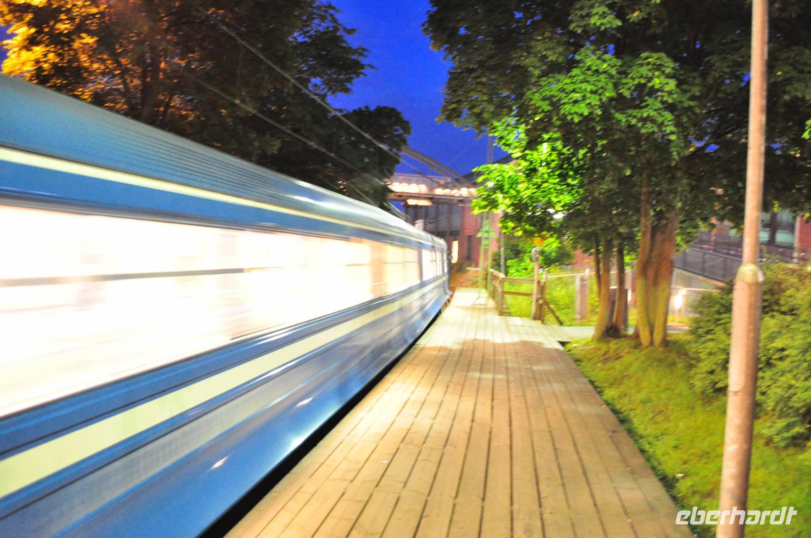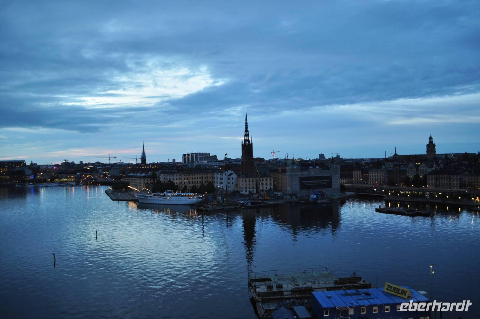 Für interessierte Gäste biete ich einen Abendspaziergang durch Gamla Stan an. Nur ca. 5 Minuten entfernt liegt der S-Bahnhof der mit einer regelmäßigen Verbindung eine Fahrt in die Altstadt erlaubt. Stockholm im Sommer erzeugt durchaus Erinnerungen an mediterrane Fischerstädtchen. Mildes Klima, laue und natürlich weiße Sommernächte. Es ist geradezu idyllisch und nach dazu leer, keine großen Touristengruppen. Nach Mitternacht erreichen wir mit der Bahn unser Hotel.