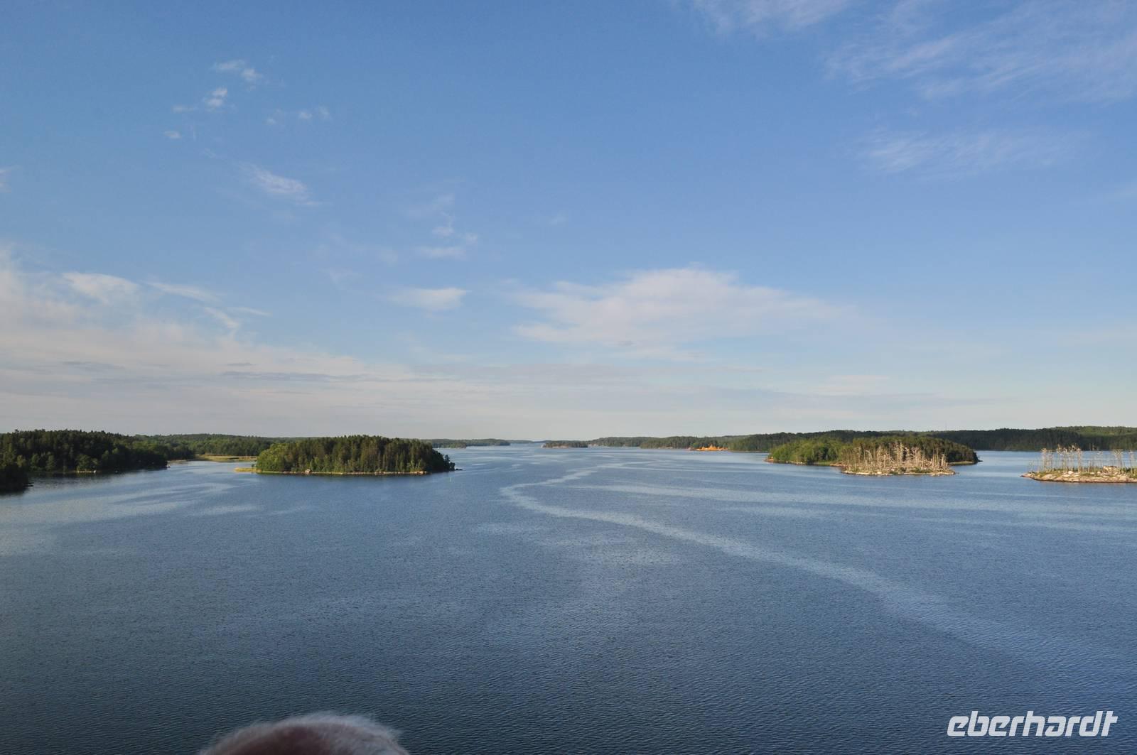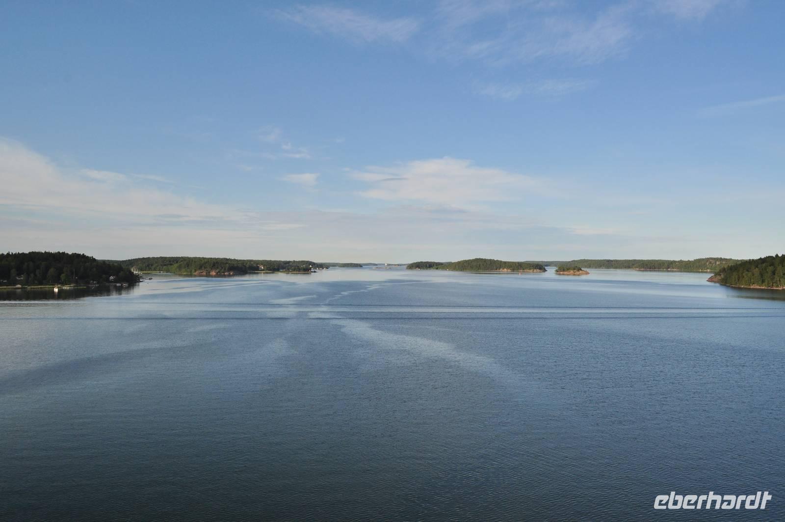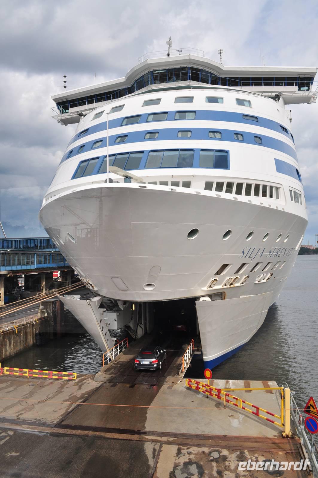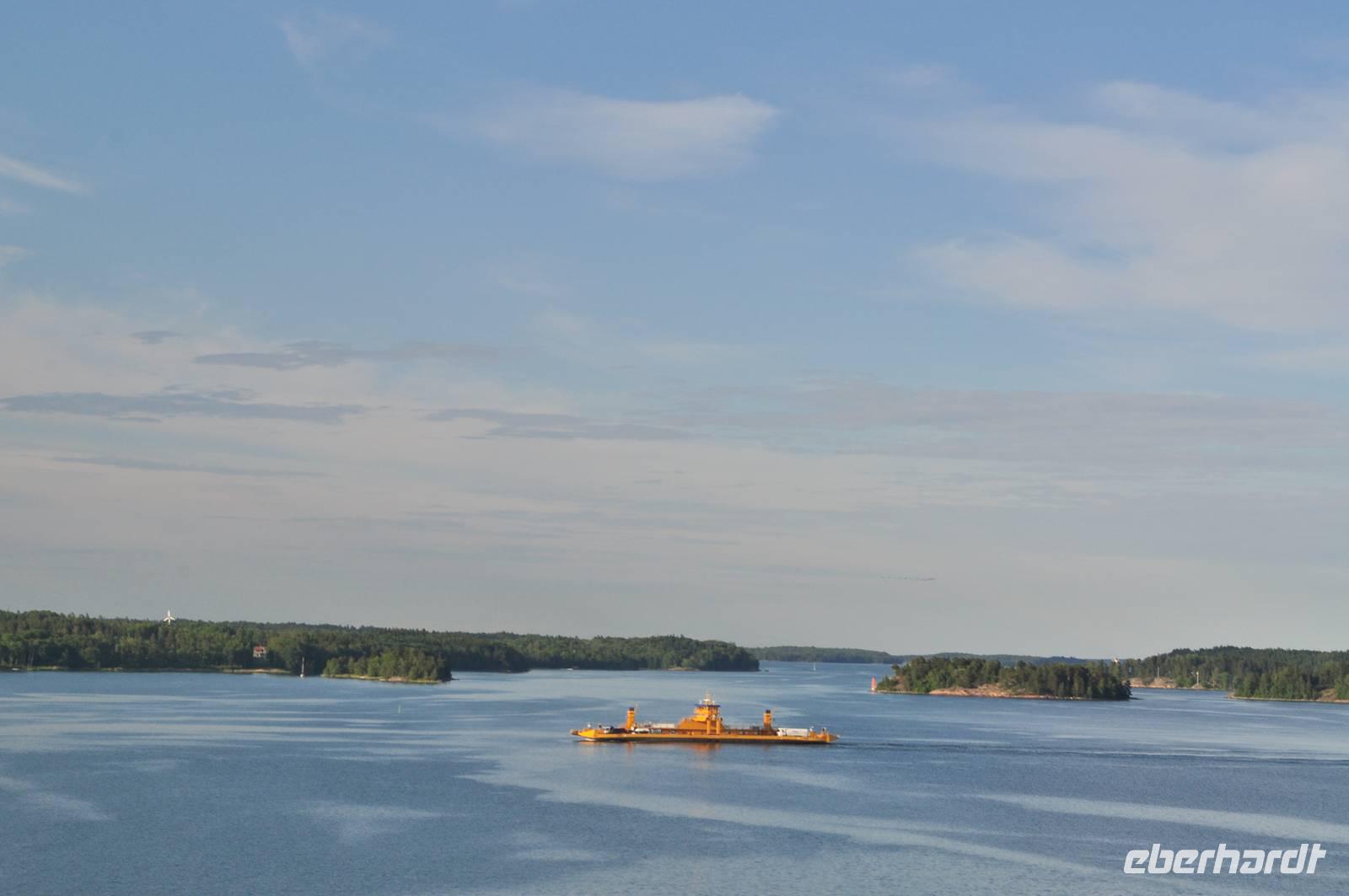 Einige Gäste nutzen mit mir die Zeit, Stockholm auch von der Seeseite zu betrachten, das geht mit den kleinen Djurgården Fähren, die von Gamla Stan in Richtung Gröna Lund im 10-Minuten-Takt verkehren. Für die Rückfahrt bleiben wir auf der Fähre, es gilt das gleiche Ticket. Am frühen Nachmittag werden wir am Schloss abgeholt und fahren den kurzen Weg zum Silja Terminal. Unser Schiff die MS Silja Serenade überrascht positiv. Selbst erfahrene Fährnutzer sind von diesem Schiff beeindruckt. Als erstes fällt die Promenade auf, die sich über die gesamte Schiffslänge hinzieht und links und rechts von vielen Schiffskabinen umrankt wird. Das Angebot ist kaum zu toppen. Den Unterhaltungsbedürftigen bietet es ein Theater, dem Erholungssuchenden bietet es ein Wellness Bereich. Dem Besinnlichen stehen Lounges zur Verfügung. Auch das Buffet ist hervorragend, trotz der vielen Menschen an Bord läuft alles reibungslos und ohne langes Warten. Die See zwischen den Schären ist sehr ruhig. Die vielen tausend Schären erwecken stellenweise eher den Eindruck einer Flusskreuzfahrt als einer Querung der Ostsee. Aber diese Schären sorgen genau für diese ruhige See. In der Nacht beobachten wir an Deck unseren kleinen zehnminütigen Zwischenstopp in Mariehamn, dem Hauptort der autonomen Ålandinseln. Am Morgen rundet die wunderschöne Einfahrt in den Hafen von Helsinki diese entspannte Überfahrt ab.