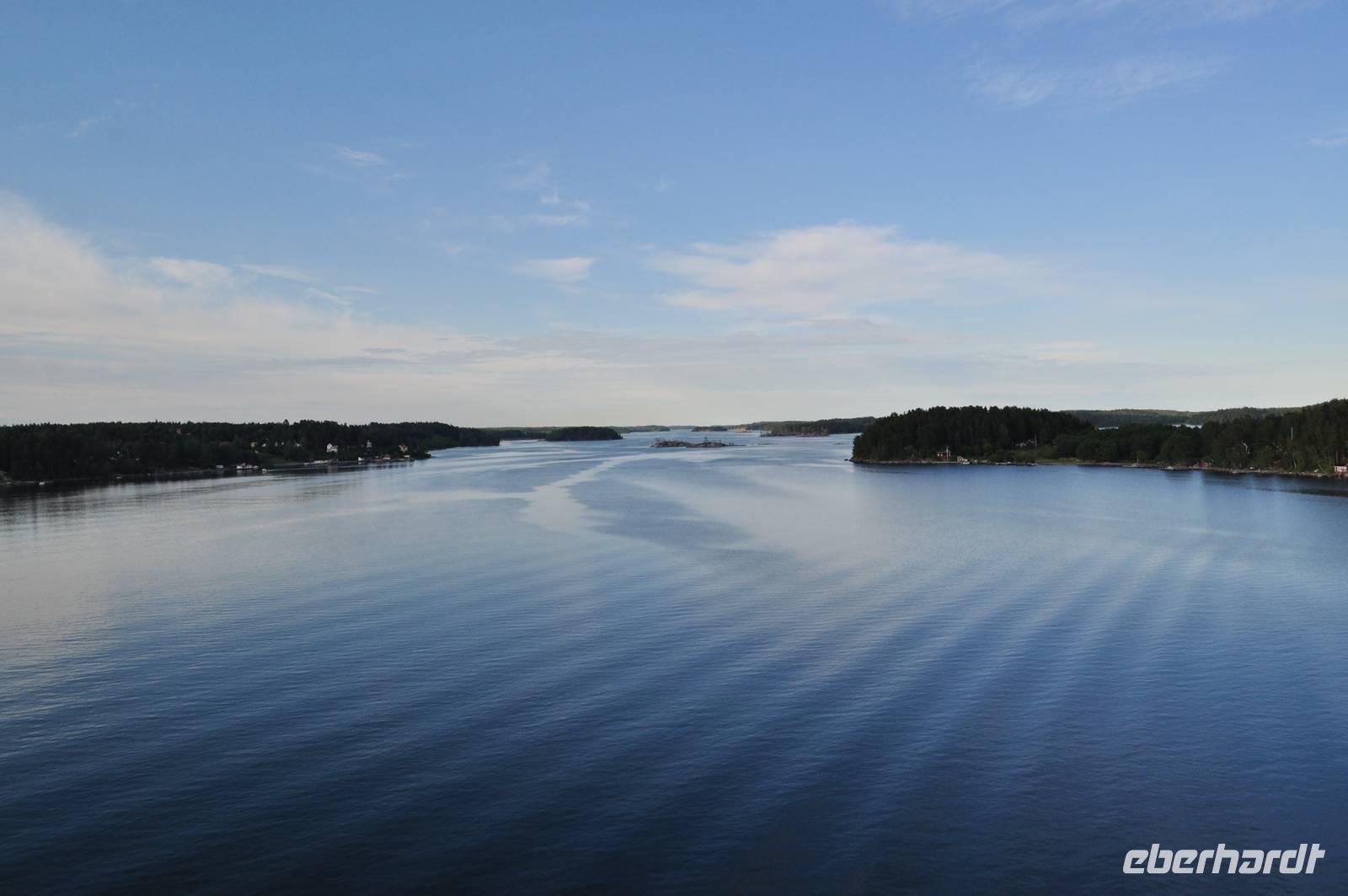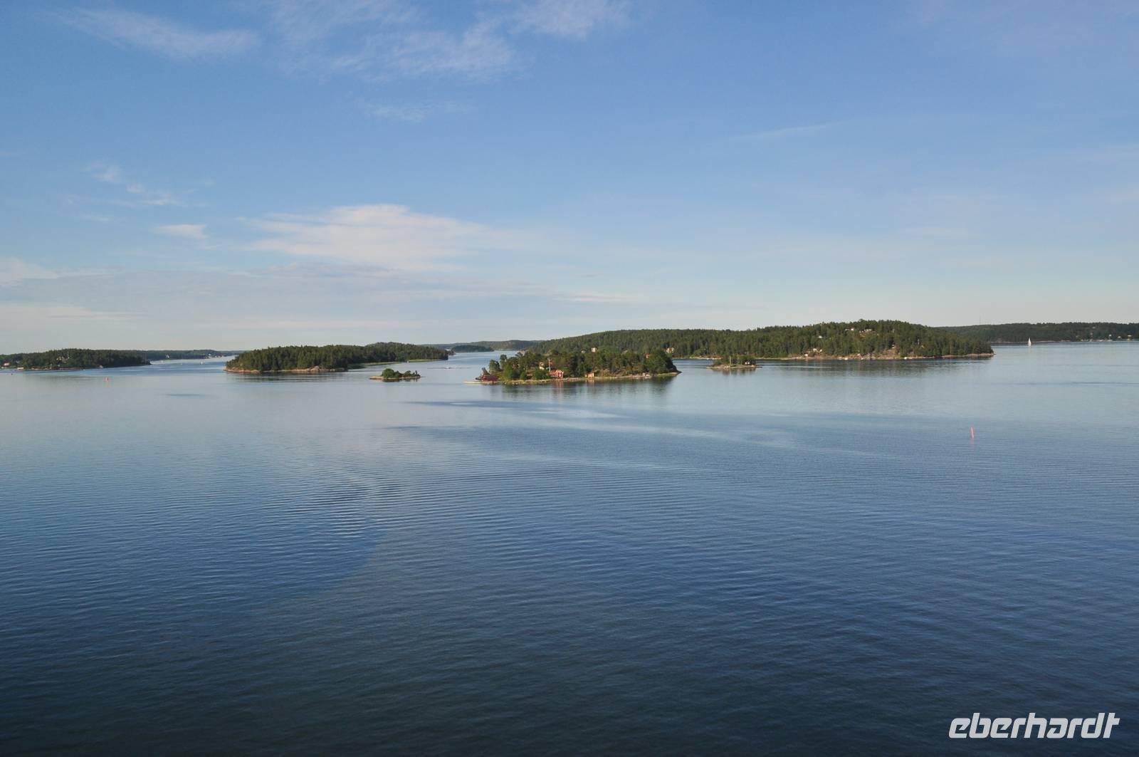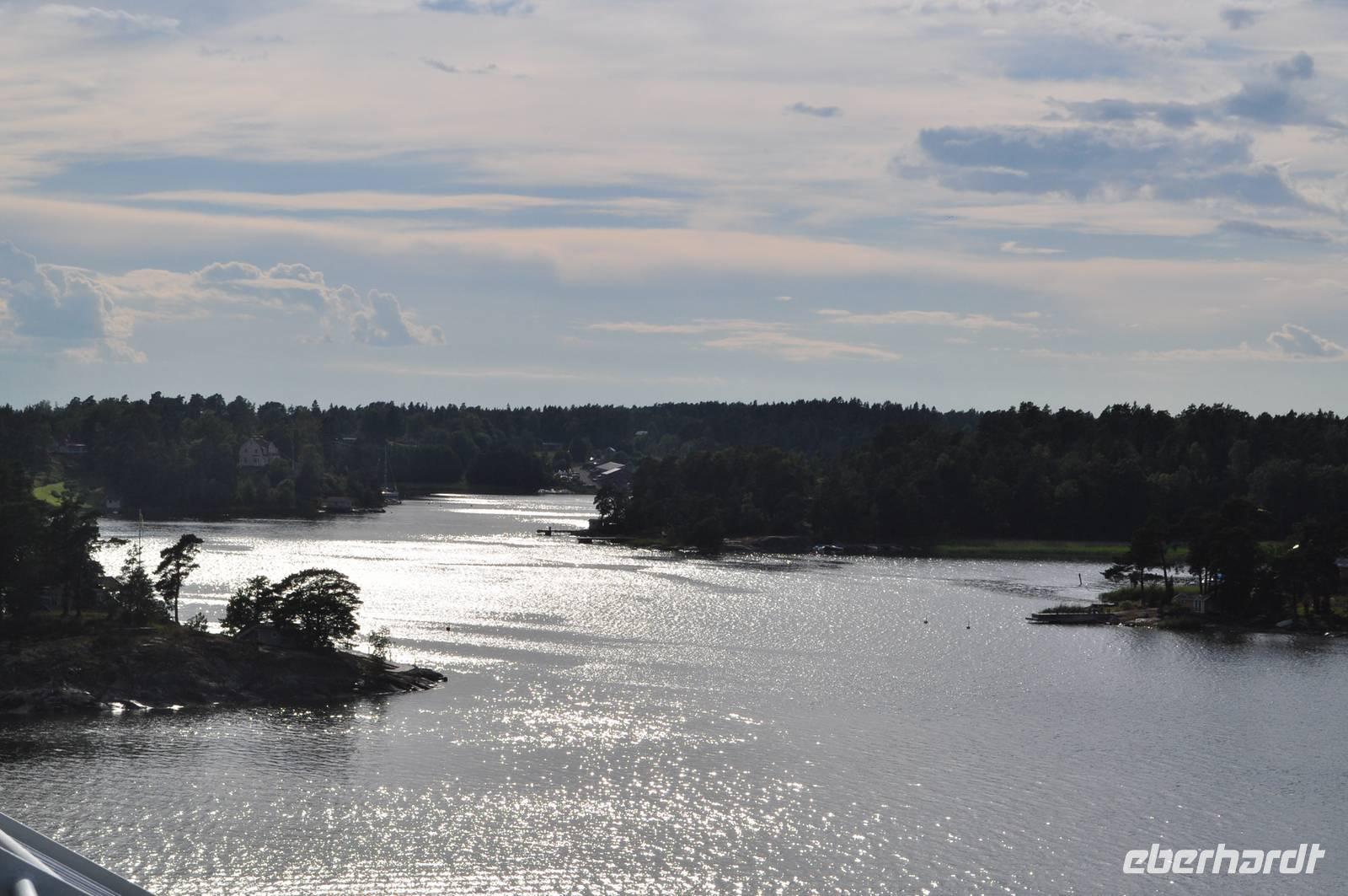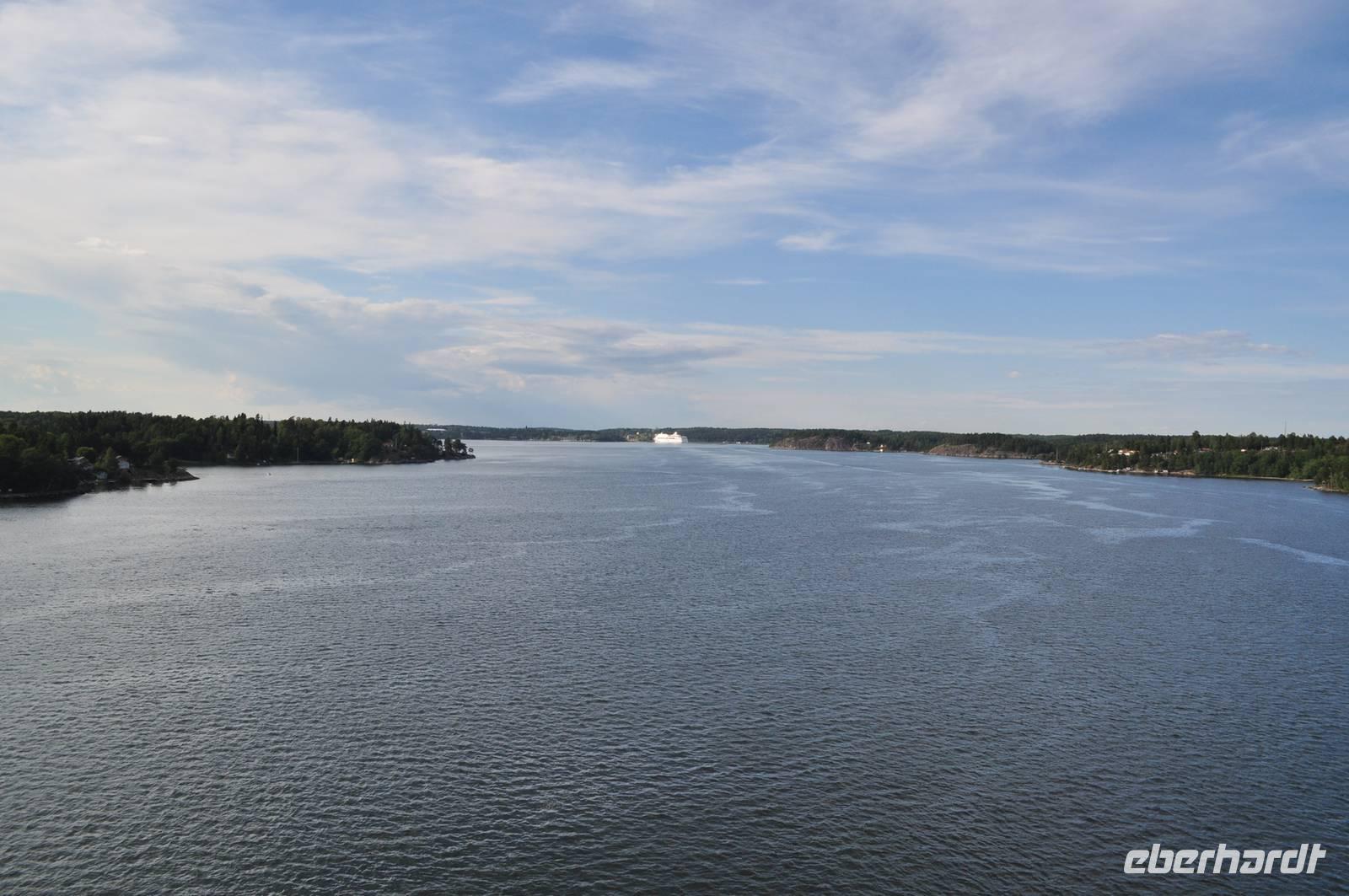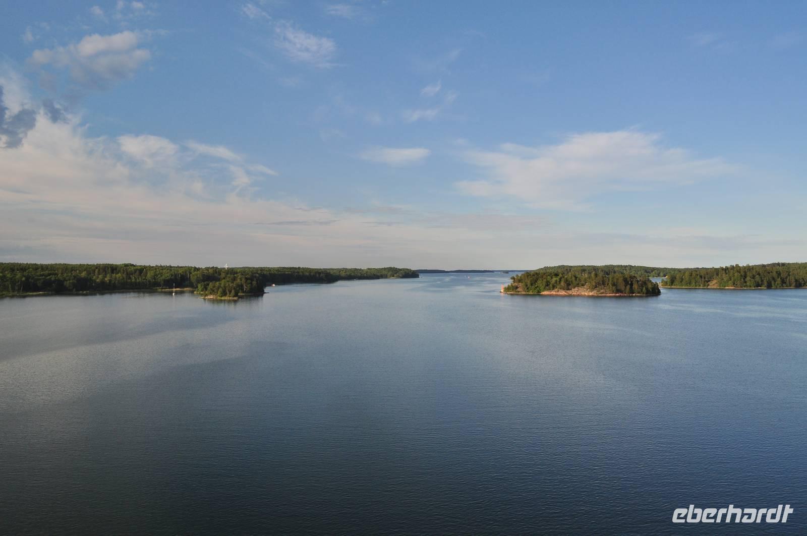 Einige Gäste nutzen mit mir die Zeit, Stockholm auch von der Seeseite zu betrachten, das geht mit den kleinen Djurgården Fähren, die von Gamla Stan in Richtung Gröna Lund im 10-Minuten-Takt verkehren. Für die Rückfahrt bleiben wir auf der Fähre, es gilt das gleiche Ticket. Am frühen Nachmittag werden wir am Schloss abgeholt und fahren den kurzen Weg zum Silja Terminal. Unser Schiff die MS Silja Serenade überrascht positiv. Selbst erfahrene Fährnutzer sind von diesem Schiff beeindruckt. Als erstes fällt die Promenade auf, die sich über die gesamte Schiffslänge hinzieht und links und rechts von vielen Schiffskabinen umrankt wird. Das Angebot ist kaum zu toppen. Den Unterhaltungsbedürftigen bietet es ein Theater, dem Erholungssuchenden bietet es ein Wellness Bereich. Dem Besinnlichen stehen Lounges zur Verfügung. Auch das Buffet ist hervorragend, trotz der vielen Menschen an Bord läuft alles reibungslos und ohne langes Warten. Die See zwischen den Schären ist sehr ruhig. Die vielen tausend Schären erwecken stellenweise eher den Eindruck einer Flusskreuzfahrt als einer Querung der Ostsee. Aber diese Schären sorgen genau für diese ruhige See. In der Nacht beobachten wir an Deck unseren kleinen zehnminütigen Zwischenstopp in Mariehamn, dem Hauptort der autonomen Ålandinseln. Am Morgen rundet die wunderschöne Einfahrt in den Hafen von Helsinki diese entspannte Überfahrt ab.