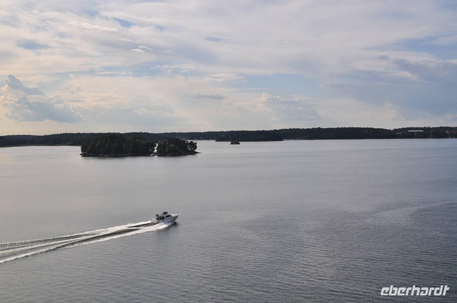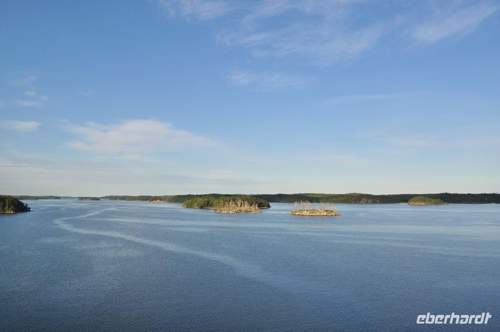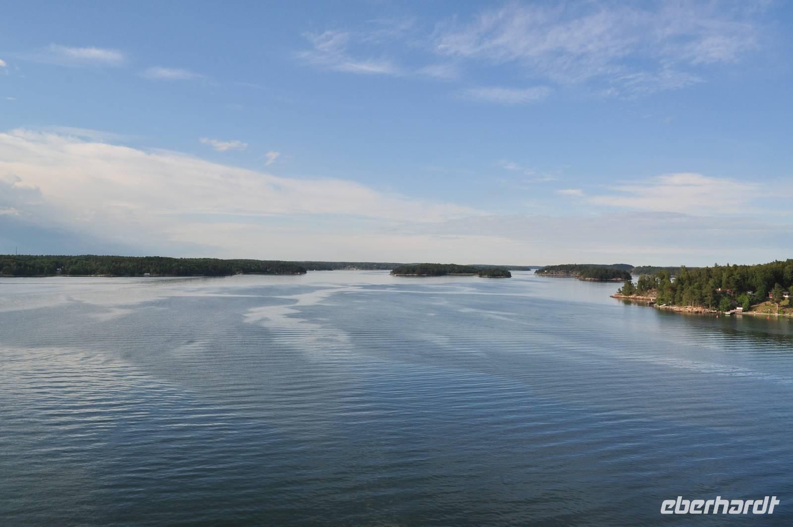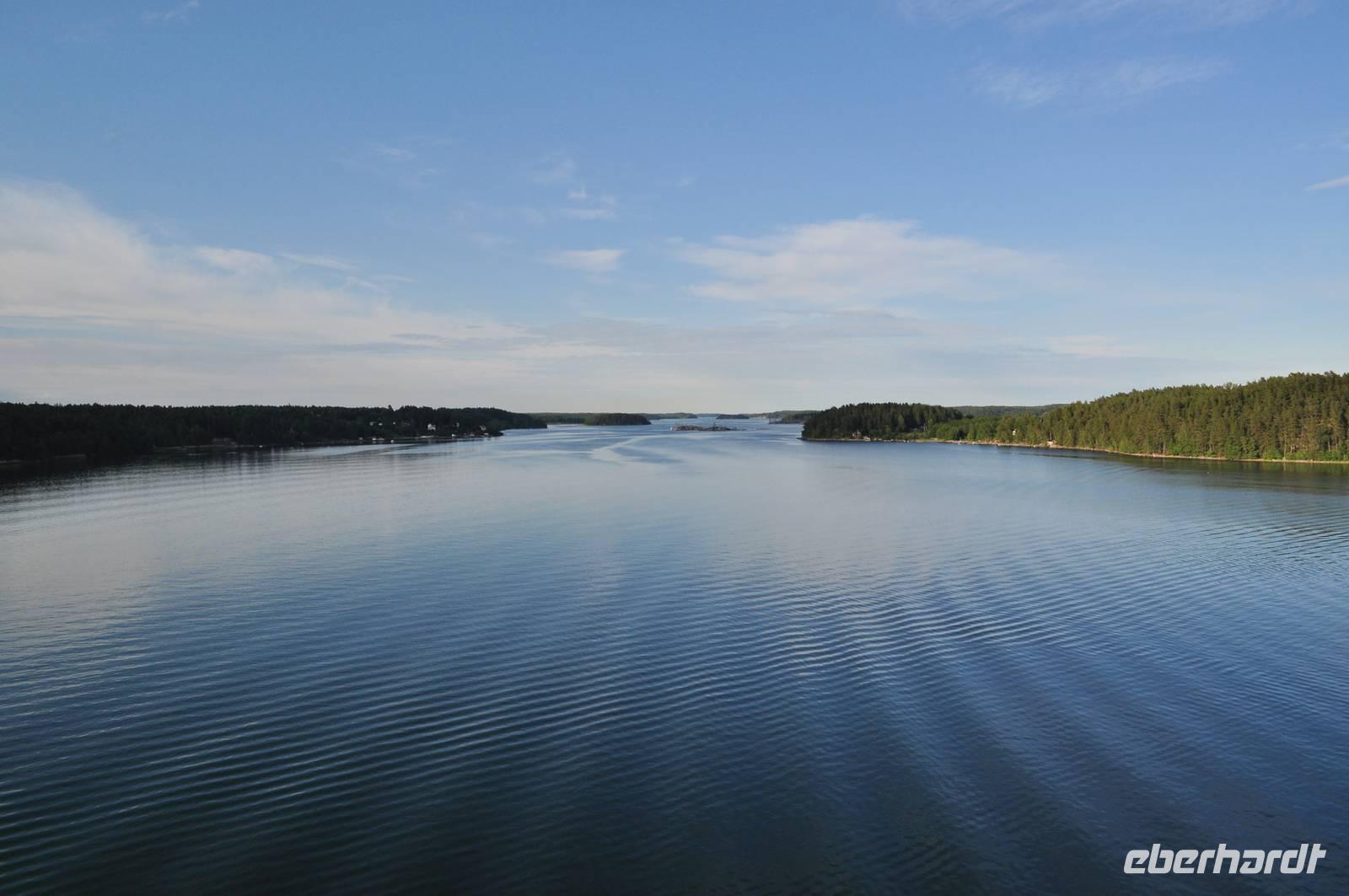 Einige Gäste nutzen mit mir die Zeit, Stockholm auch von der Seeseite zu betrachten, das geht mit den kleinen Djurgården Fähren, die von Gamla Stan in Richtung Gröna Lund im 10-Minuten-Takt verkehren. Für die Rückfahrt bleiben wir auf der Fähre, es gilt das gleiche Ticket. Am frühen Nachmittag werden wir am Schloss abgeholt und fahren den kurzen Weg zum Silja Terminal. Unser Schiff die MS Silja Serenade überrascht positiv. Selbst erfahrene Fährnutzer sind von diesem Schiff beeindruckt. Als erstes fällt die Promenade auf, die sich über die gesamte Schiffslänge hinzieht und links und rechts von vielen Schiffskabinen umrankt wird. Das Angebot ist kaum zu toppen. Den Unterhaltungsbedürftigen bietet es ein Theater, dem Erholungssuchenden bietet es ein Wellness Bereich. Dem Besinnlichen stehen Lounges zur Verfügung. Auch das Buffet ist hervorragend, trotz der vielen Menschen an Bord läuft alles reibungslos und ohne langes Warten. Die See zwischen den Schären ist sehr ruhig. Die vielen tausend Schären erwecken stellenweise eher den Eindruck einer Flusskreuzfahrt als einer Querung der Ostsee. Aber diese Schären sorgen genau für diese ruhige See. In der Nacht beobachten wir an Deck unseren kleinen zehnminütigen Zwischenstopp in Mariehamn, dem Hauptort der autonomen Ålandinseln. Am Morgen rundet die wunderschöne Einfahrt in den Hafen von Helsinki diese entspannte Überfahrt ab.