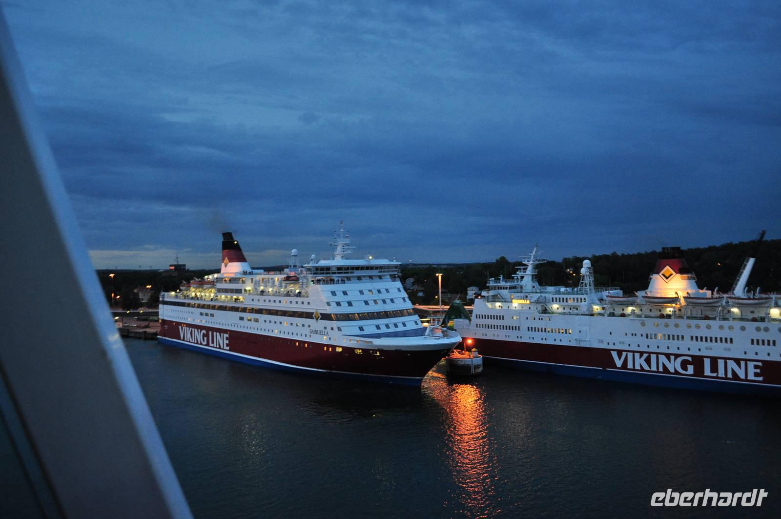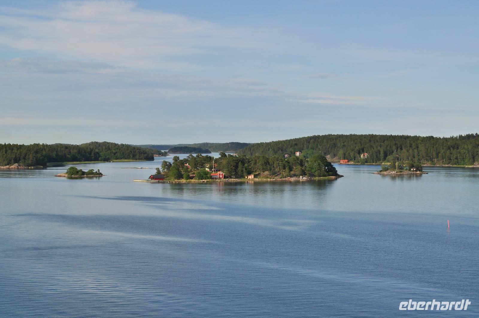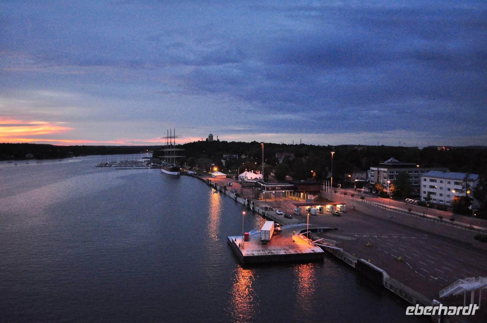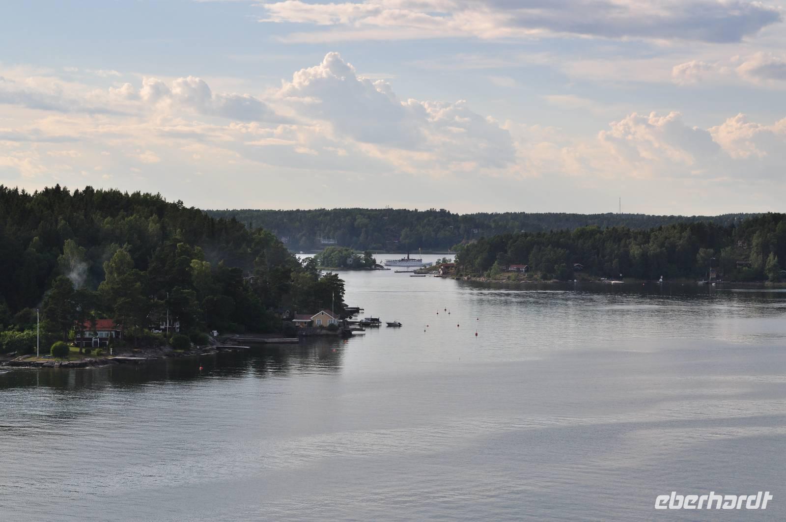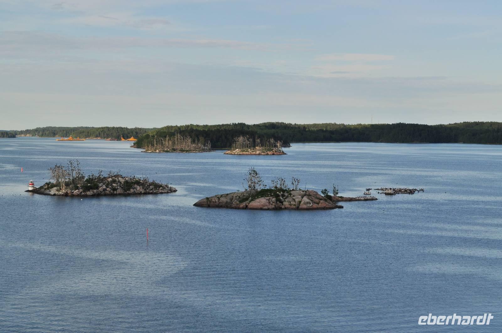 Einige Gäste nutzen mit mir die Zeit, Stockholm auch von der Seeseite zu betrachten, das geht mit den kleinen Djurgården Fähren, die von Gamla Stan in Richtung Gröna Lund im 10-Minuten-Takt verkehren. Für die Rückfahrt bleiben wir auf der Fähre, es gilt das gleiche Ticket. Am frühen Nachmittag werden wir am Schloss abgeholt und fahren den kurzen Weg zum Silja Terminal. Unser Schiff die MS Silja Serenade überrascht positiv. Selbst erfahrene Fährnutzer sind von diesem Schiff beeindruckt. Als erstes fällt die Promenade auf, die sich über die gesamte Schiffslänge hinzieht und links und rechts von vielen Schiffskabinen umrankt wird. Das Angebot ist kaum zu toppen. Den Unterhaltungsbedürftigen bietet es ein Theater, dem Erholungssuchenden bietet es ein Wellness Bereich. Dem Besinnlichen stehen Lounges zur Verfügung. Auch das Buffet ist hervorragend, trotz der vielen Menschen an Bord läuft alles reibungslos und ohne langes Warten. Die See zwischen den Schären ist sehr ruhig. Die vielen tausend Schären erwecken stellenweise eher den Eindruck einer Flusskreuzfahrt als einer Querung der Ostsee. Aber diese Schären sorgen genau für diese ruhige See. In der Nacht beobachten wir an Deck unseren kleinen zehnminütigen Zwischenstopp in Mariehamn, dem Hauptort der autonomen Ålandinseln. Am Morgen rundet die wunderschöne Einfahrt in den Hafen von Helsinki diese entspannte Überfahrt ab.