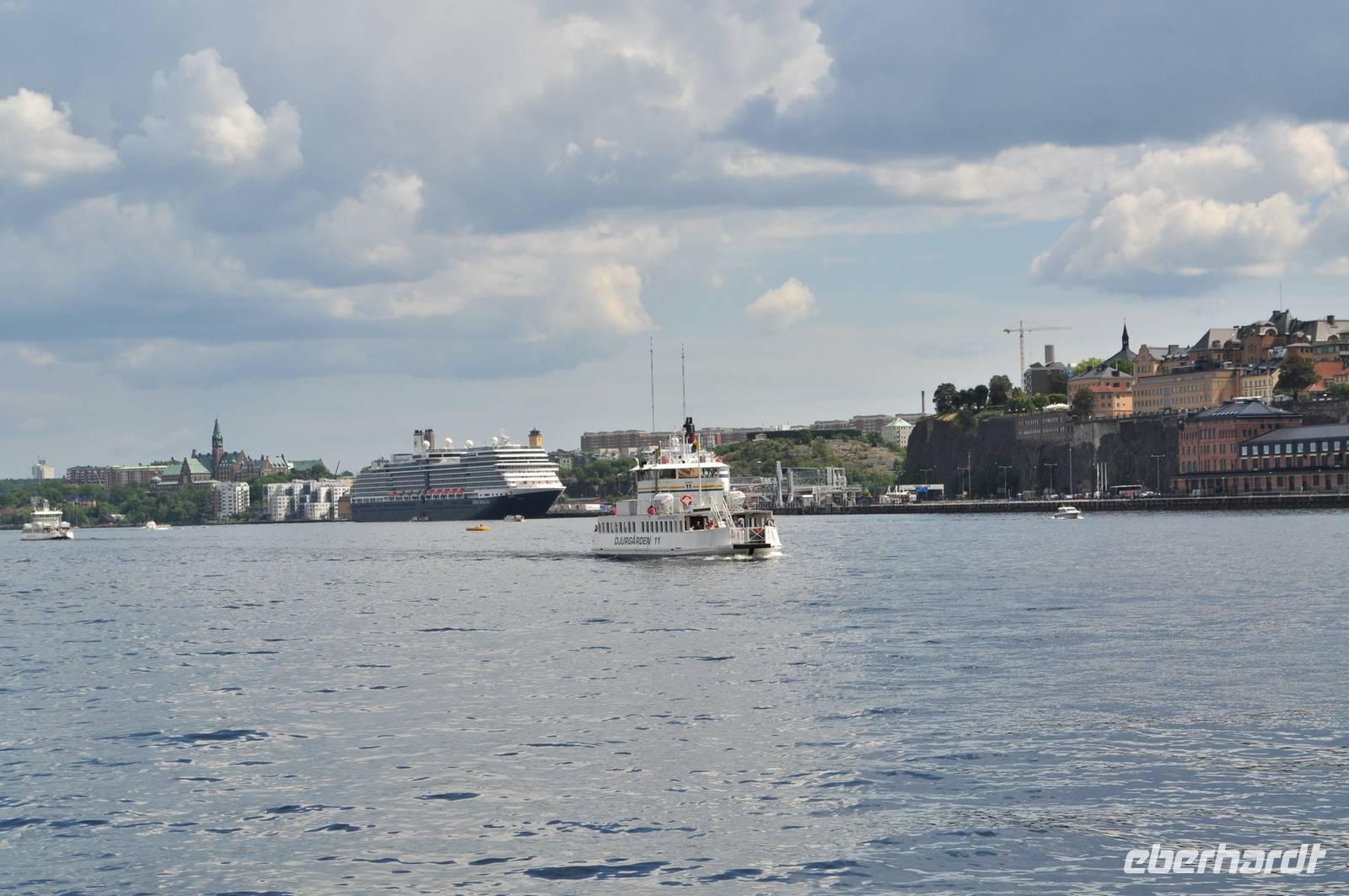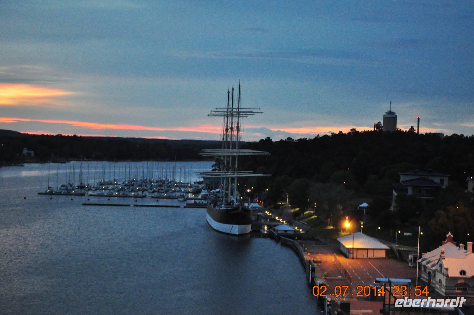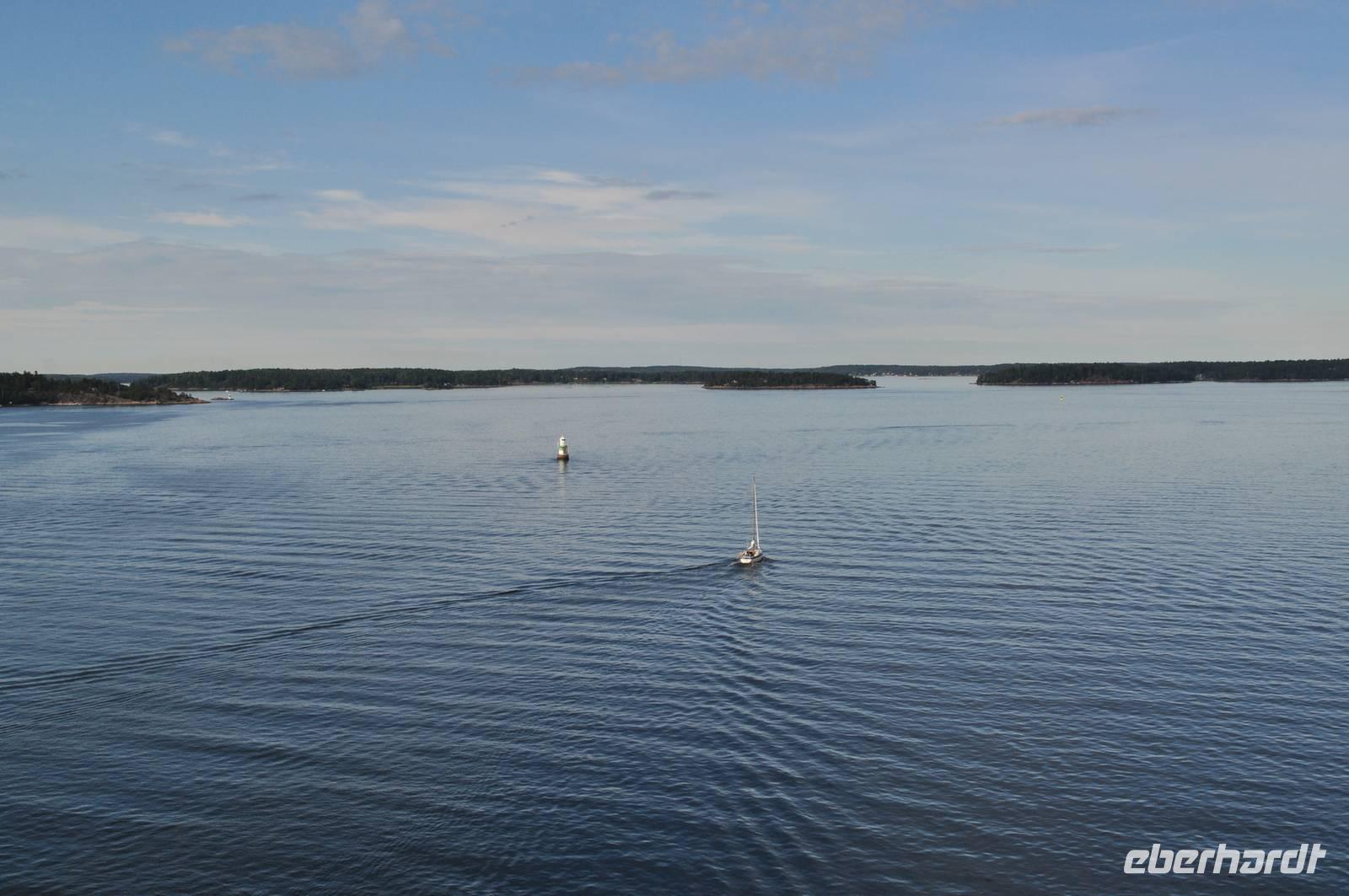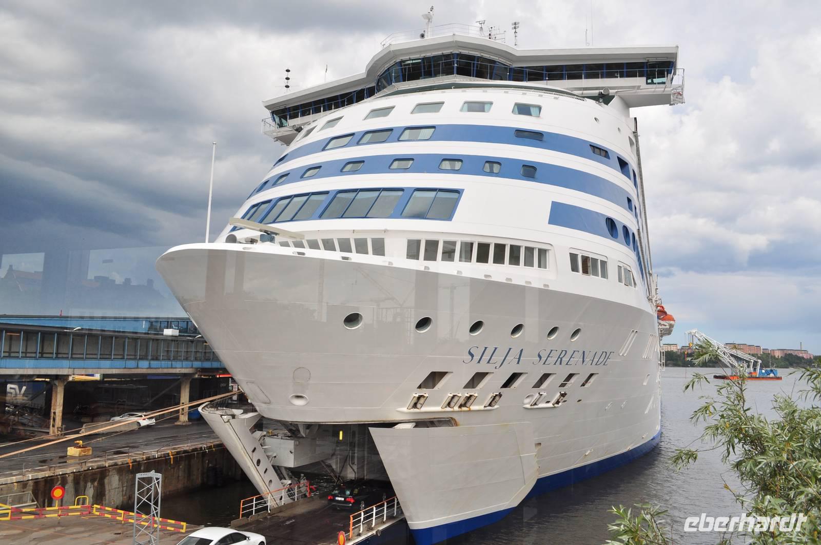 Einige Gäste nutzen mit mir die Zeit, Stockholm auch von der Seeseite zu betrachten, das geht mit den kleinen Djurgården Fähren, die von Gamla Stan in Richtung Gröna Lund im 10-Minuten-Takt verkehren. Für die Rückfahrt bleiben wir auf der Fähre, es gilt das gleiche Ticket. Am frühen Nachmittag werden wir am Schloss abgeholt und fahren den kurzen Weg zum Silja Terminal. Unser Schiff die MS Silja Serenade überrascht positiv. Selbst erfahrene Fährnutzer sind von diesem Schiff beeindruckt. Als erstes fällt die Promenade auf, die sich über die gesamte Schiffslänge hinzieht und links und rechts von vielen Schiffskabinen umrankt wird. Das Angebot ist kaum zu toppen. Den Unterhaltungsbedürftigen bietet es ein Theater, dem Erholungssuchenden bietet es ein Wellness Bereich. Dem Besinnlichen stehen Lounges zur Verfügung. Auch das Buffet ist hervorragend, trotz der vielen Menschen an Bord läuft alles reibungslos und ohne langes Warten. Die See zwischen den Schären ist sehr ruhig. Die vielen tausend Schären erwecken stellenweise eher den Eindruck einer Flusskreuzfahrt als einer Querung der Ostsee. Aber diese Schären sorgen genau für diese ruhige See. In der Nacht beobachten wir an Deck unseren kleinen zehnminütigen Zwischenstopp in Mariehamn, dem Hauptort der autonomen Ålandinseln. Am Morgen rundet die wunderschöne Einfahrt in den Hafen von Helsinki diese entspannte Überfahrt ab.