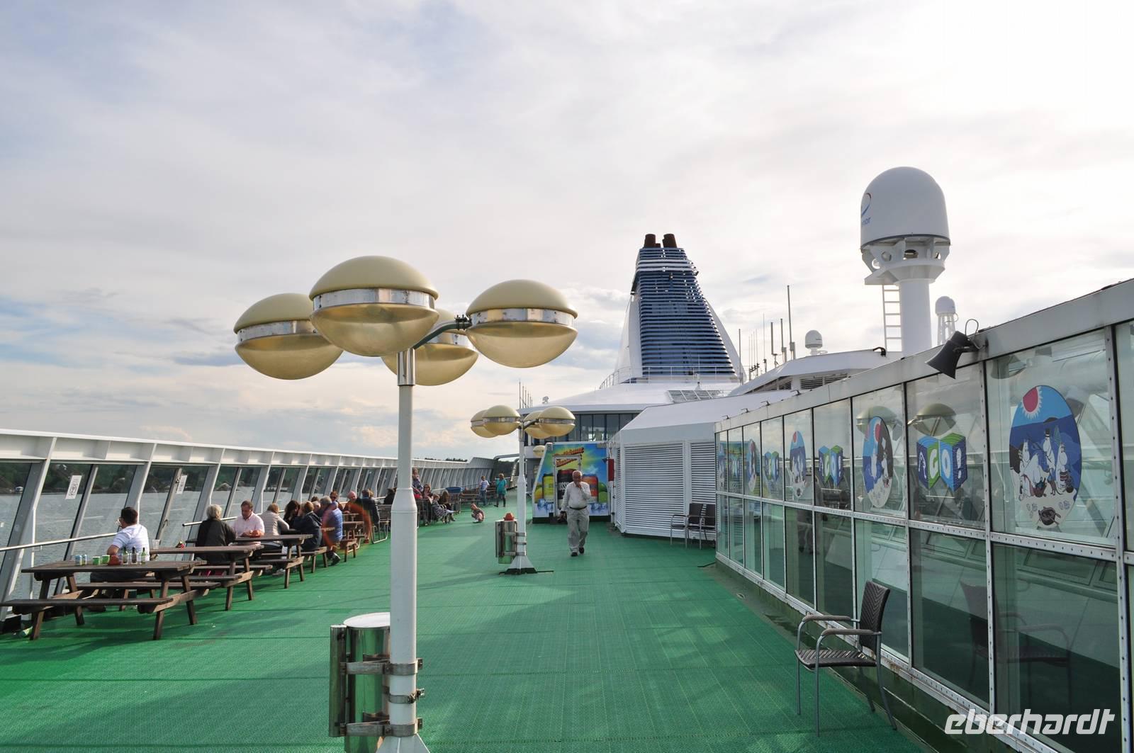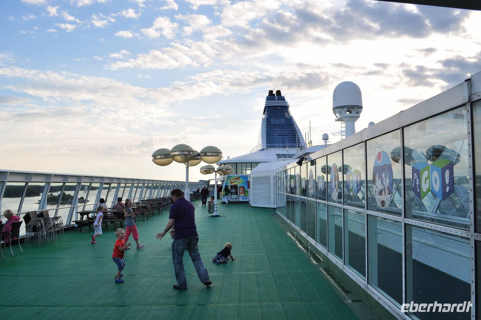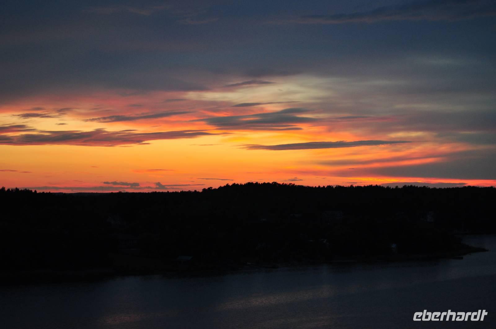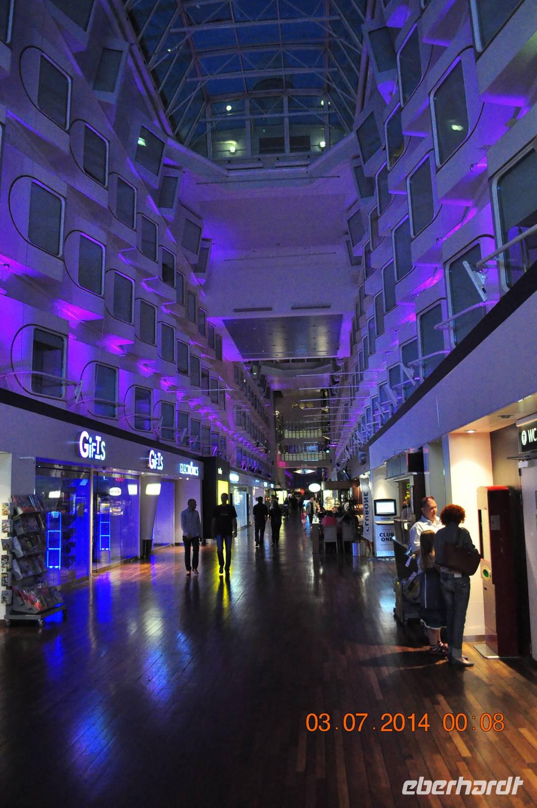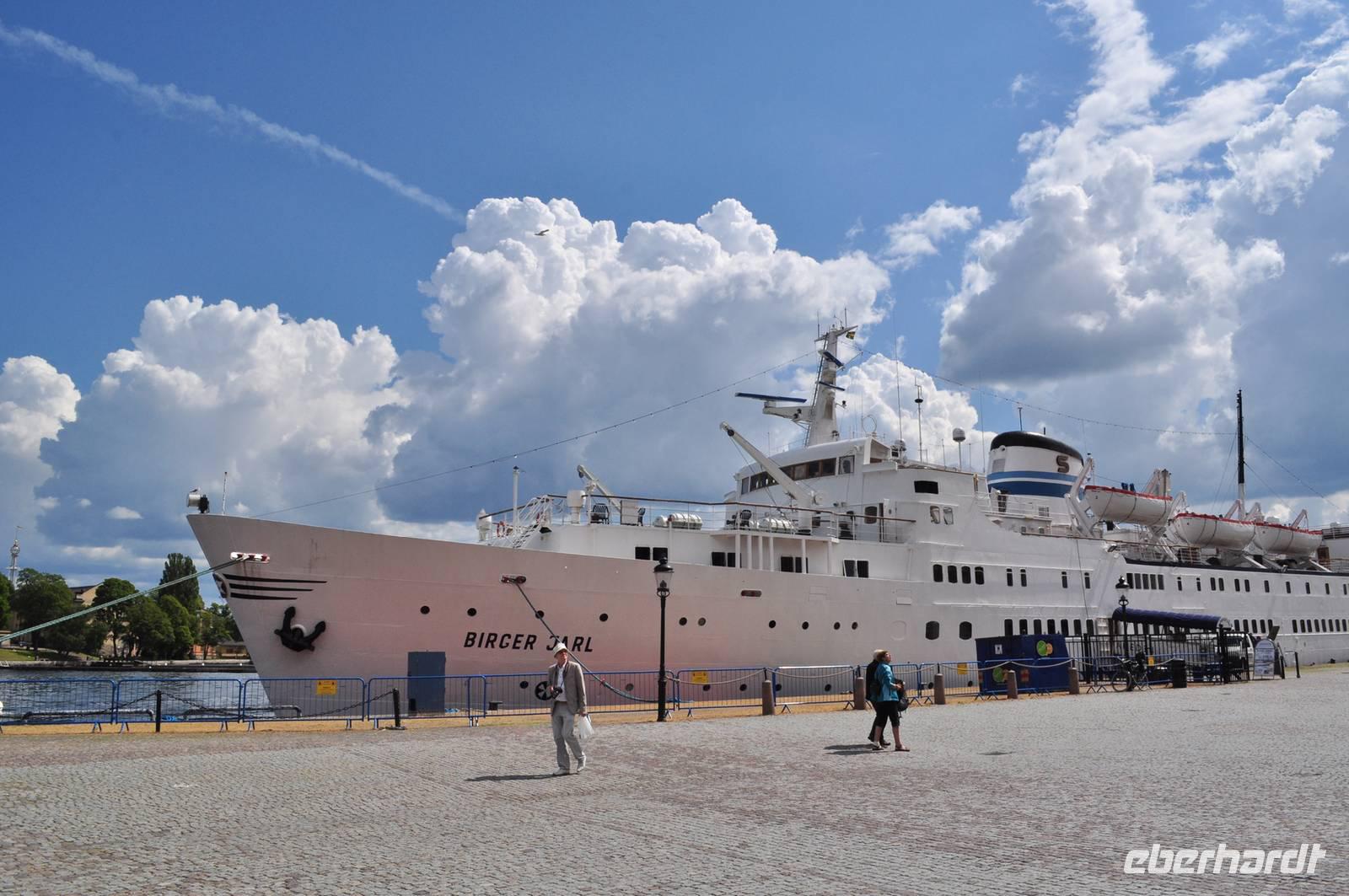 Einige Gäste nutzen mit mir die Zeit, Stockholm auch von der Seeseite zu betrachten, das geht mit den kleinen Djurgården Fähren, die von Gamla Stan in Richtung Gröna Lund im 10-Minuten-Takt verkehren. Für die Rückfahrt bleiben wir auf der Fähre, es gilt das gleiche Ticket. Am frühen Nachmittag werden wir am Schloss abgeholt und fahren den kurzen Weg zum Silja Terminal. Unser Schiff die MS Silja Serenade überrascht positiv. Selbst erfahrene Fährnutzer sind von diesem Schiff beeindruckt. Als erstes fällt die Promenade auf, die sich über die gesamte Schiffslänge hinzieht und links und rechts von vielen Schiffskabinen umrankt wird. Das Angebot ist kaum zu toppen. Den Unterhaltungsbedürftigen bietet es ein Theater, dem Erholungssuchenden bietet es ein Wellness Bereich. Dem Besinnlichen stehen Lounges zur Verfügung. Auch das Buffet ist hervorragend, trotz der vielen Menschen an Bord läuft alles reibungslos und ohne langes Warten. Die See zwischen den Schären ist sehr ruhig. Die vielen tausend Schären erwecken stellenweise eher den Eindruck einer Flusskreuzfahrt als einer Querung der Ostsee. Aber diese Schären sorgen genau für diese ruhige See. In der Nacht beobachten wir an Deck unseren kleinen zehnminütigen Zwischenstopp in Mariehamn, dem Hauptort der autonomen Ålandinseln. Am Morgen rundet die wunderschöne Einfahrt in den Hafen von Helsinki diese entspannte Überfahrt ab.