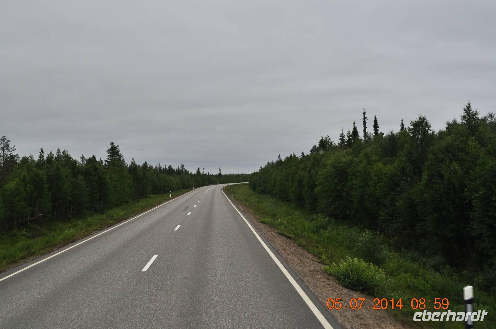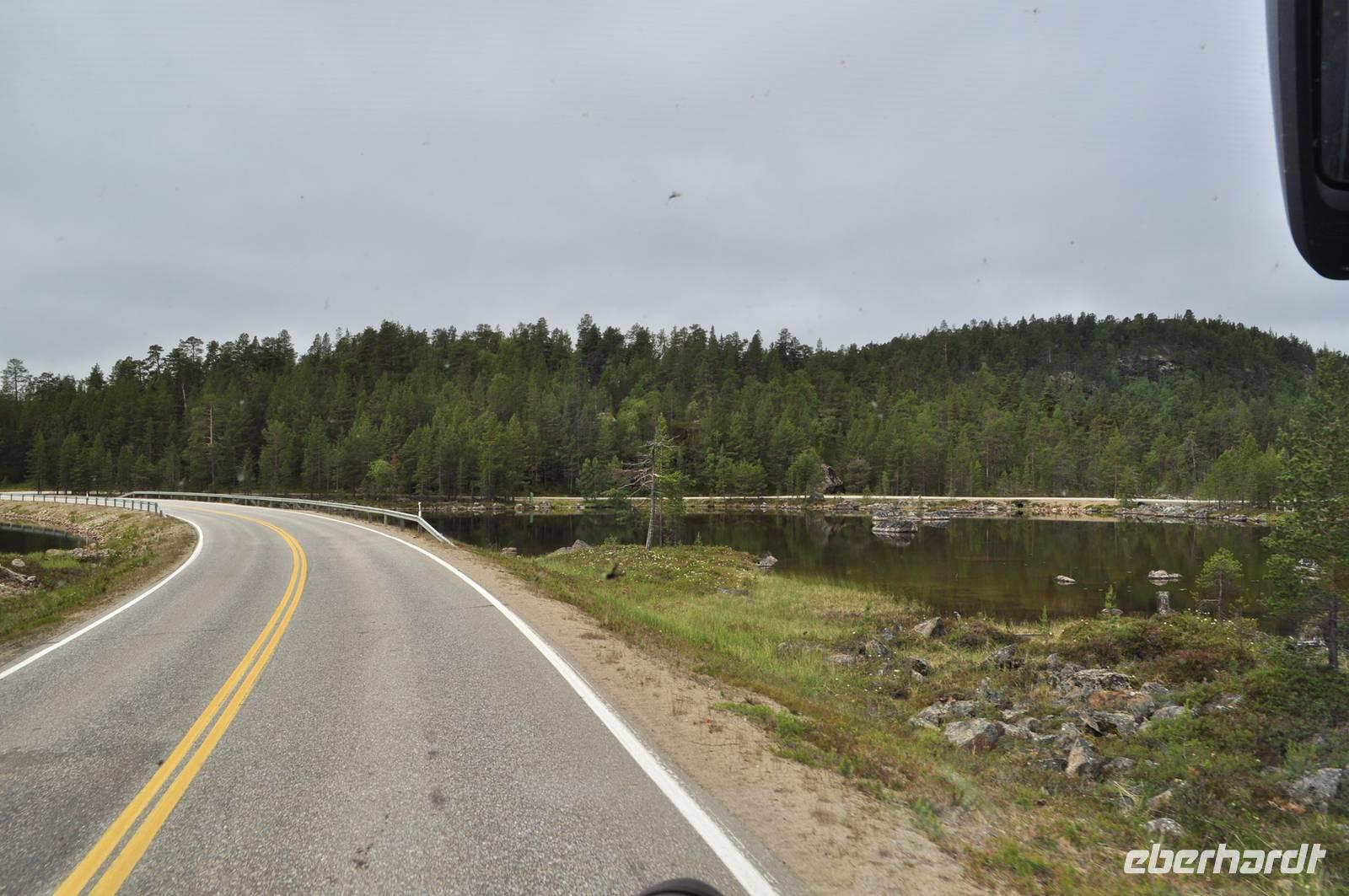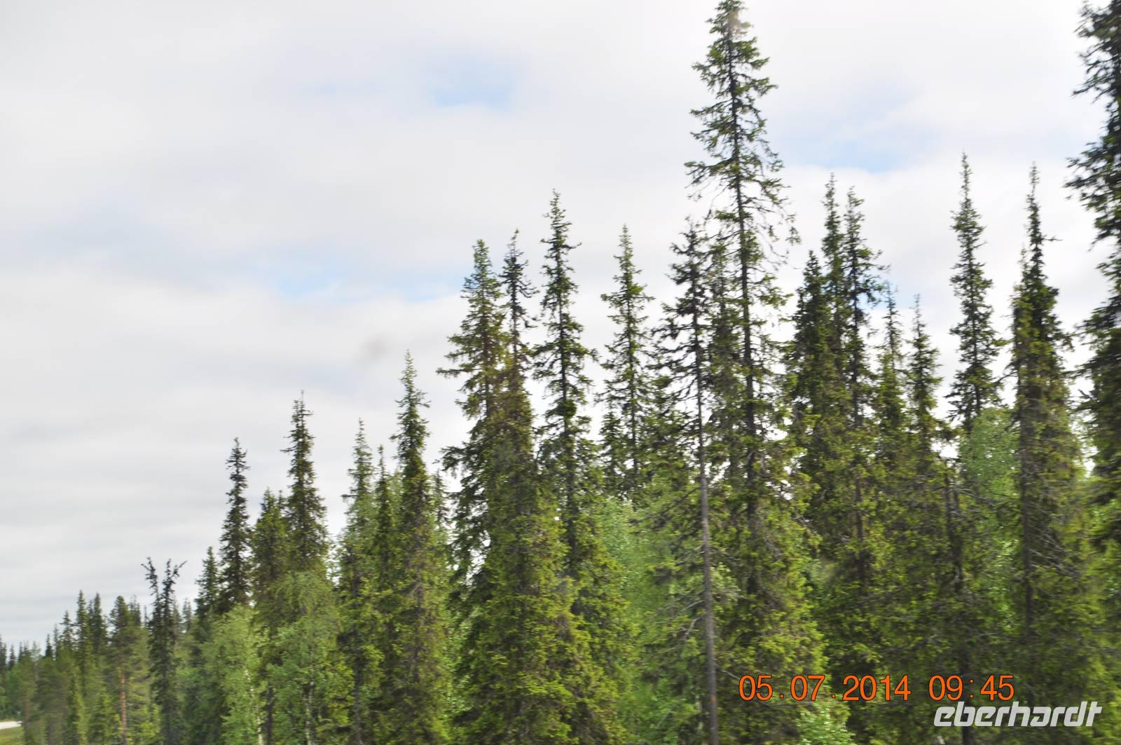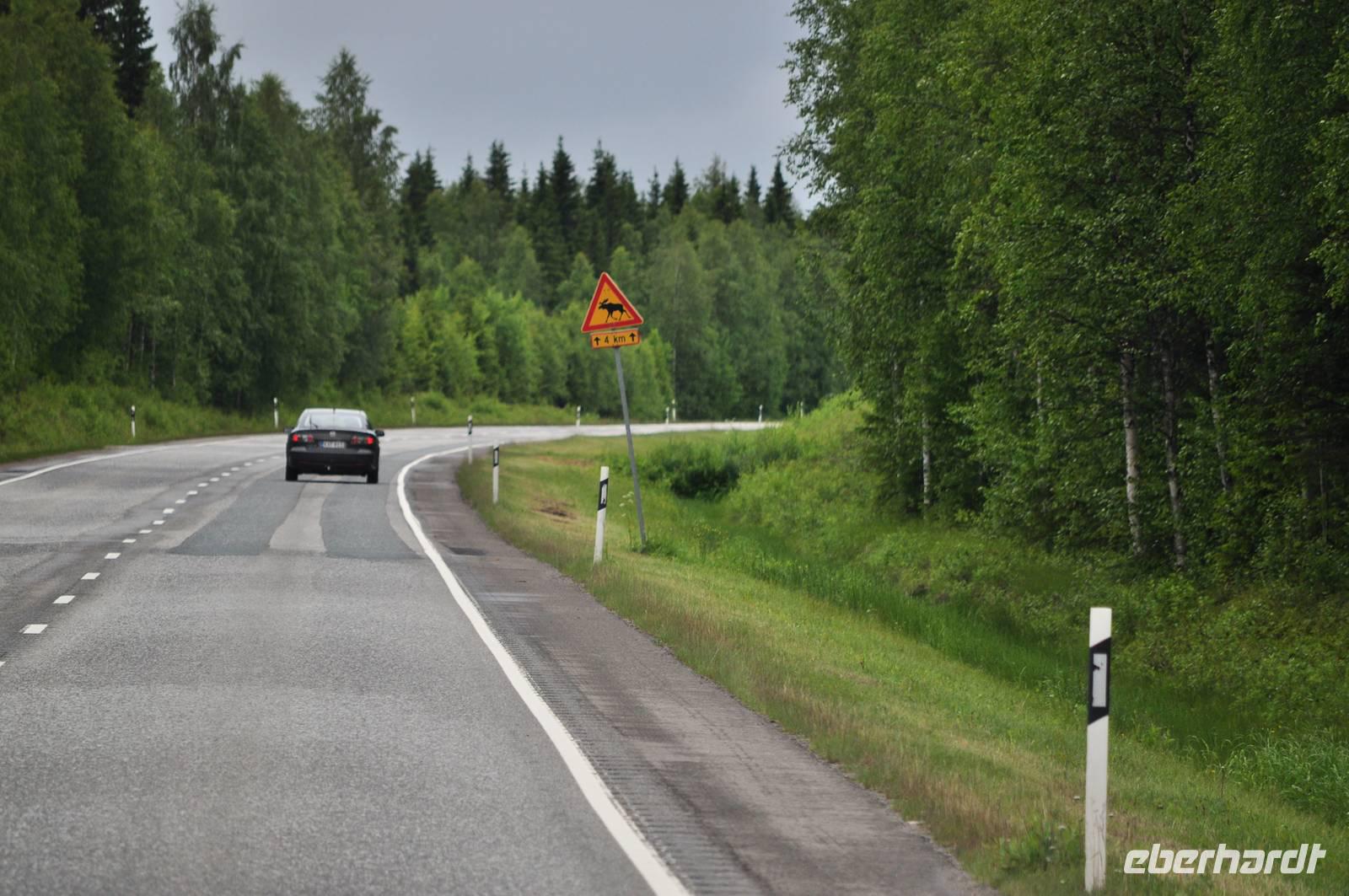 Ein wichtiger Termin am späten Nachmittag führt uns nun auch auf die Europastraße. Die Fahrt führt durch eine wunderschöne sich immer wieder abwechselnde Landschaft mit vielen Seen, Kanälen, Wäldern, Flüssen, Fichten, Kiefern und Birken. War da nicht ein Elch?.....