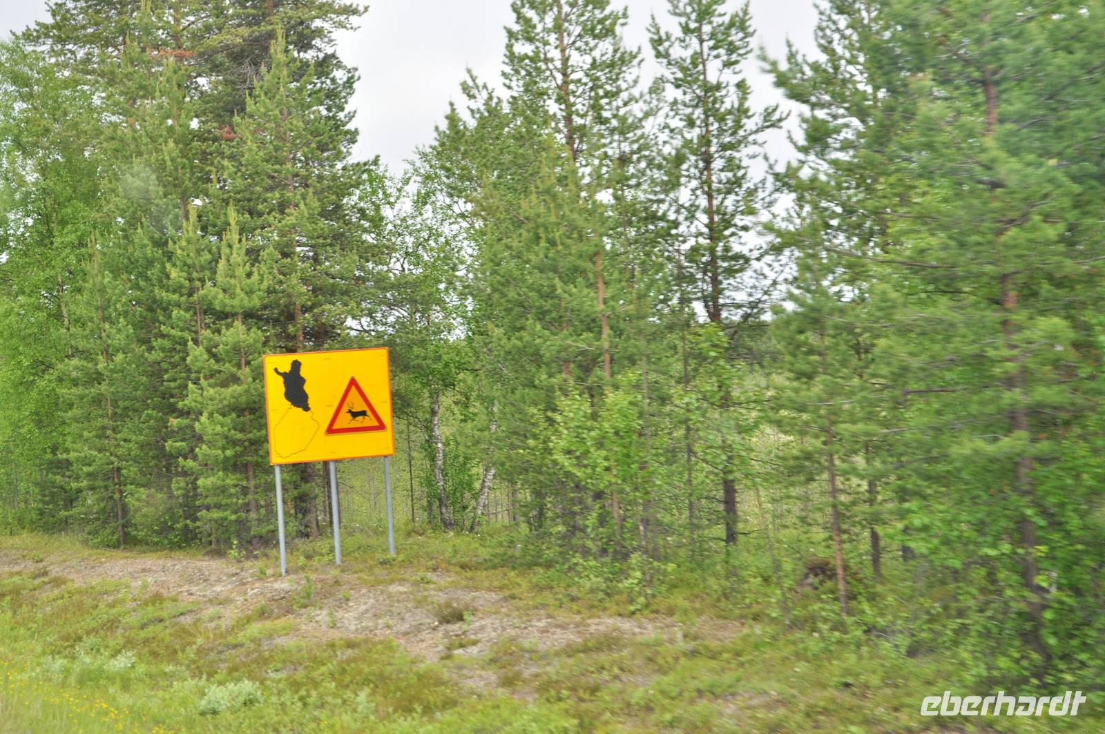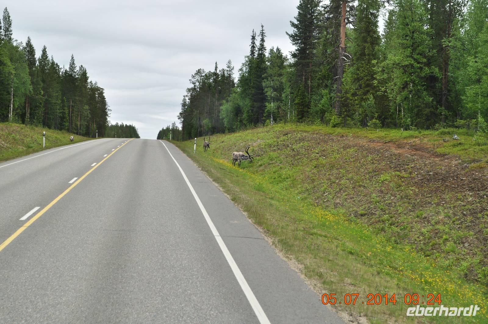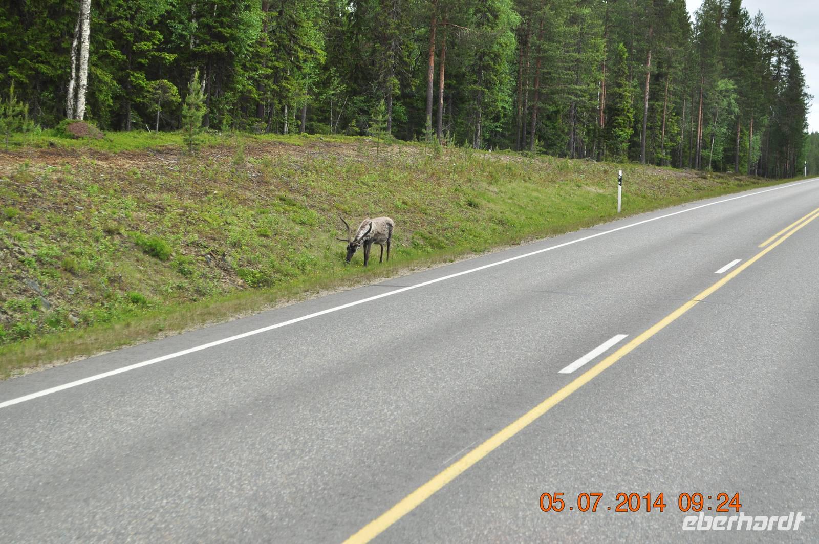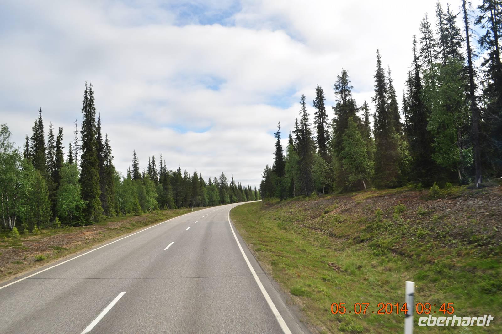 Ein wichtiger Termin am späten Nachmittag führt uns nun auch auf die Europastraße. Die Fahrt führt durch eine wunderschöne sich immer wieder abwechselnde Landschaft mit vielen Seen, Kanälen, Wäldern, Flüssen, Fichten, Kiefern und Birken. War da nicht ein Elch?.....