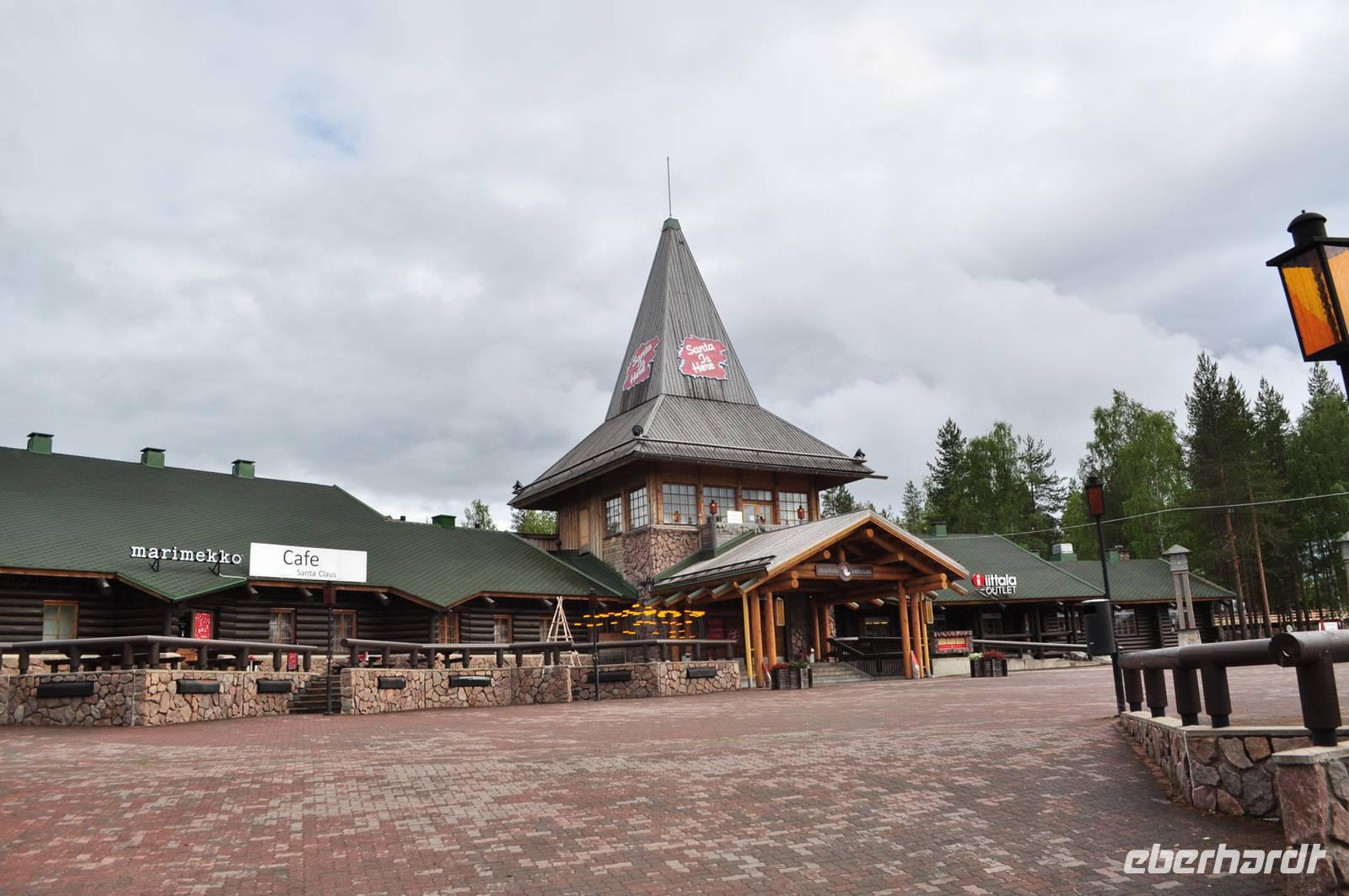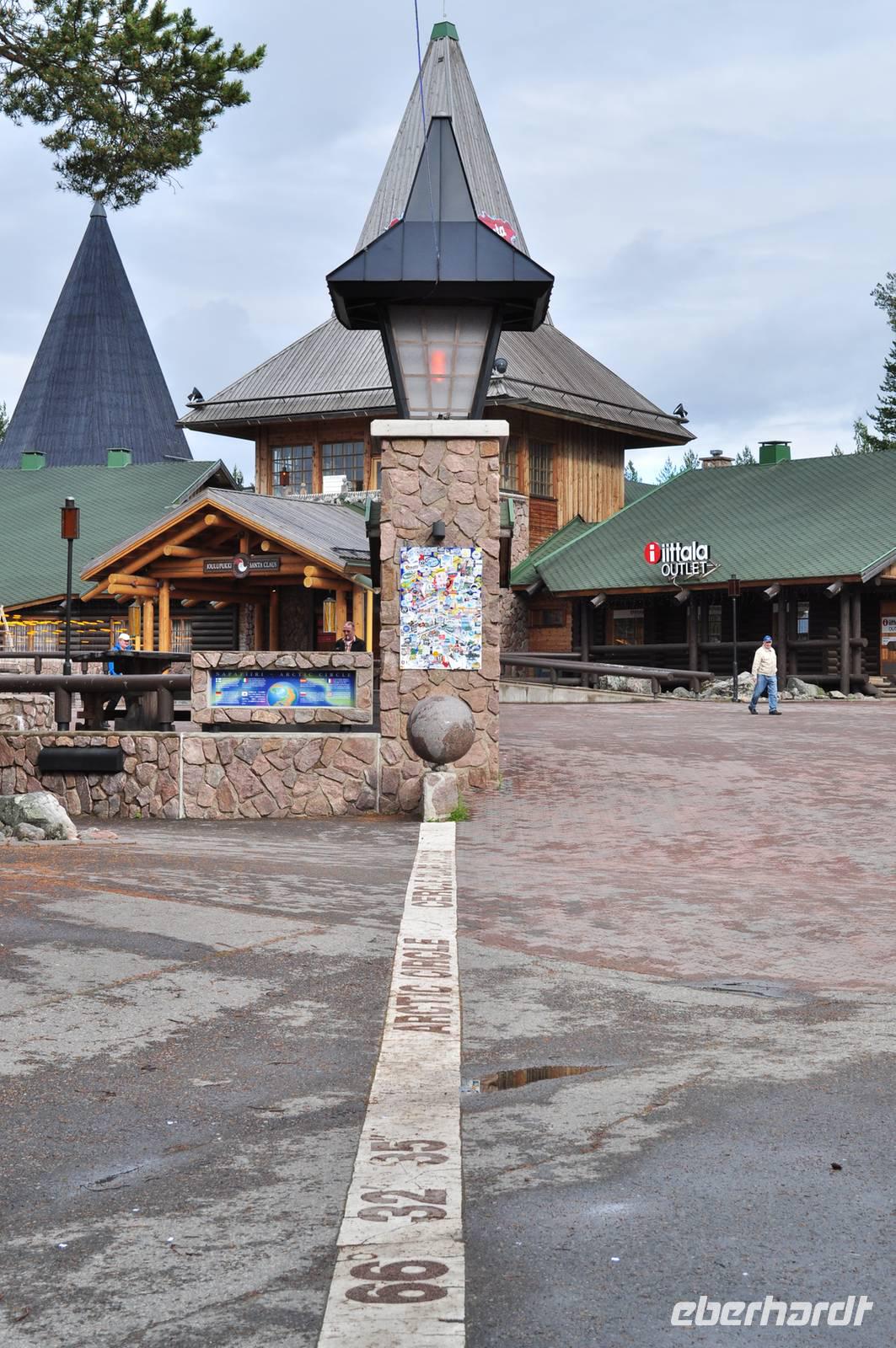 Nach gut einer Stunde Fahrt erreichen wir die Stadt Rovaniemi, die Hauptstadt Lapplands. Am Polarkreis wagen wir den gemeinsamen Schritt in die Polarzone. Alle erfahrenen Nordlandfahrer, die Gäste, die sich bereits nördlich des Polarkreises aufgehalten haben dürfen mich unterstützen, eine angemessene Polarkreistaufe zu vollziehen. Alle Gäste, die sich noch nienördlich des Polarkreises aufgehalten haben, stellen sich in einer Linie auf und überqueren in einem gemeinsamen Schritt die Grenze zur Arktis den Polarkreis. Anschließend werden wir gebührend empfangen vom Joulupukki, andere nennen ihn Santa Claus, wir nennen ihn den Weihnachtsmann.