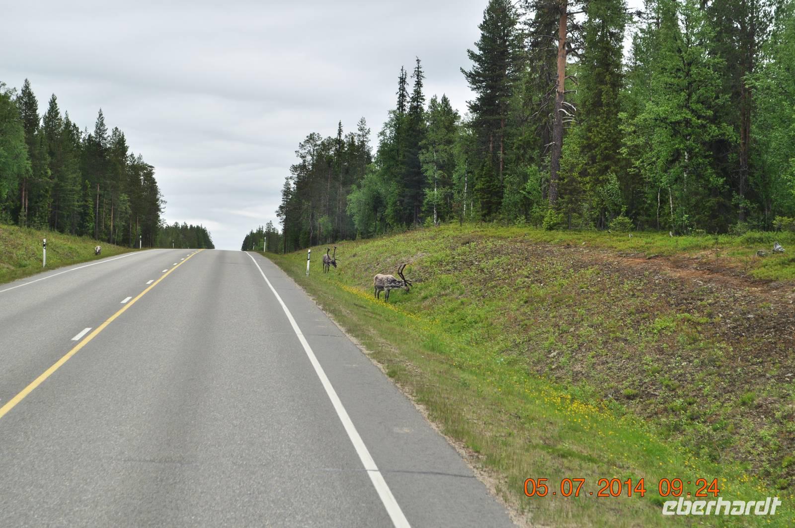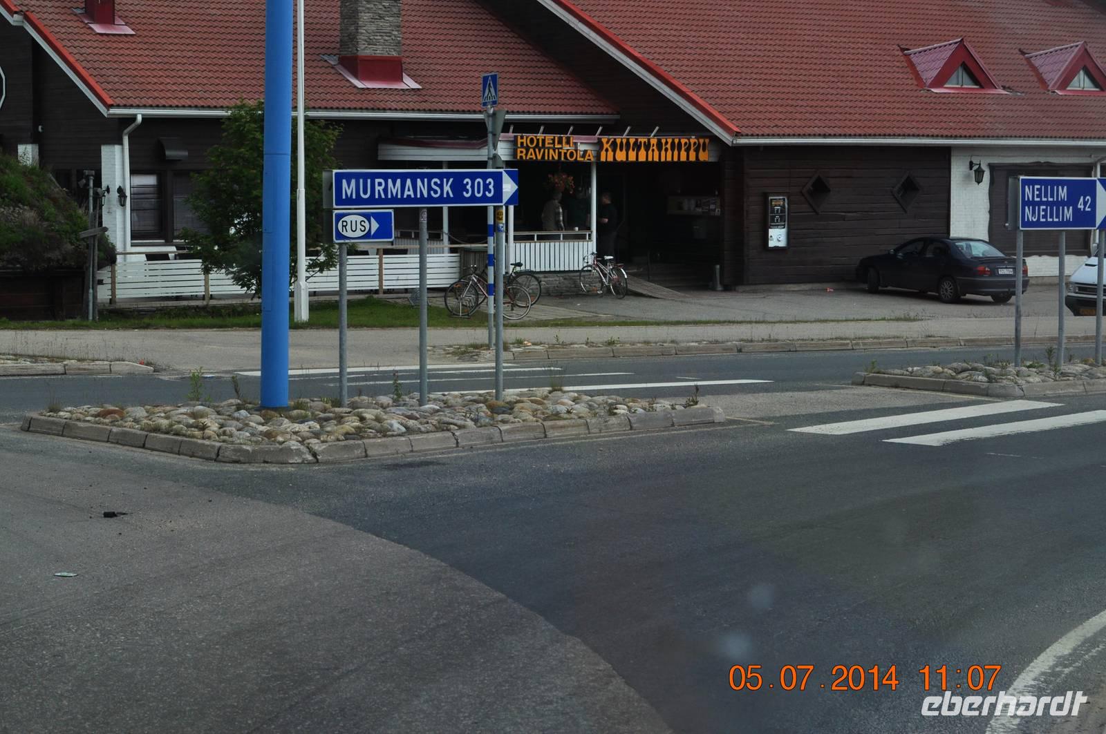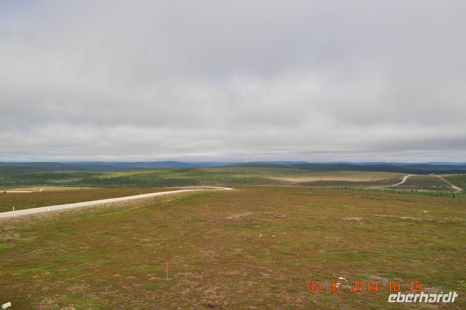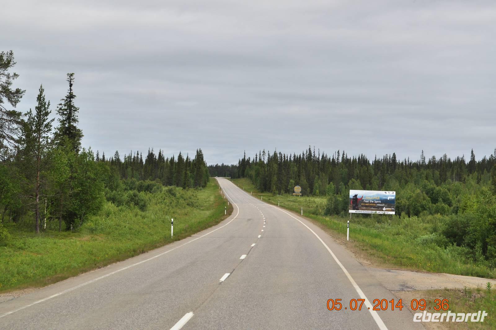 Über die finnische Achterbahn (Staatstraße 92) geht es hinüber nach Karasjok. An der norwegischen Grenze schenkt uns das norwegische Königreich eine Stunde. Wir stellen unsere Uhren wieder eine Stunde zurück.