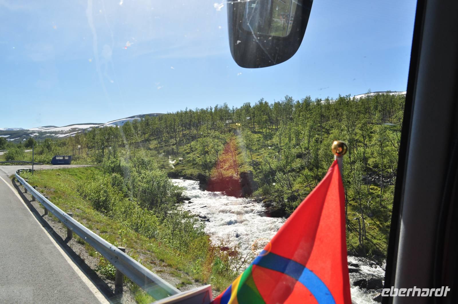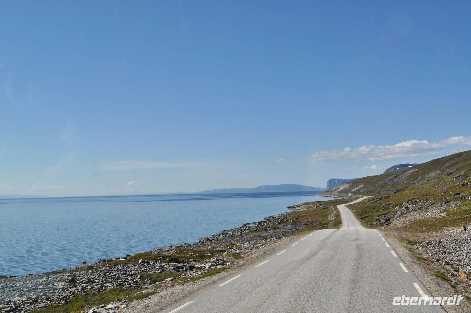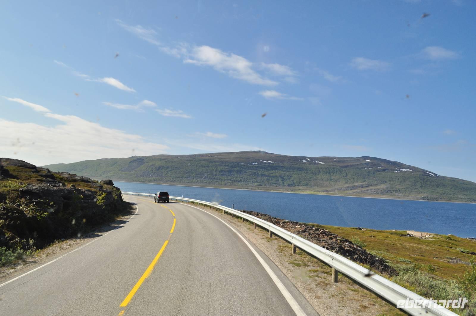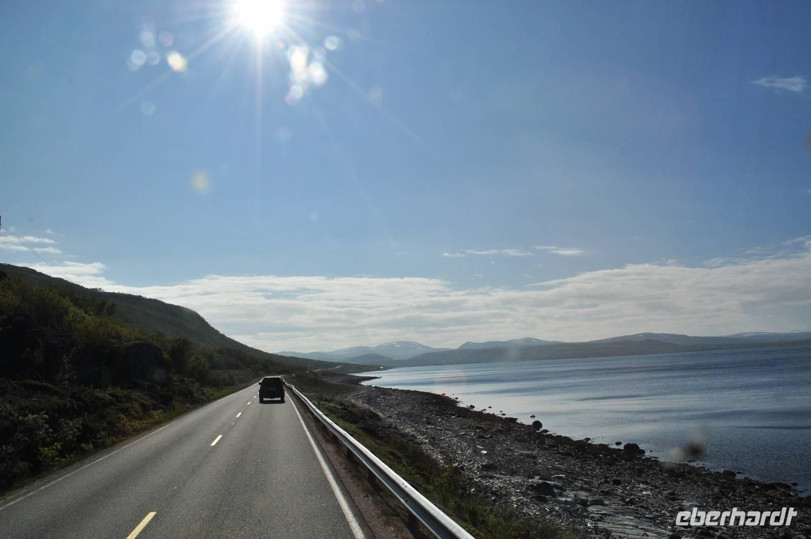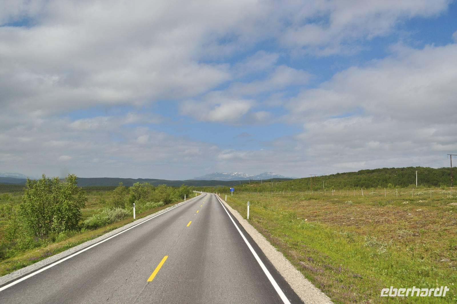 Unser Weg führt uns durch die Finnmark der nördlichsten Provinz Norwegens. In Karasjok treffen wir erstmalig auf die Lebensader Norwegens der Europastraße 6. Dieser werden wir im Verlauf dieser Reise mit einigen Unterbrechungen über mehrere hundert (um nicht zu sagen über tausend) Kilometer folgen.