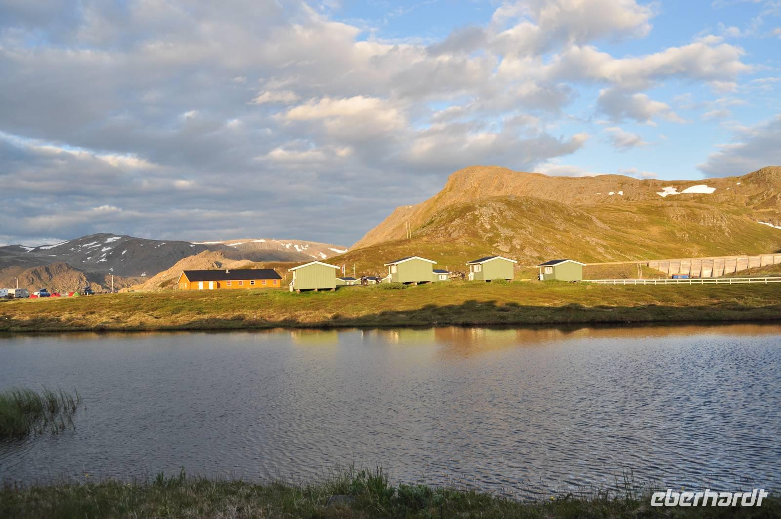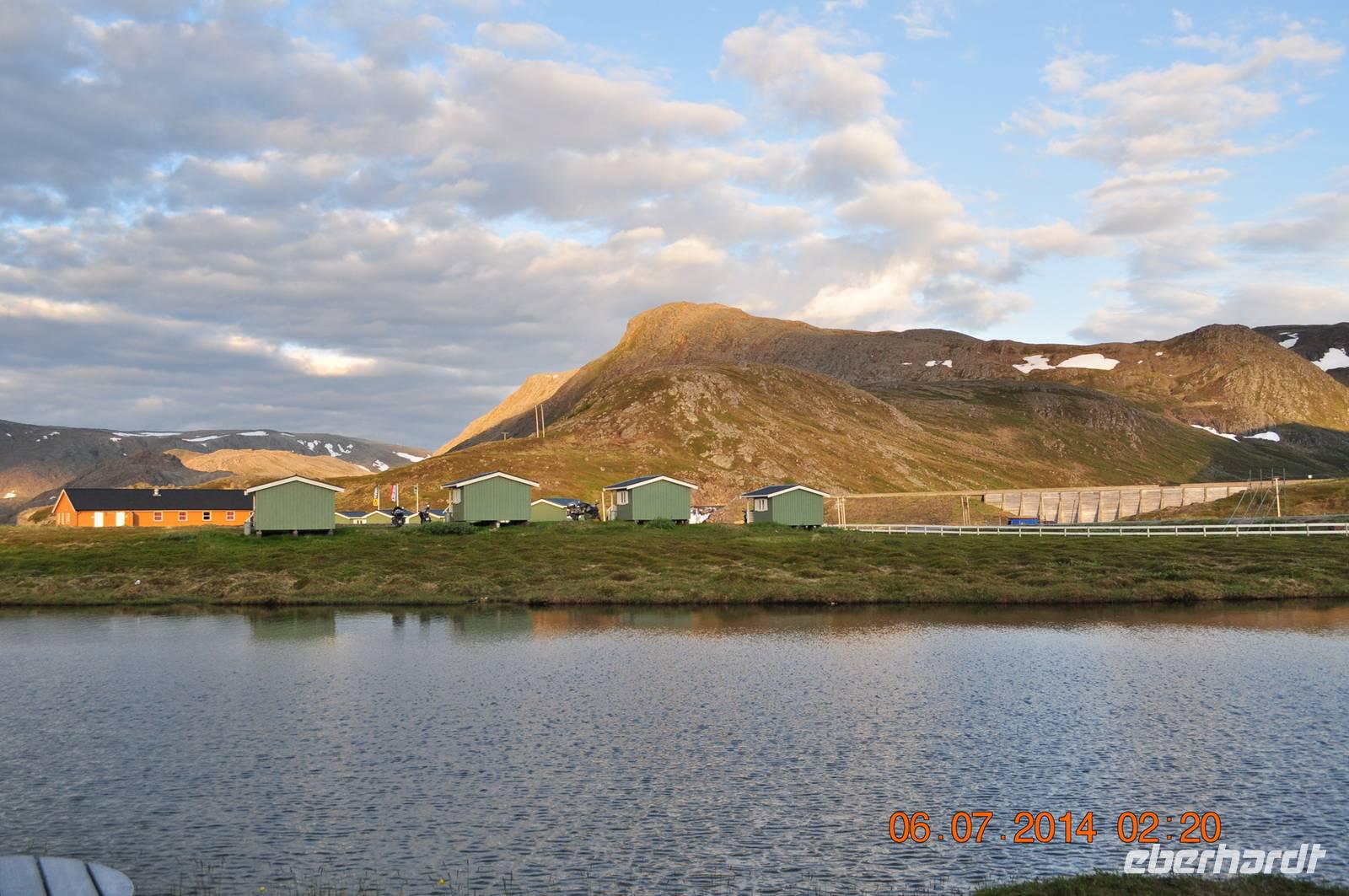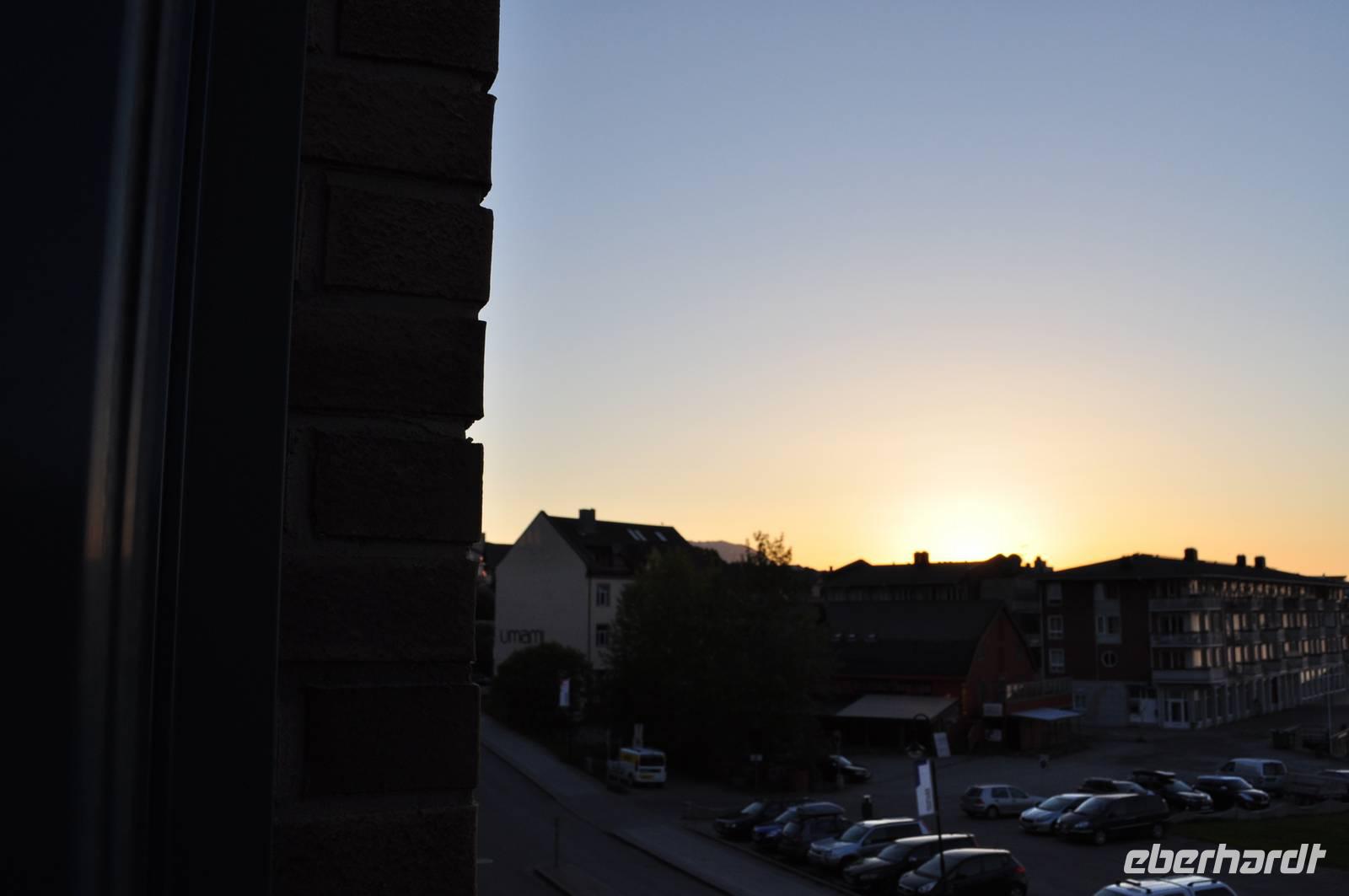 Gegen 2 Uhr morgens scheint die Sonne strahlend über die umliegenden Berggipfel. Wir nächtigen in Teilen des Olympischen Dorfes aus Lillehammer. Es steht heute unter dem Namen Rica Nordkapp auf der Insel Magerøya.