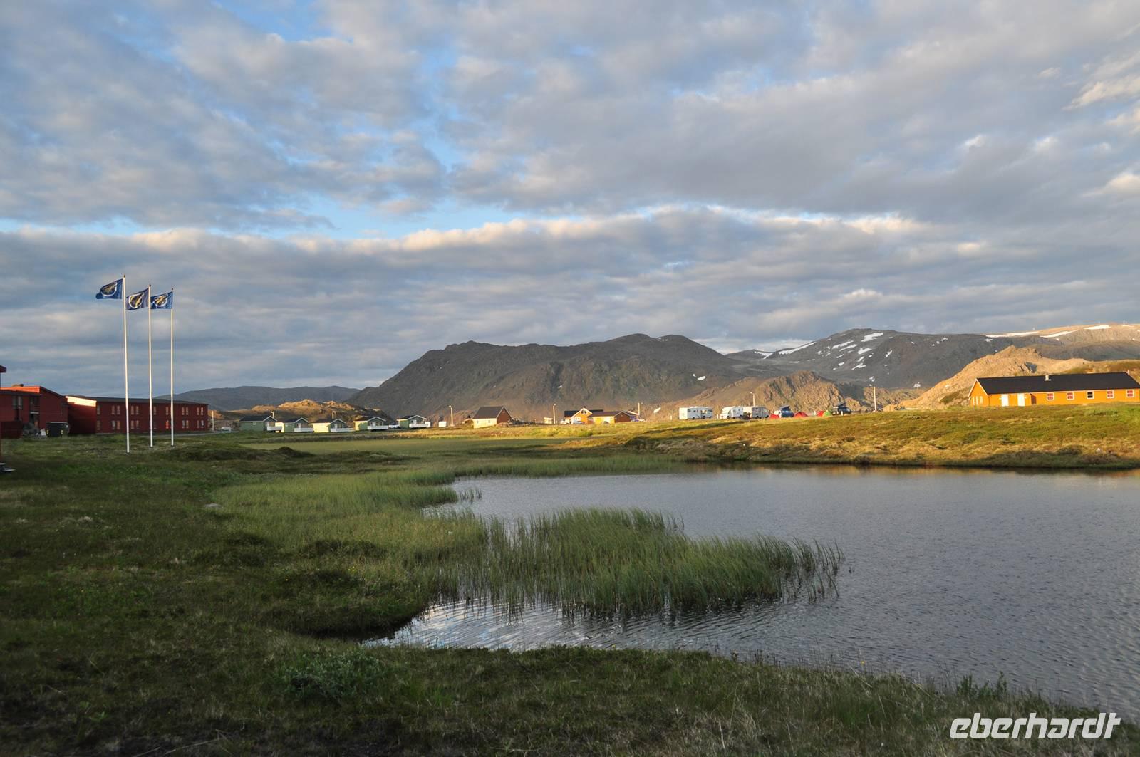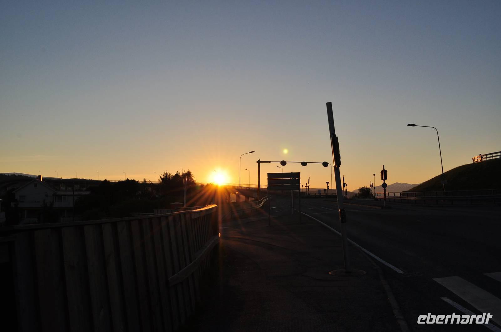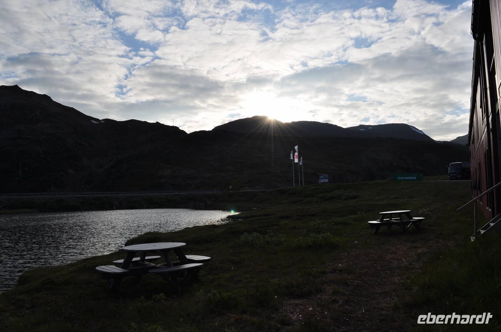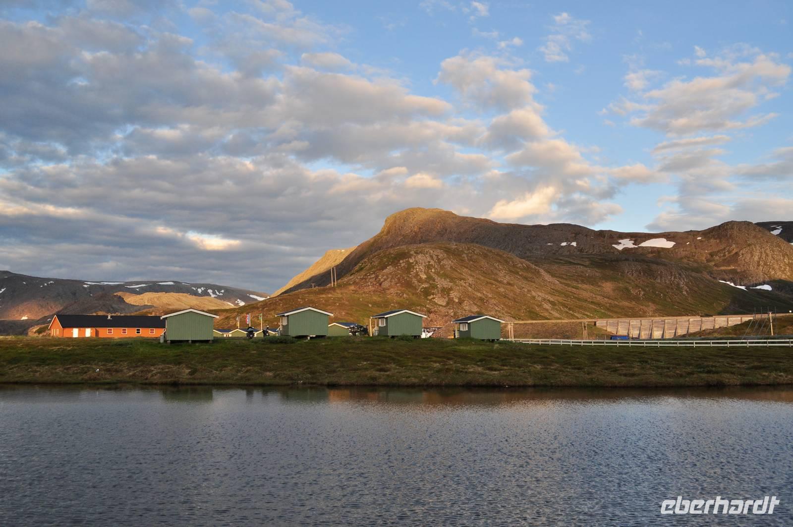 Gegen 2 Uhr morgens scheint die Sonne strahlend über die umliegenden Berggipfel. Wir nächtigen in Teilen des Olympischen Dorfes aus Lillehammer. Es steht heute unter dem Namen Rica Nordkapp auf der Insel Magerøya.