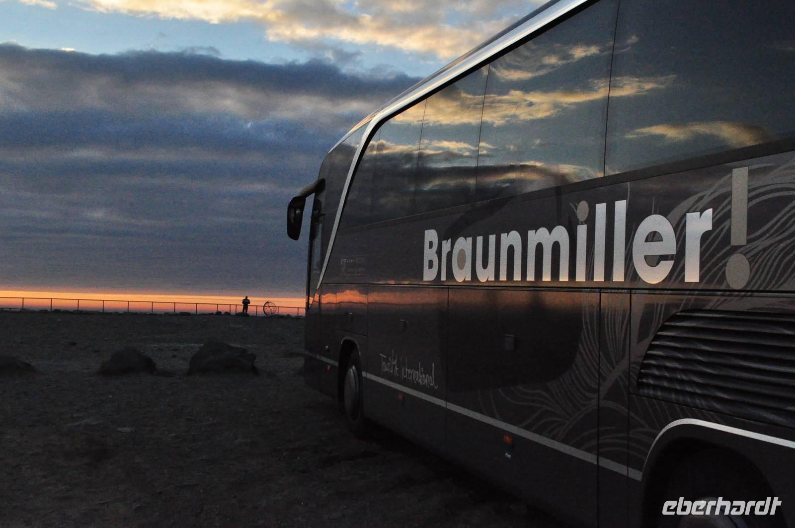 Nach dem Abendessen beginnt die spannende Etappe - die Auffahrt zum Nordkapp. Es herrscht blauer Himmel - Sonnen schein. Wird es bis zum Nordkapp halten? Ja, das Reiseglück und der Wettergott sind uns gnädig gestimmt.