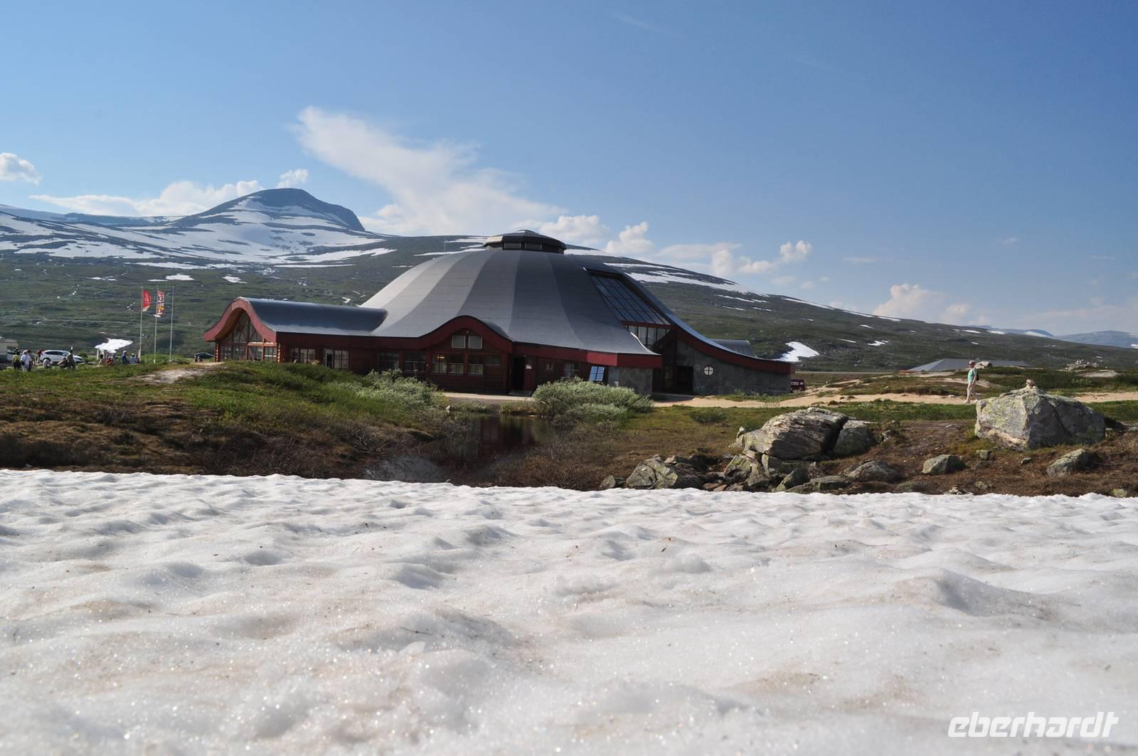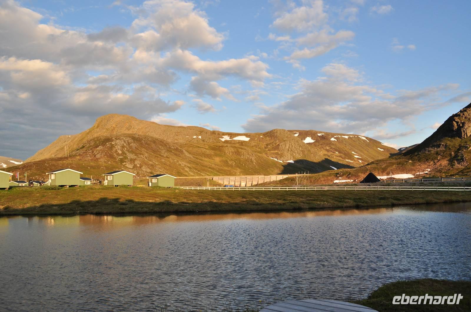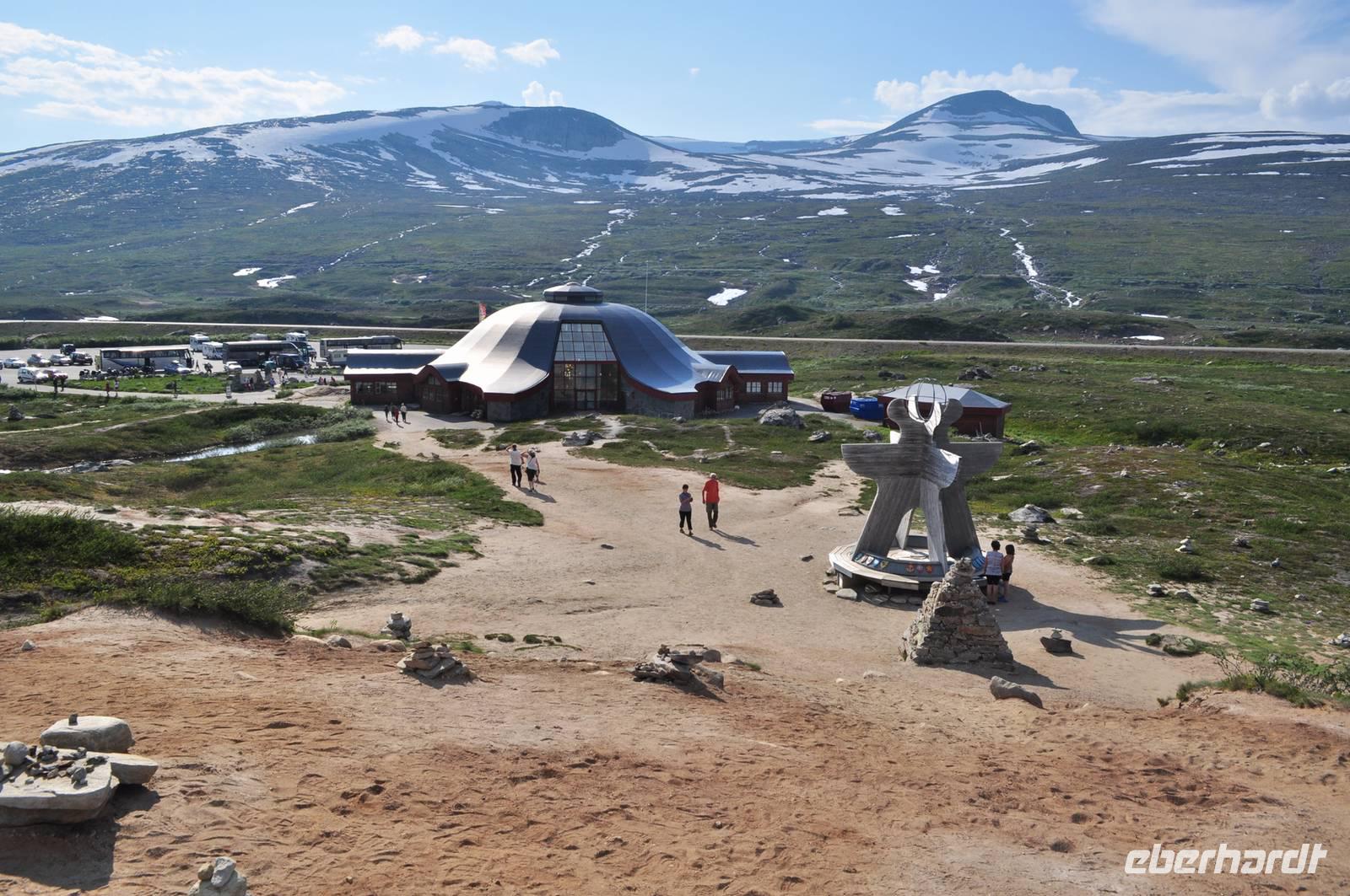 Am späten Nachmittag erreichen wir das Saltfjell, berühmt durch das norwegische Polarkreiszentrum hoch oben auf dem wirklich arktischen Fjell.