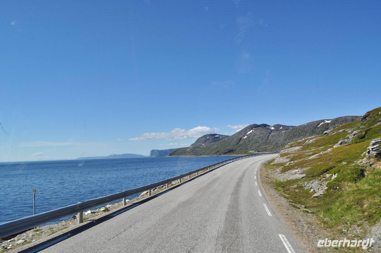 Heute führt sie uns zum Porsangerfjord, einer der längsten Fjorde Norwegens, in dessen Ende die Insel Magerøya mit dem Nordkapp liegt.