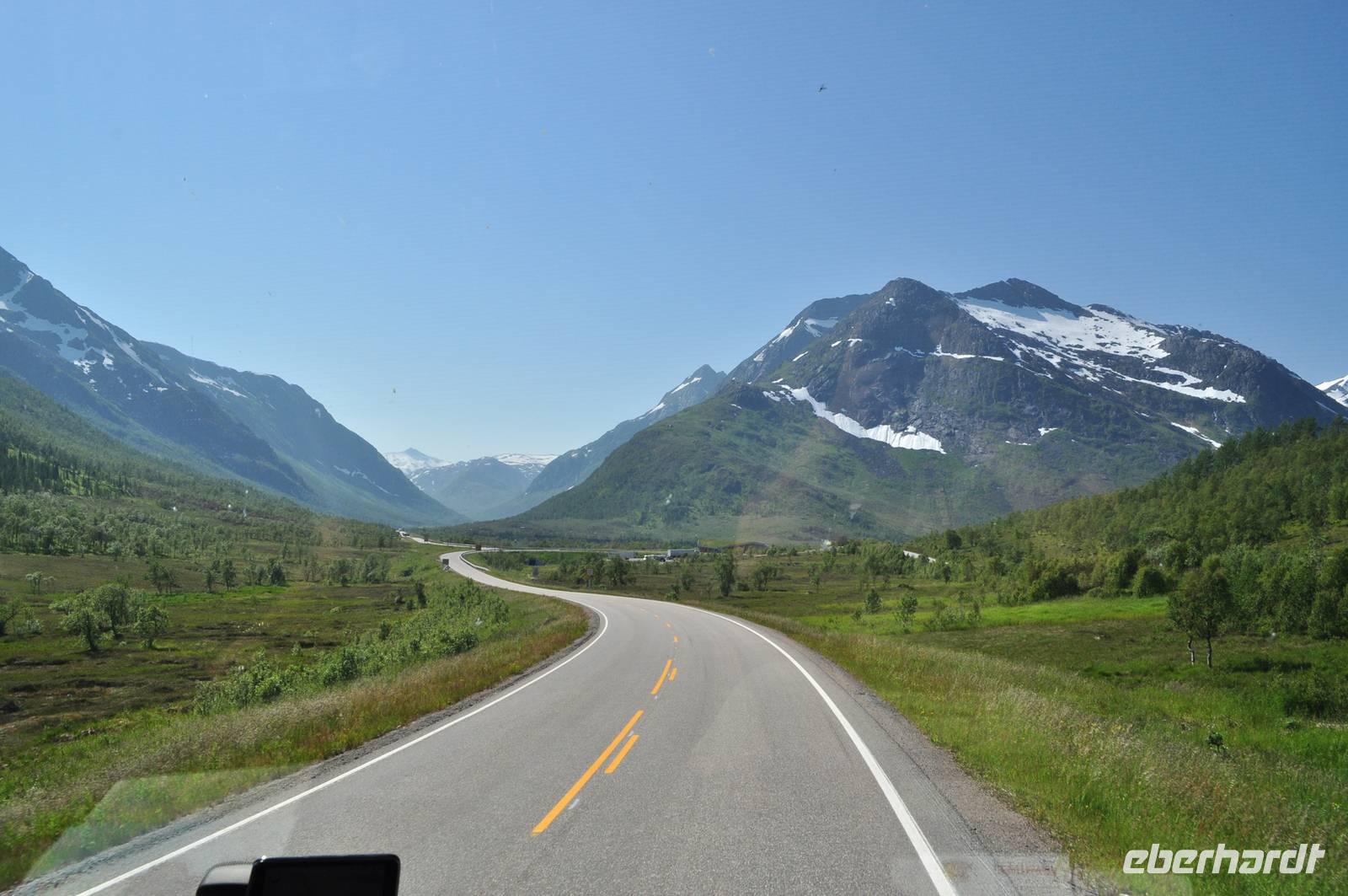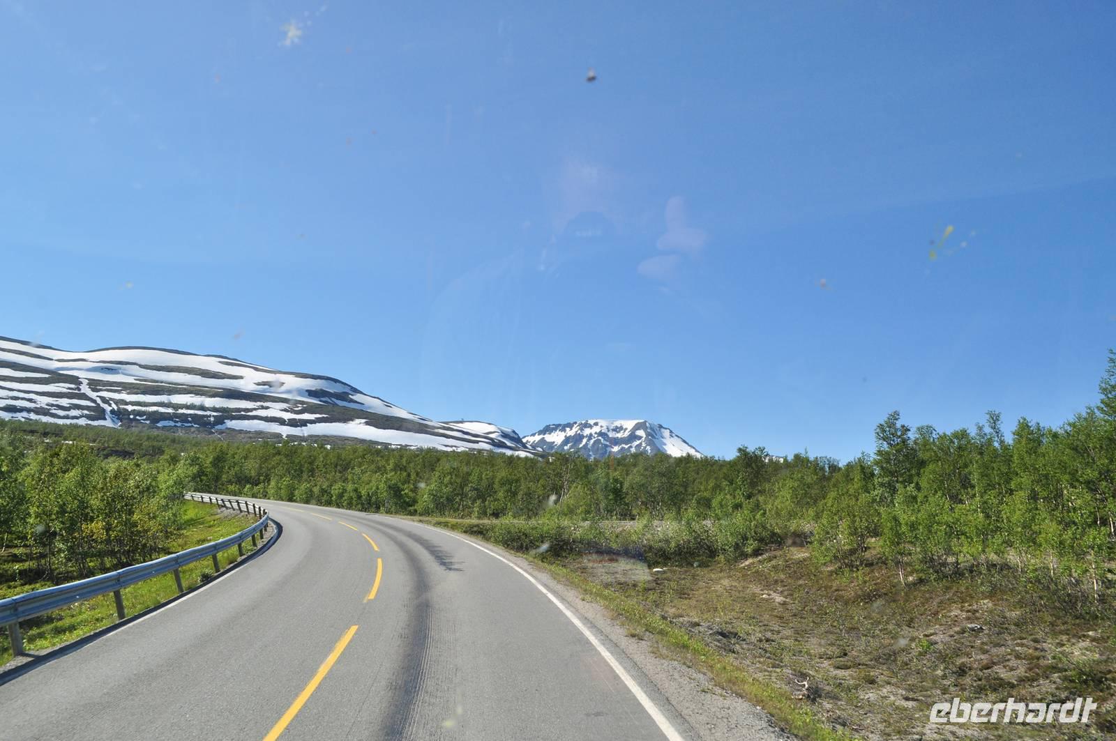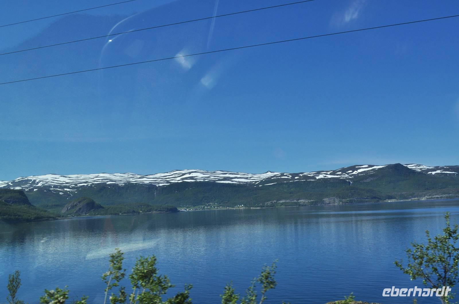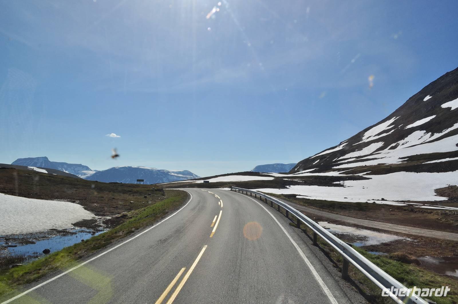 Nach kurzer Fahrt mit dem Bus erreichen wir wieder die E6. Es geht entlang verschiedener Fjorde und über einige Fjelle.
