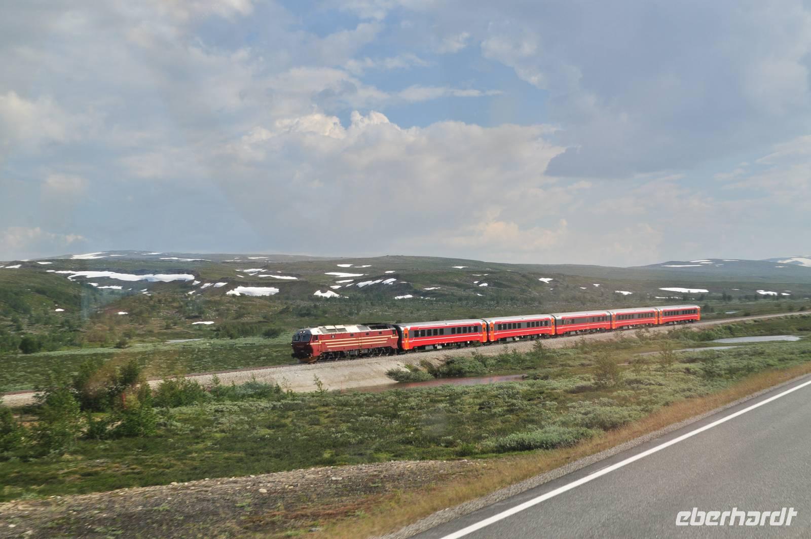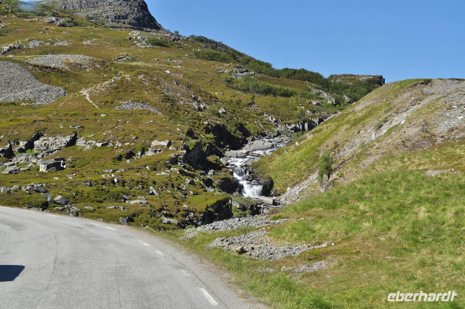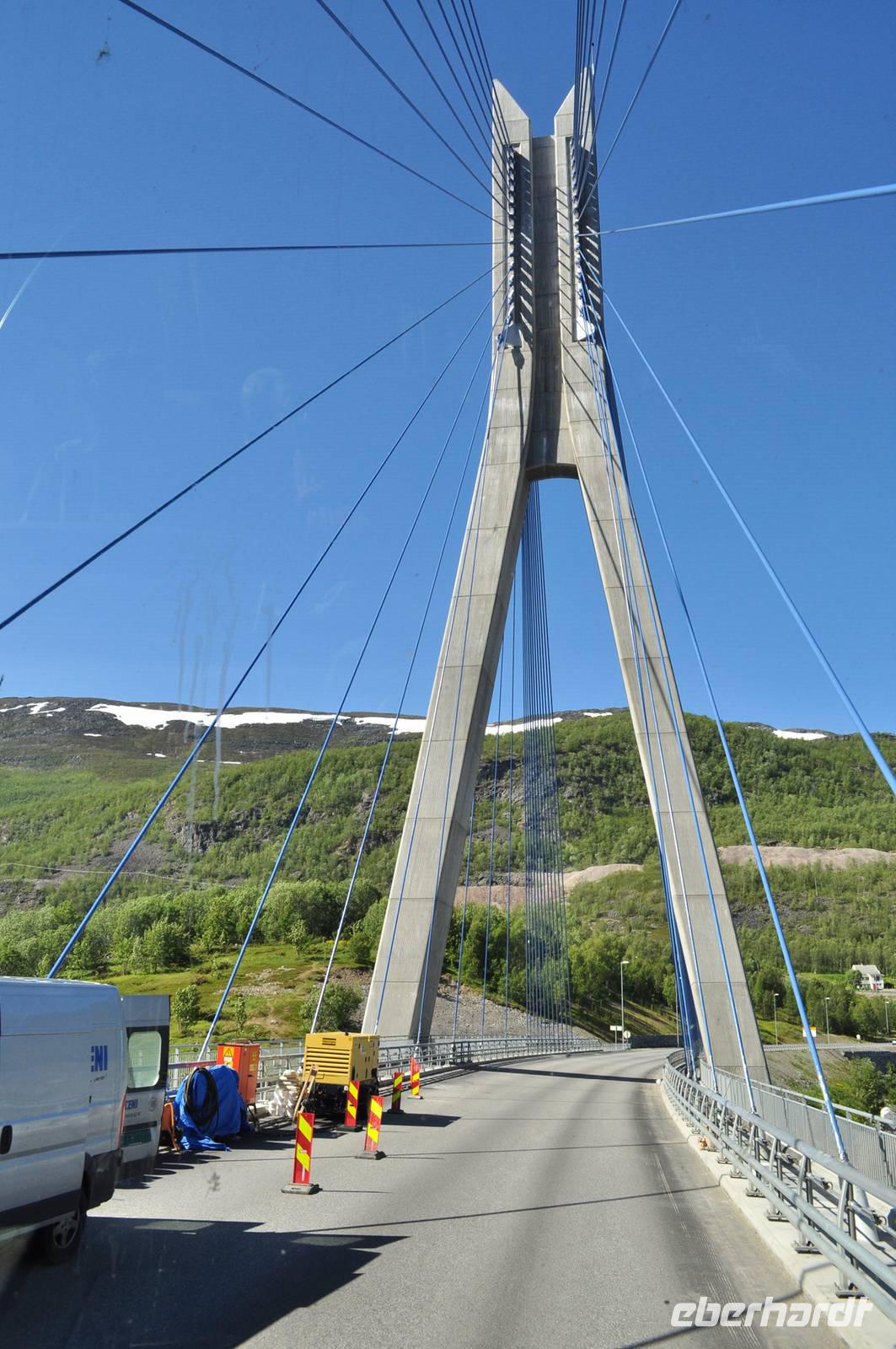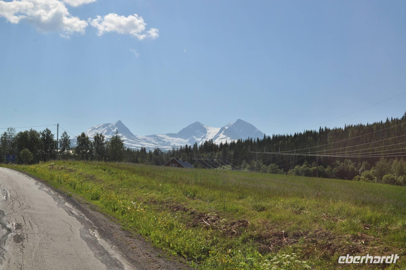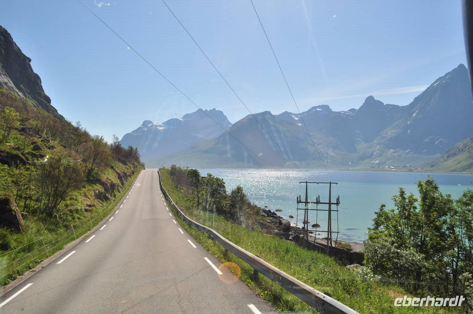 Nach kurzer Fahrt mit dem Bus erreichen wir wieder die E6. Es geht entlang verschiedener Fjorde und über einige Fjelle.