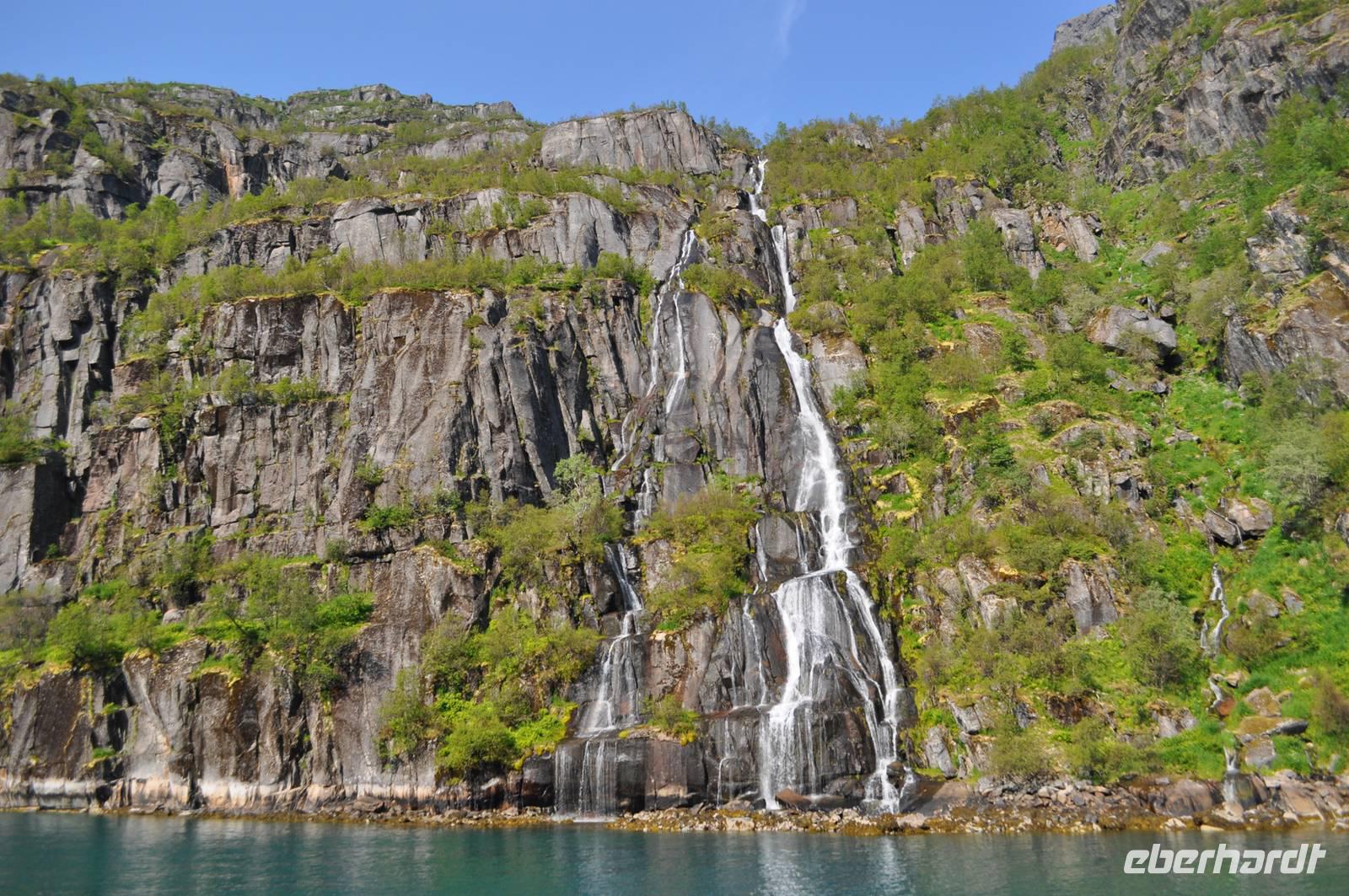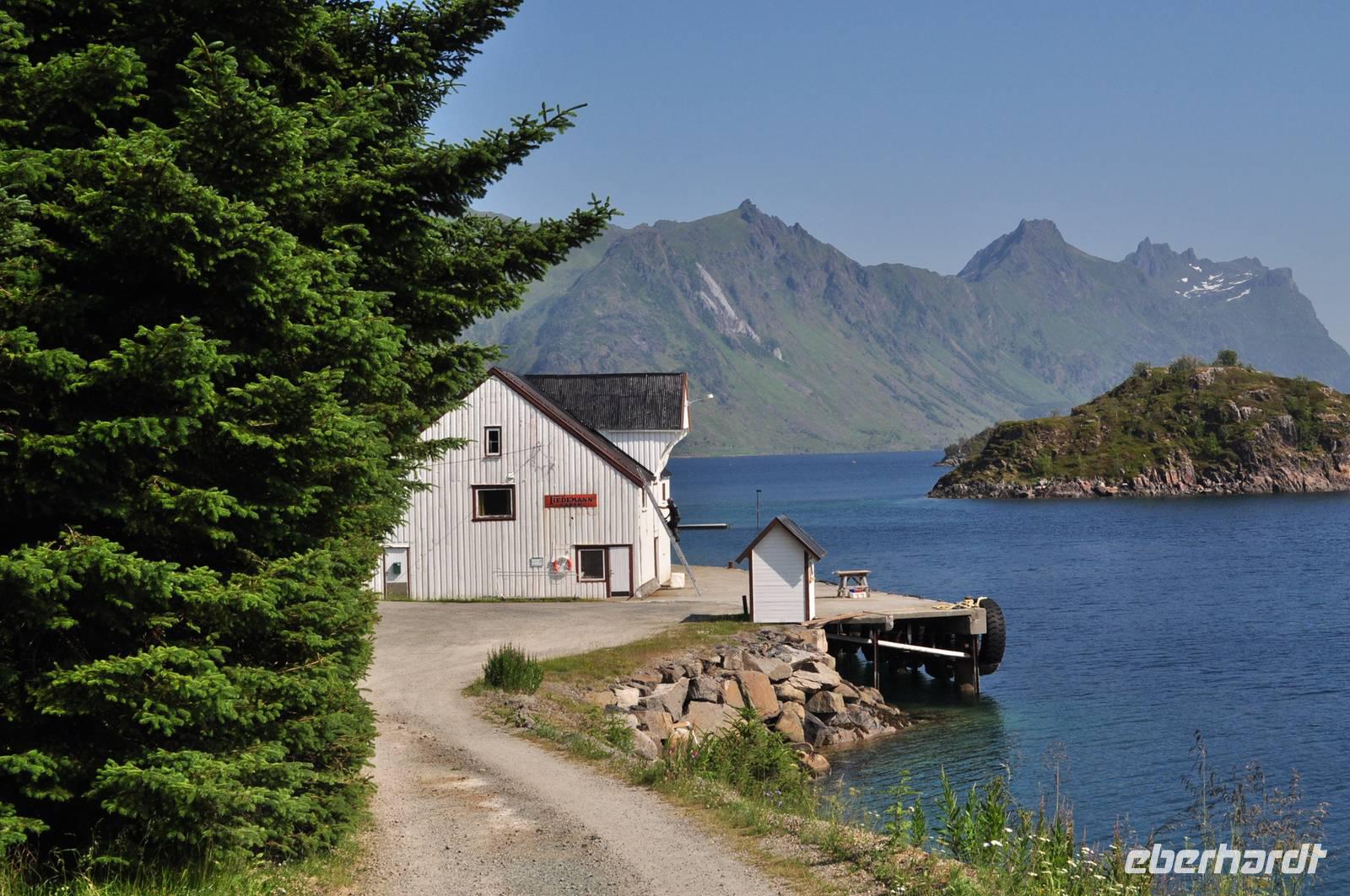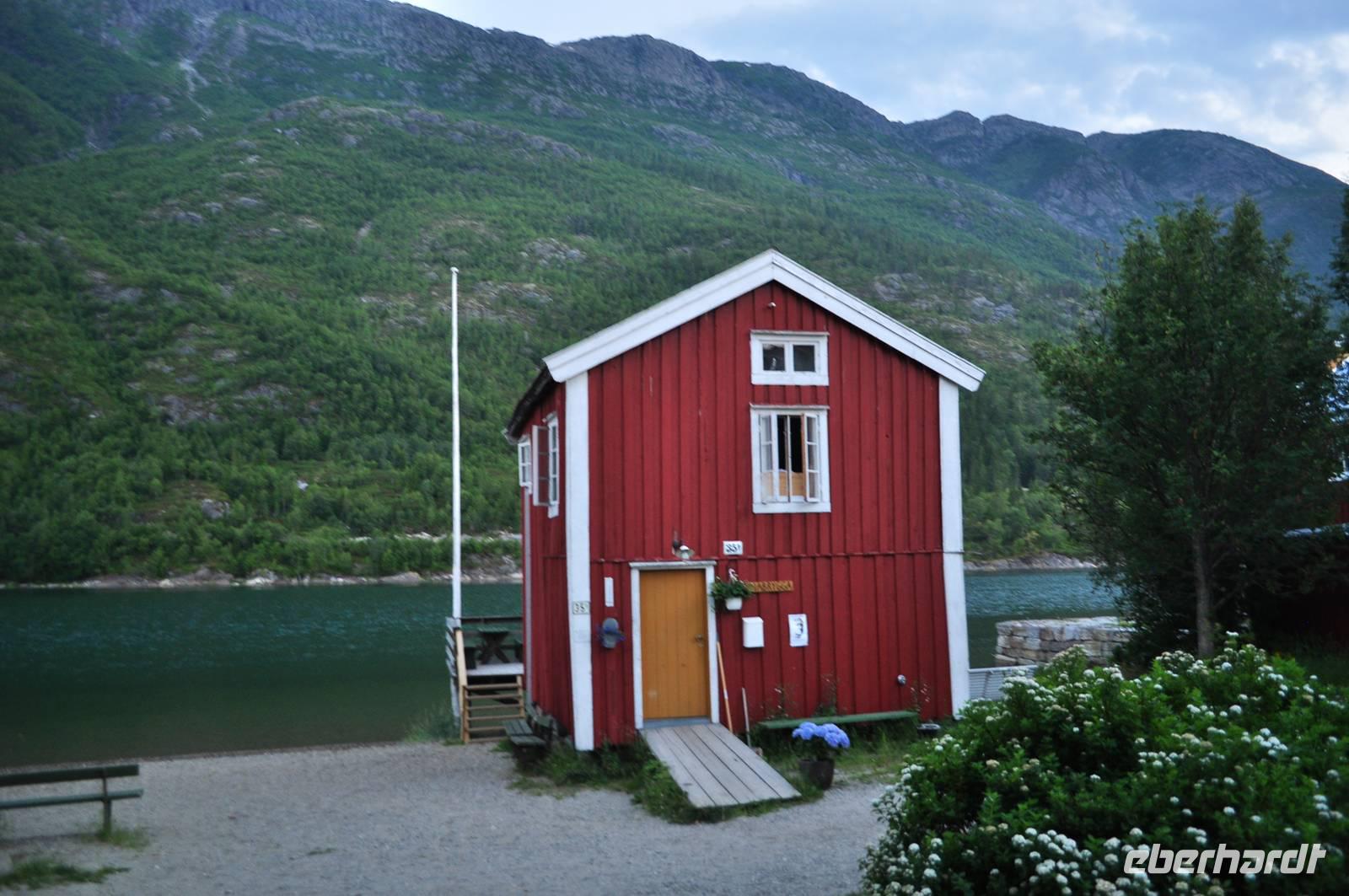 Der Weg führt uns den ganzen Tag von Meereshöhe der Fjorde hinauf auf die baumlosen Fjelle, um uns schnell zurück auf Meeresniveau zu befördern. Es folgt der Langfjorden und das Gebirgsmassiv des Øksfjordjøkelen, dem 9. größten Gletscher Norwegens.