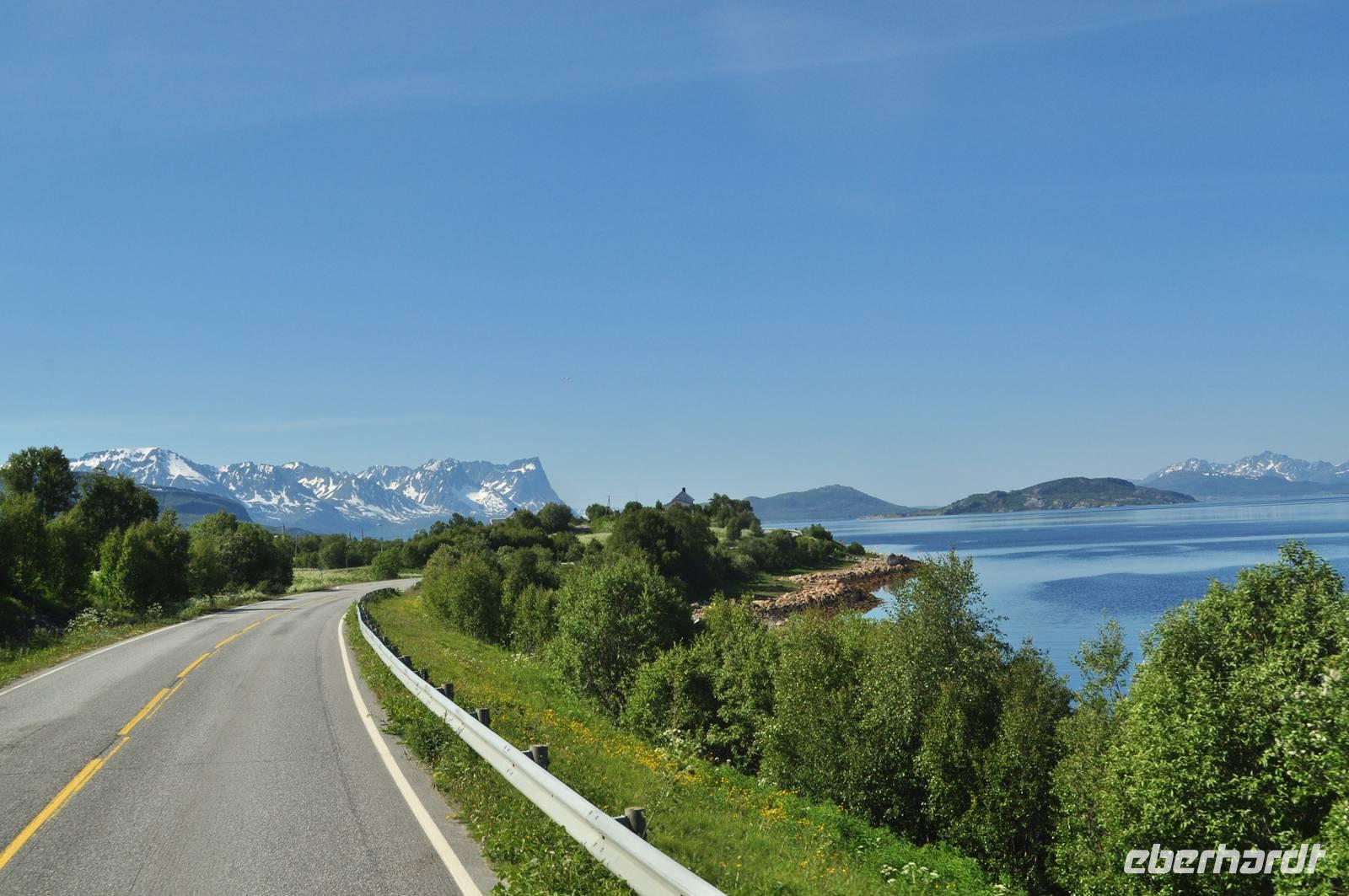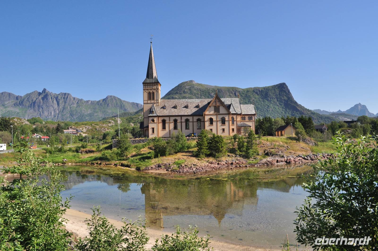 Der Lofoten-Tag. Gemütlich starten wir in den Tag. Wir genießen die Inselwelt der Lofoten in ihrer ganzen Pracht bei bestem Wetter. Es geht vorbei an der berühmten Kirche von Kabelvåg.