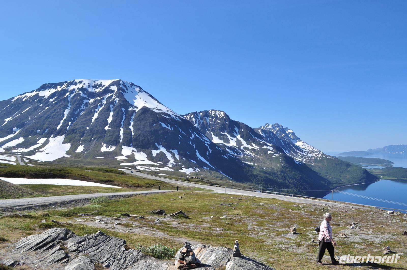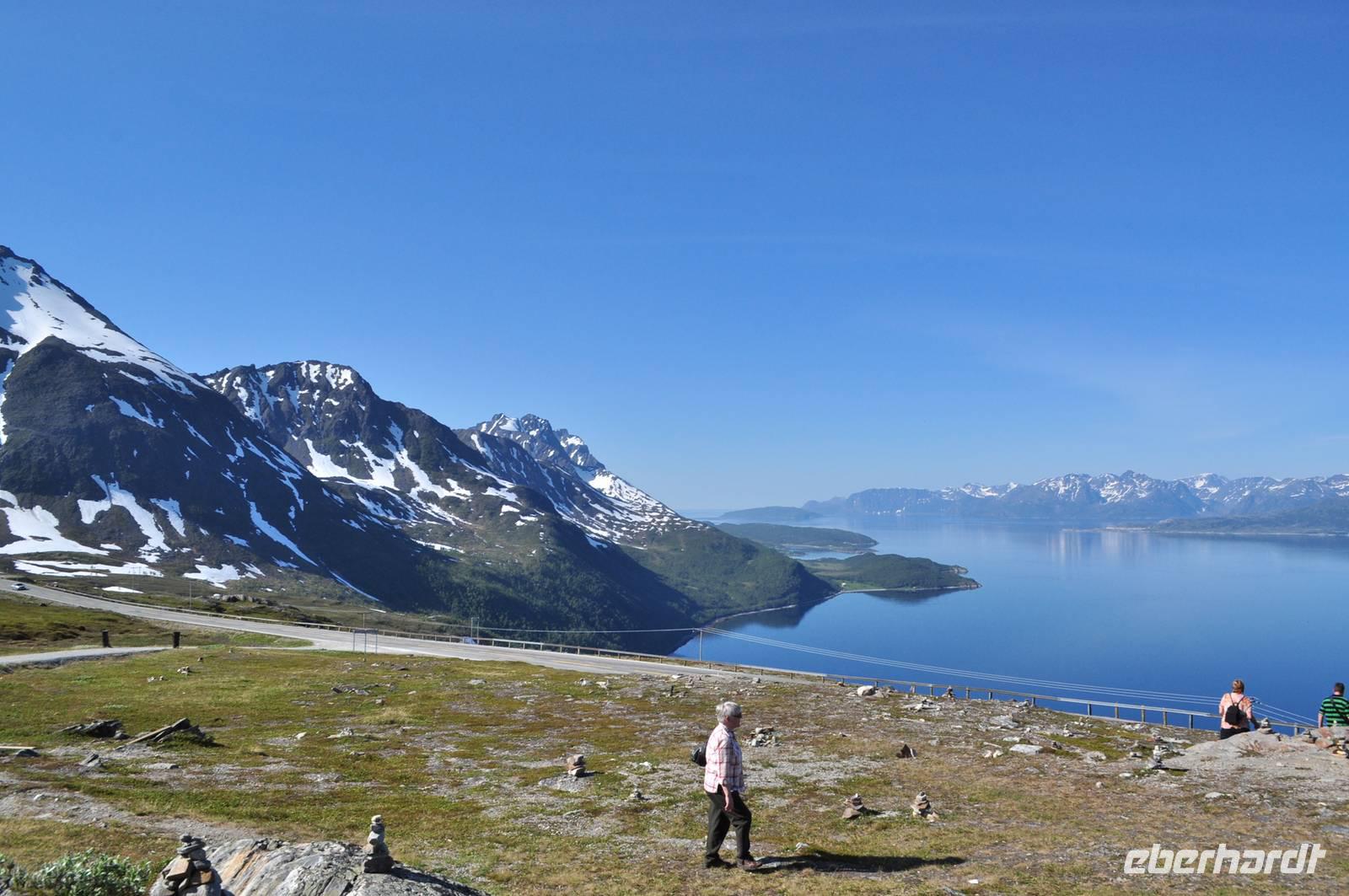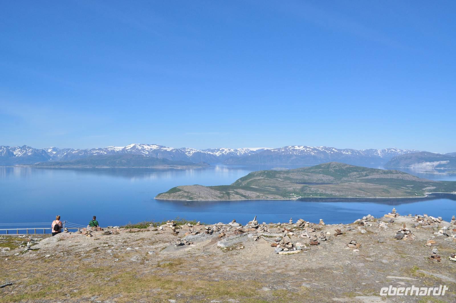 Zu sehen bekommen wir ihn auf dem Kvænangenfjellet. Ein Aussichtspunkt bietet einen fantastischen Blick über die Landschaft aus Fjorden, Bergen, Gletschern, Inseln.