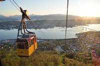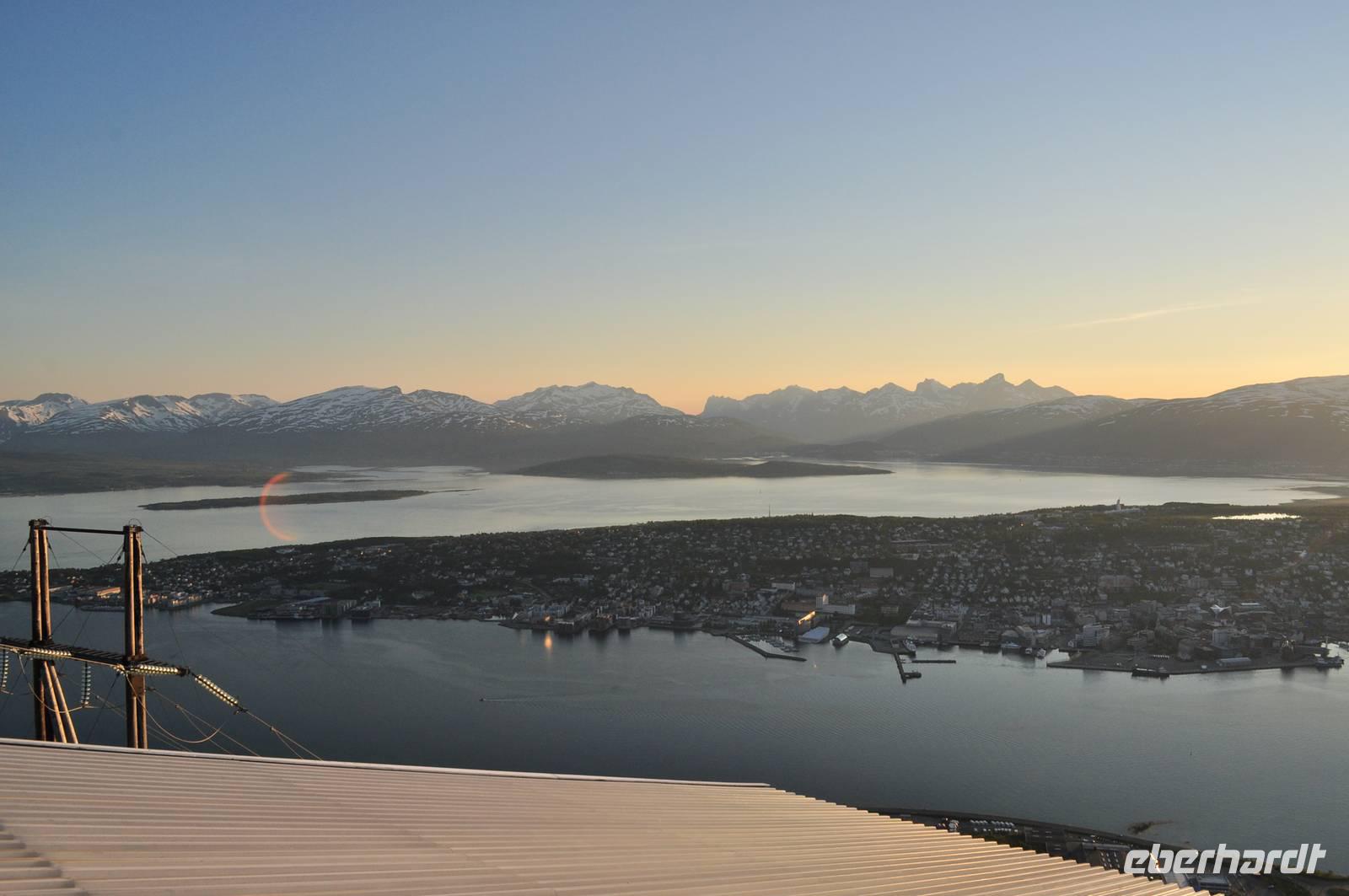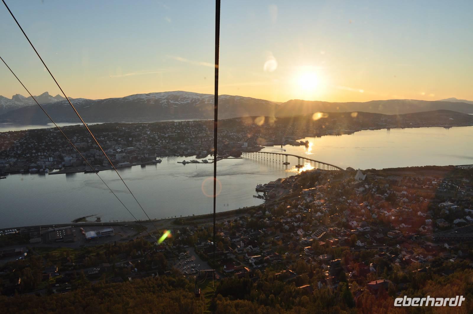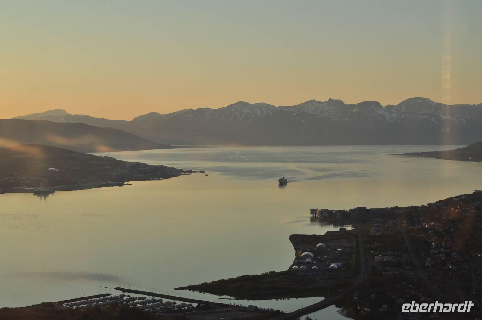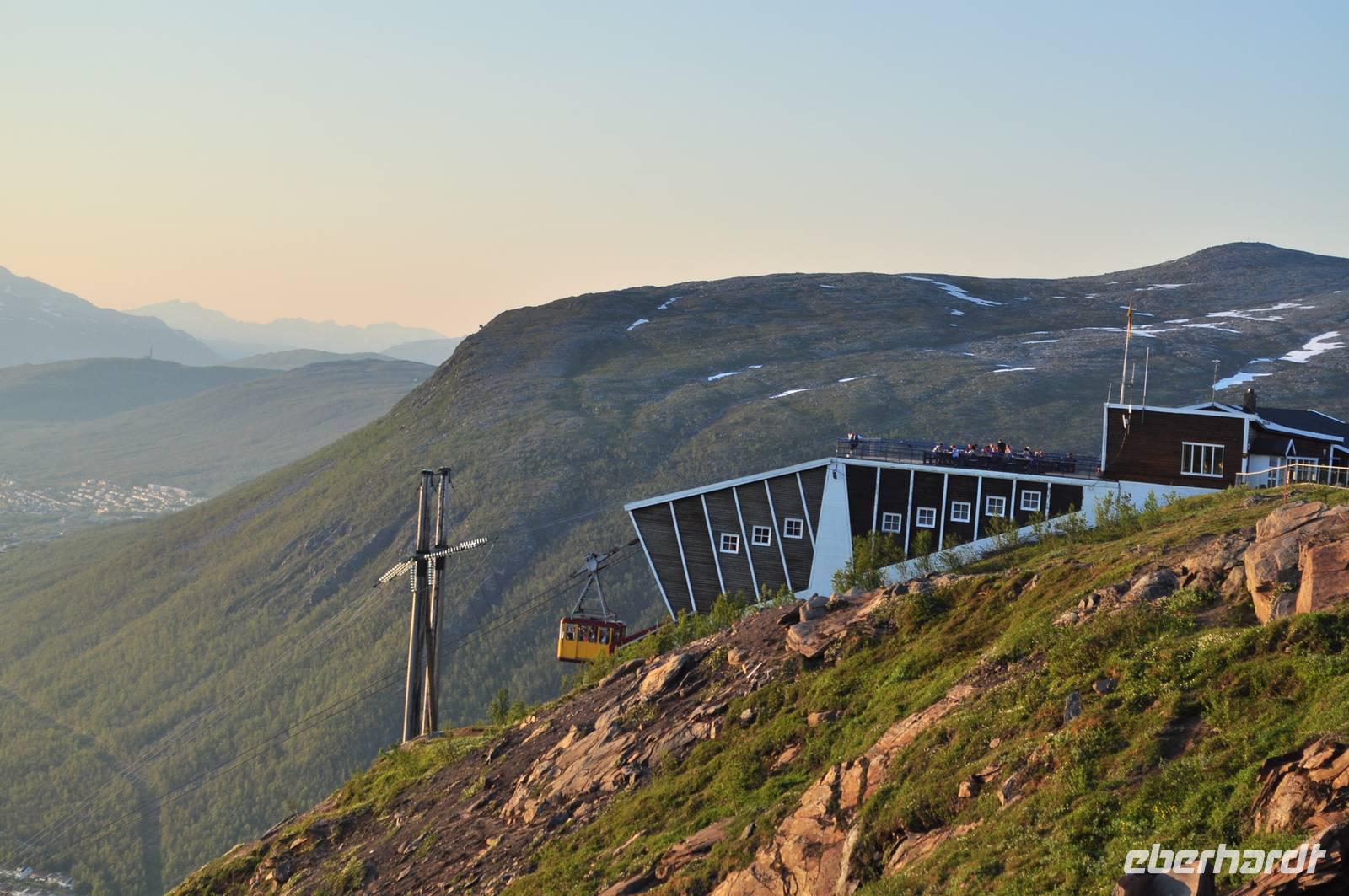 Auch heute gibt es einen Abendspaziergang. Der Linienbus bringt uns zum Festland und zu einer Seilbahnstation. Die Kabelbahn befördert uns hinauf zum Fjellheisen, einem der schönsten Aussichtspunkte von Tromsø.
