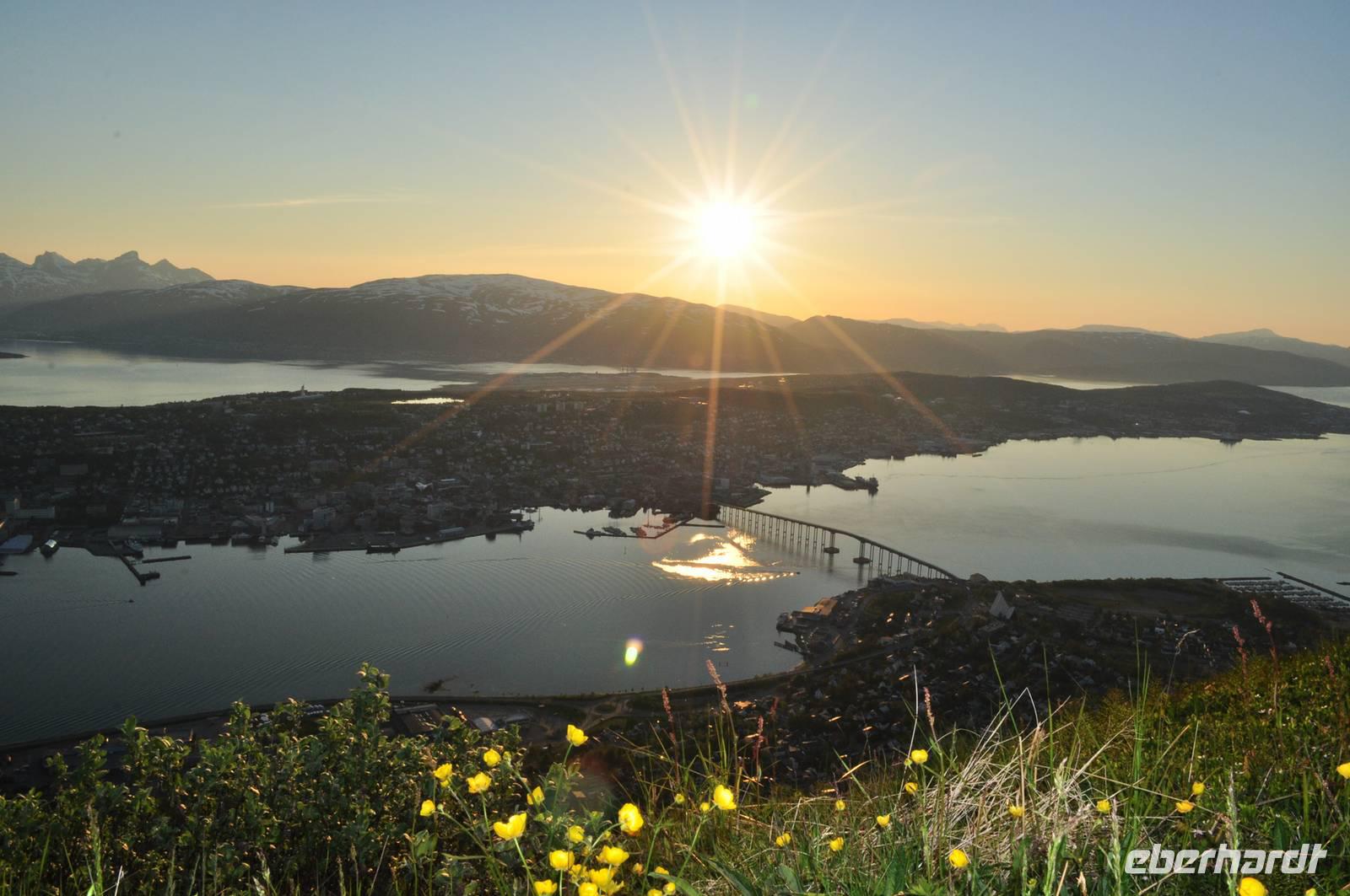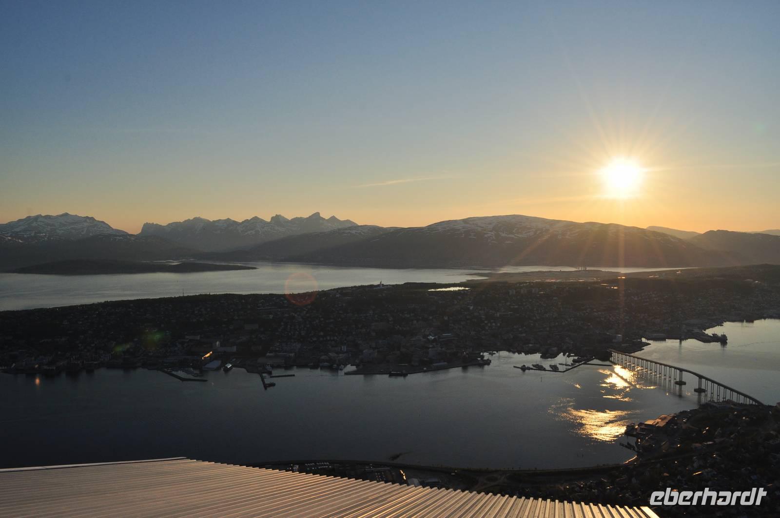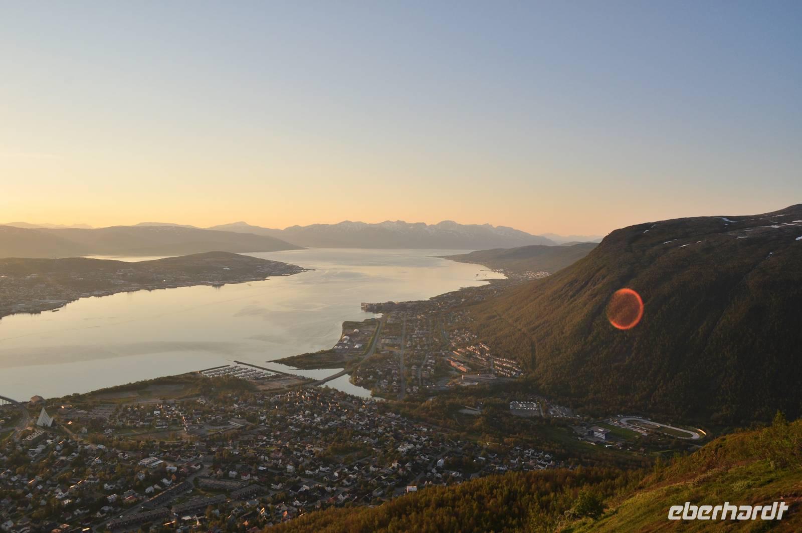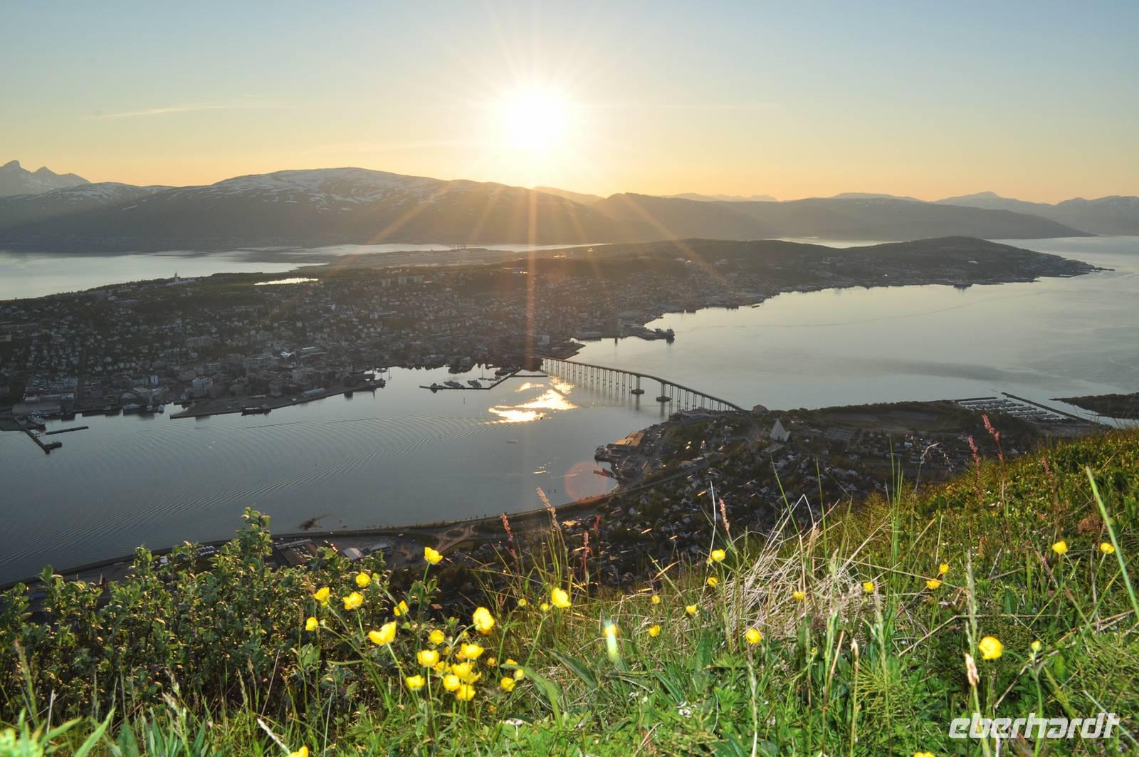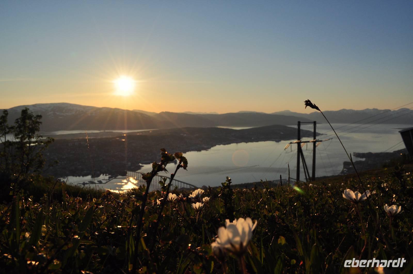 Auch heute gibt es einen Abendspaziergang. Der Linienbus bringt uns zum Festland und zu einer Seilbahnstation. Die Kabelbahn befördert uns hinauf zum Fjellheisen, einem der schönsten Aussichtspunkte von Tromsø.