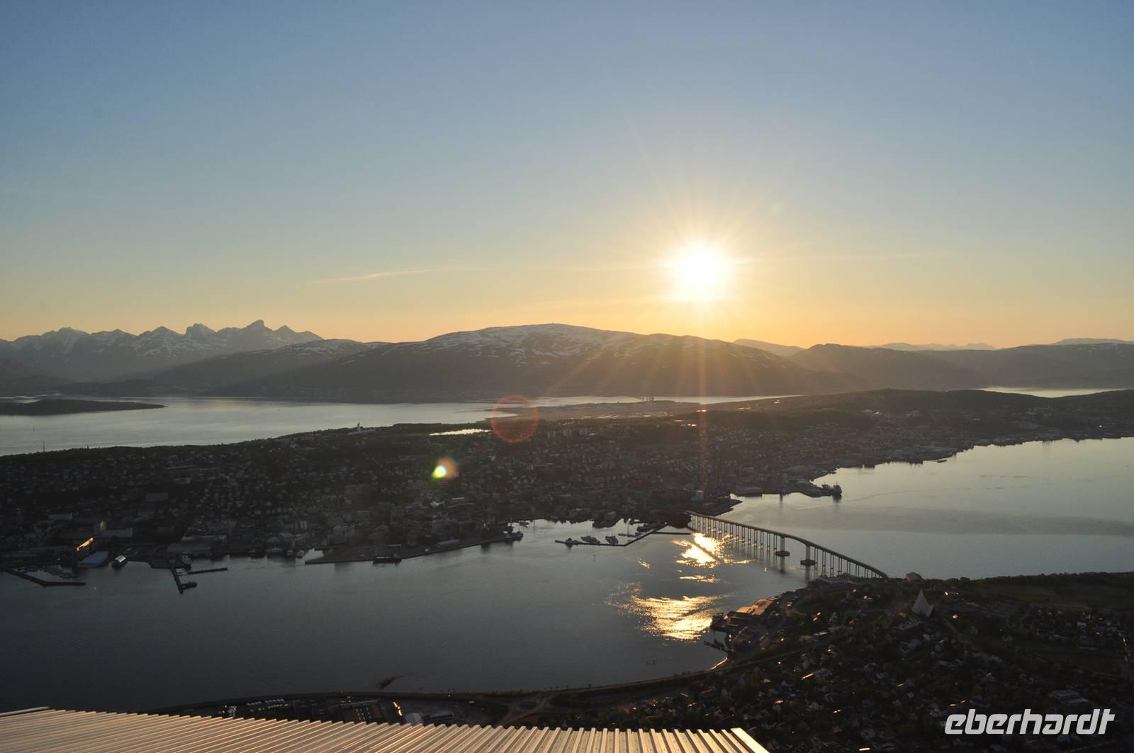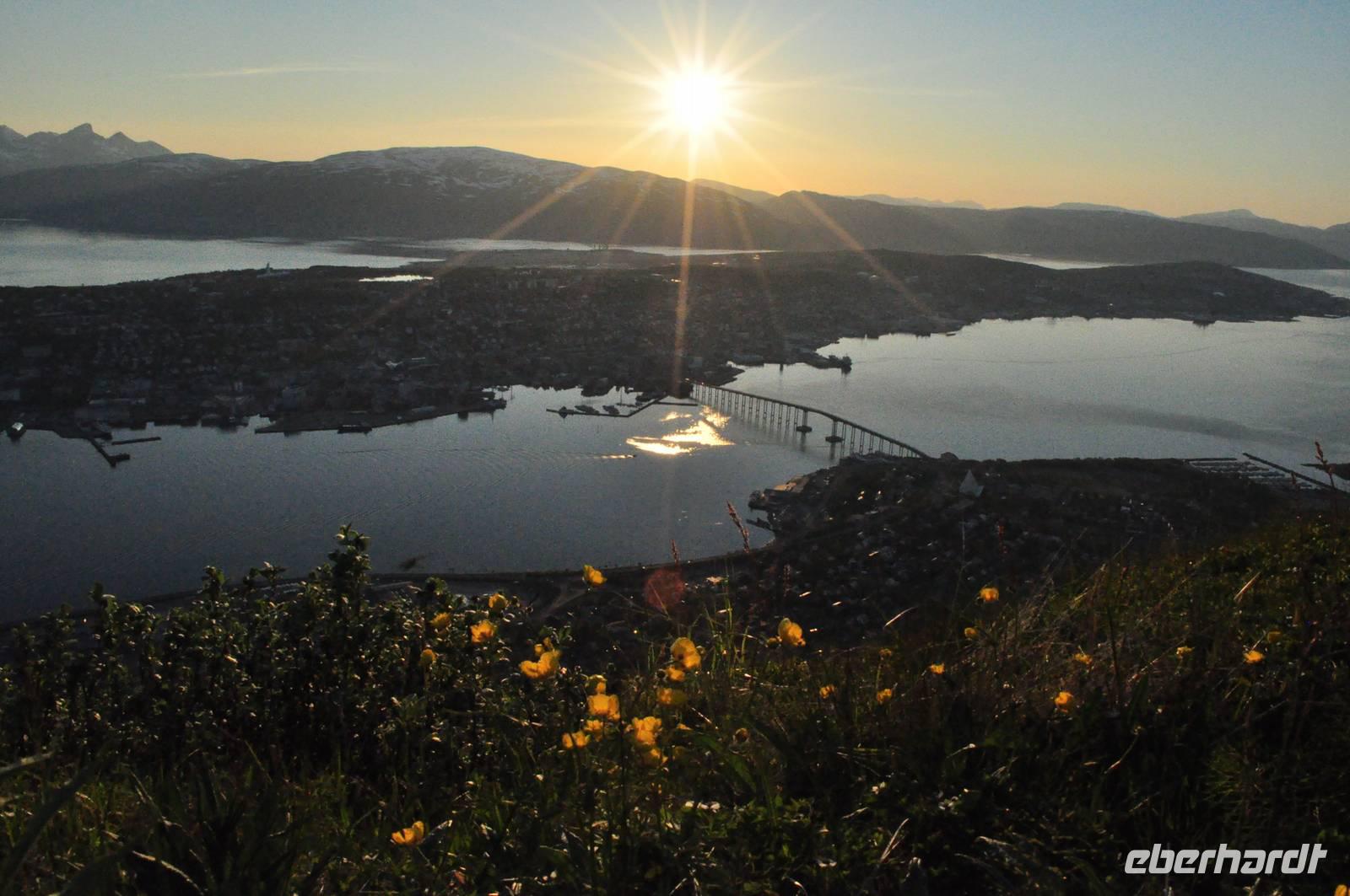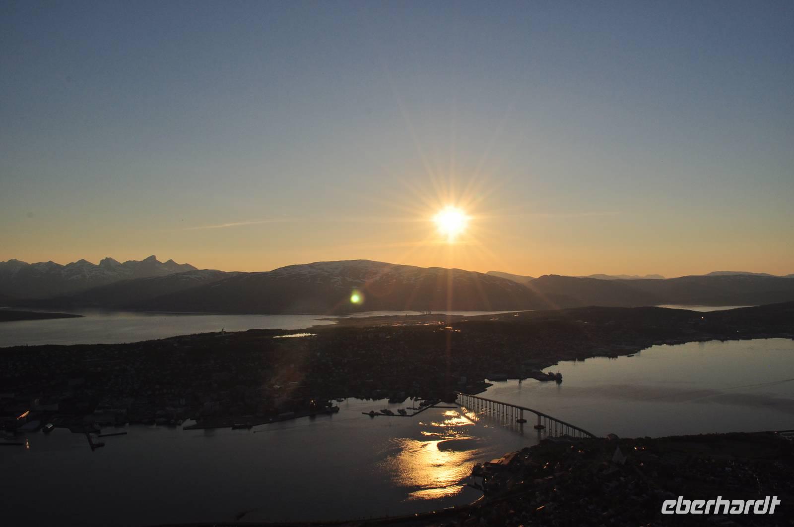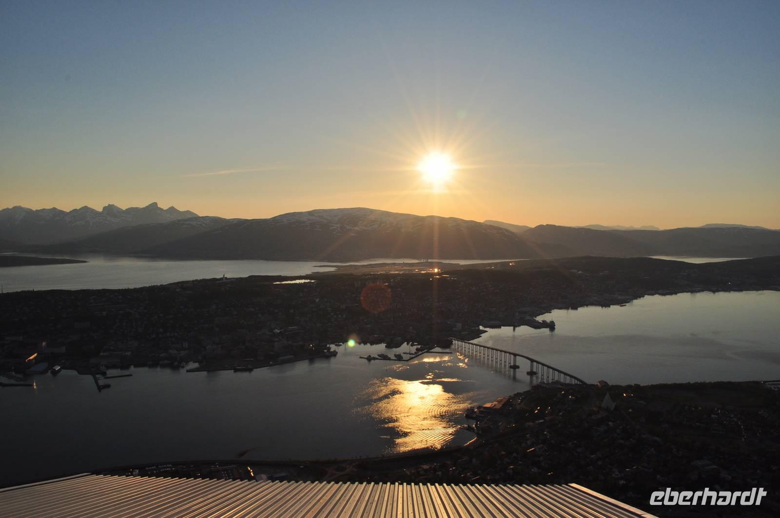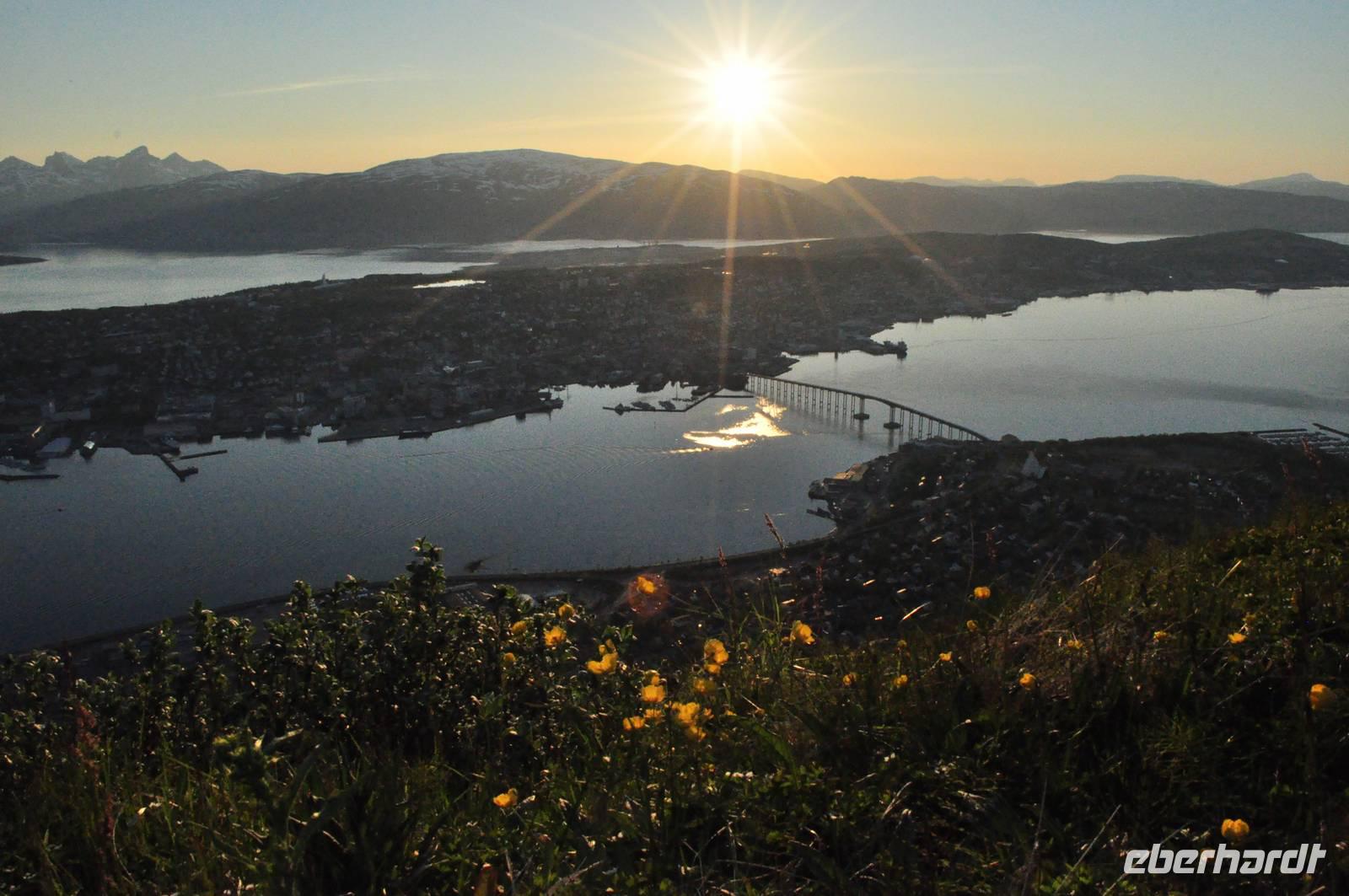 Auch heute gibt es einen Abendspaziergang. Der Linienbus bringt uns zum Festland und zu einer Seilbahnstation. Die Kabelbahn befördert uns hinauf zum Fjellheisen, einem der schönsten Aussichtspunkte von Tromsø.