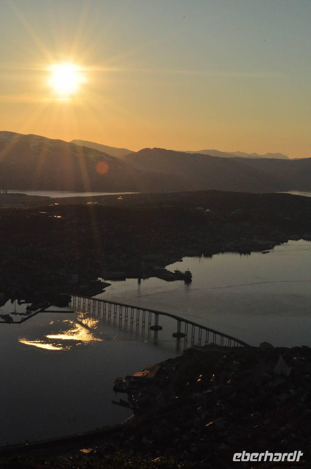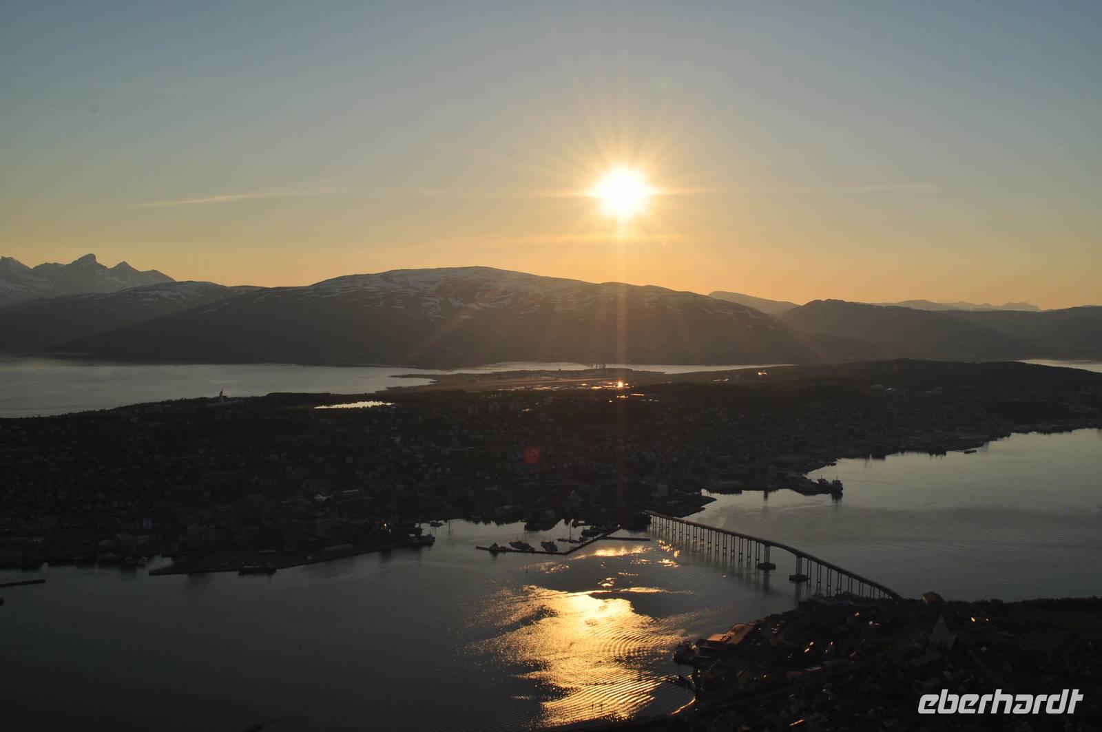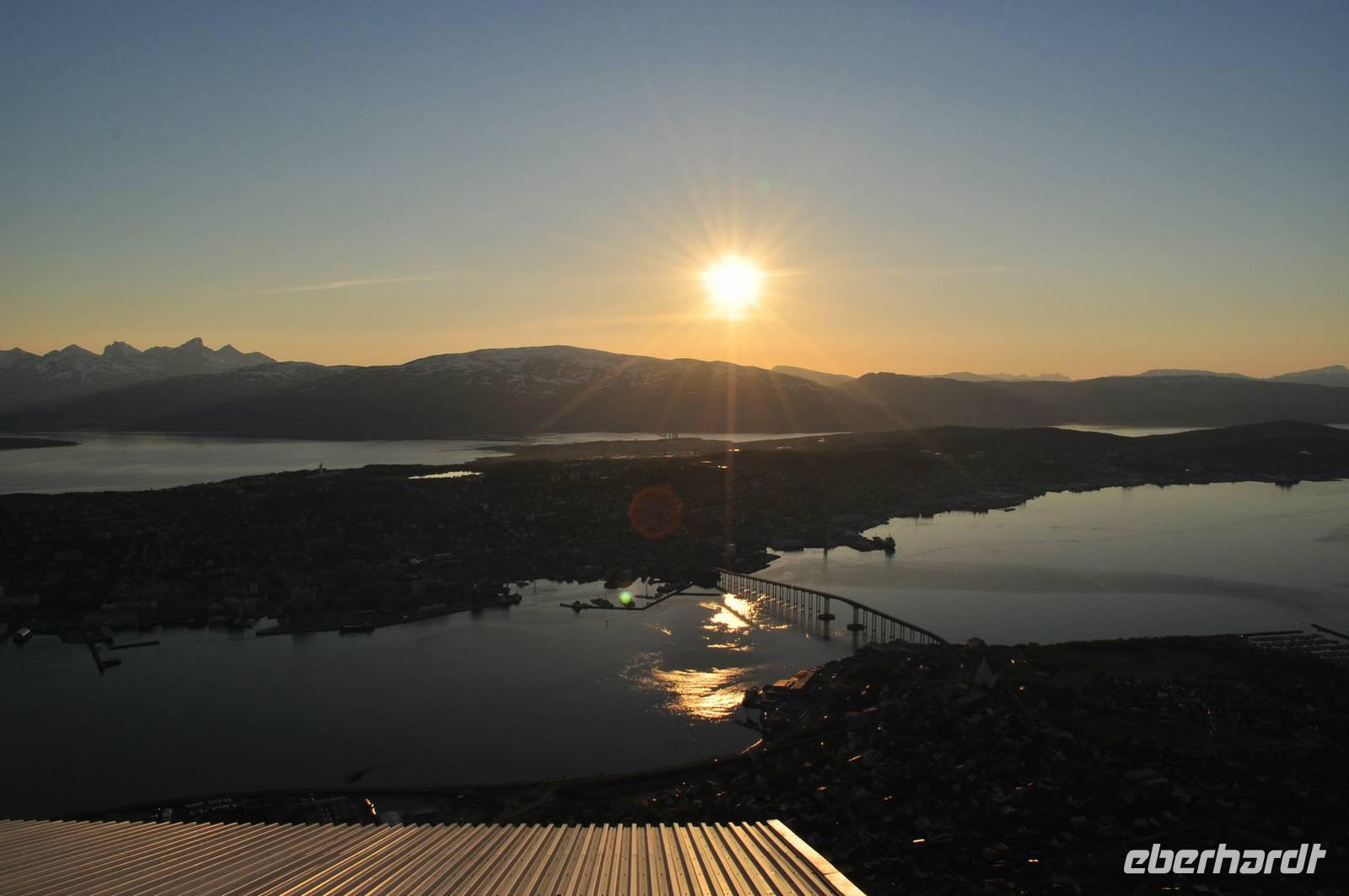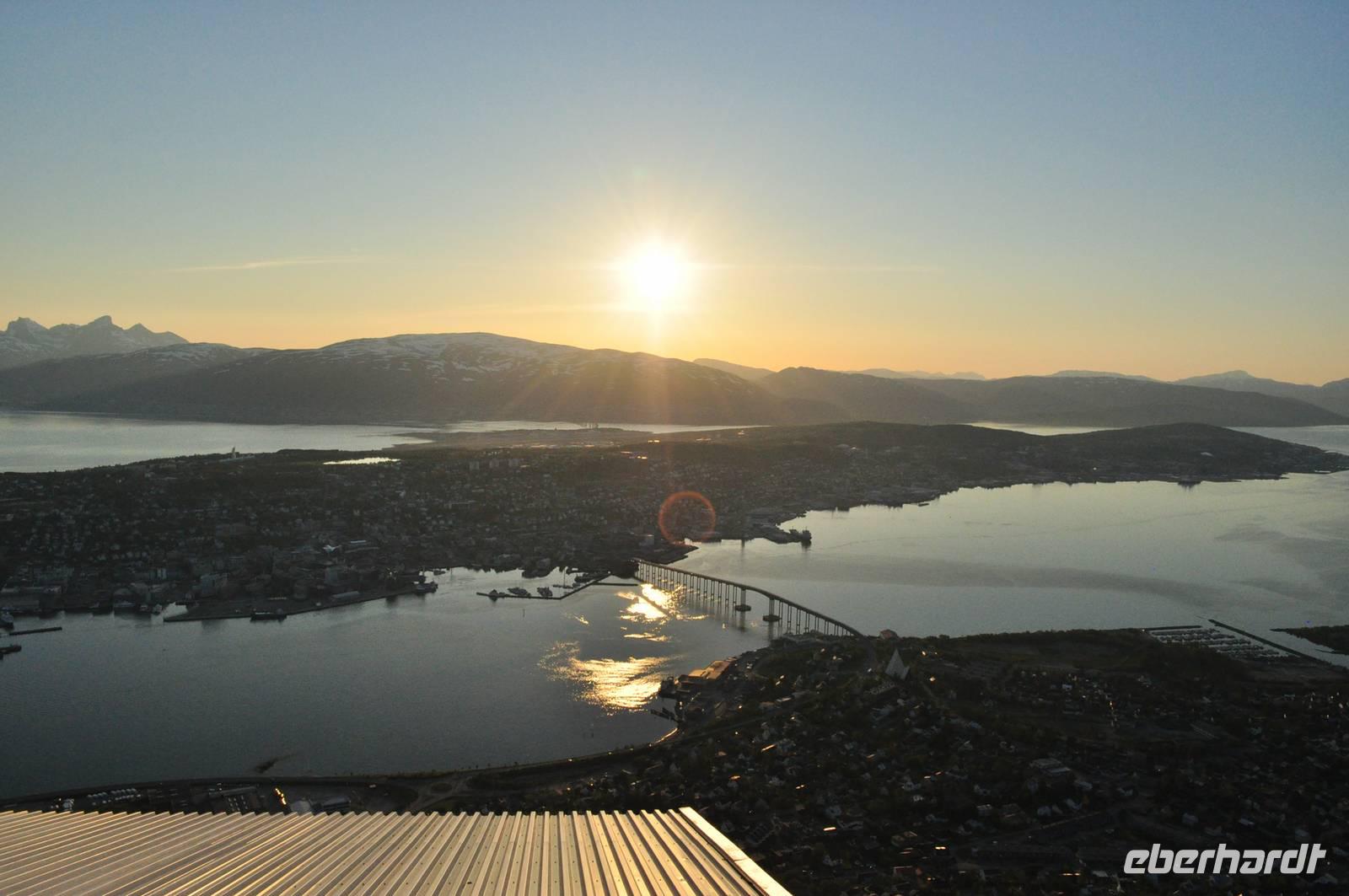 Auch heute gibt es einen Abendspaziergang. Der Linienbus bringt uns zum Festland und zu einer Seilbahnstation. Die Kabelbahn befördert uns hinauf zum Fjellheisen, einem der schönsten Aussichtspunkte von Tromsø.