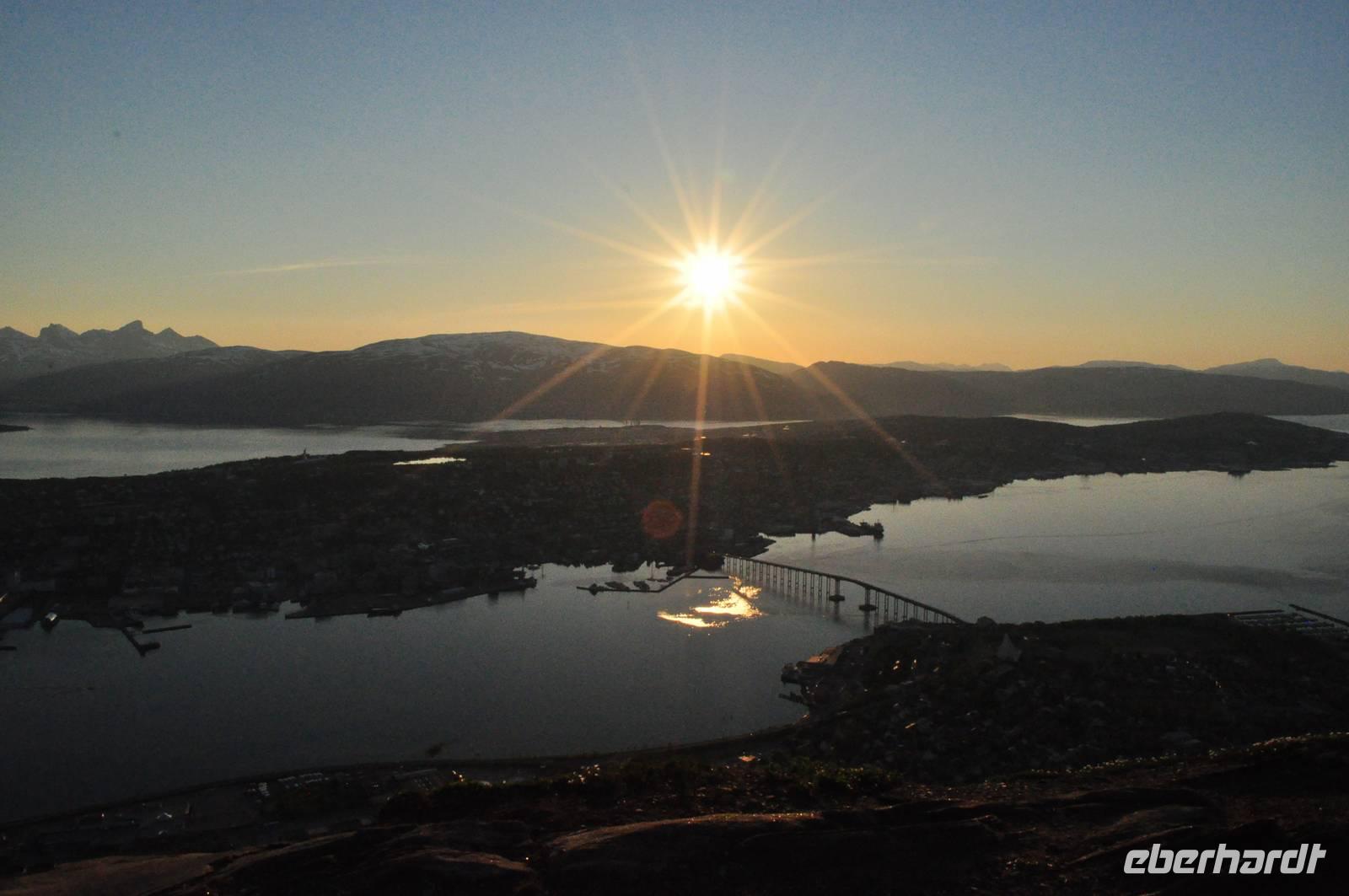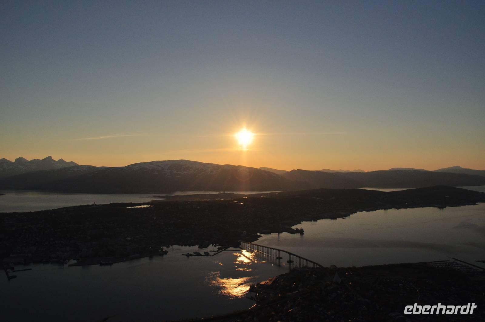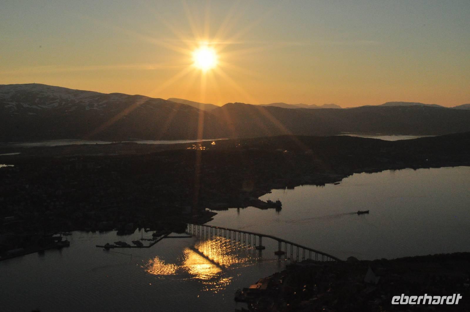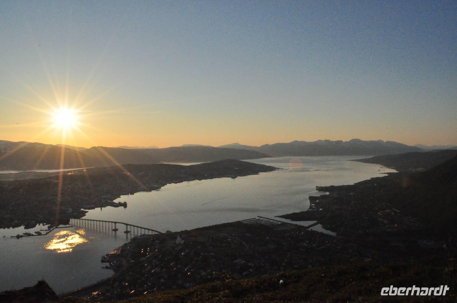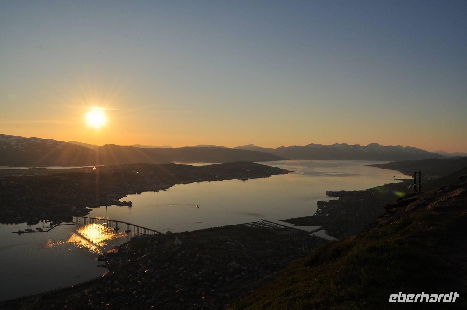 Auch heute gibt es einen Abendspaziergang. Der Linienbus bringt uns zum Festland und zu einer Seilbahnstation. Die Kabelbahn befördert uns hinauf zum Fjellheisen, einem der schönsten Aussichtspunkte von Tromsø.