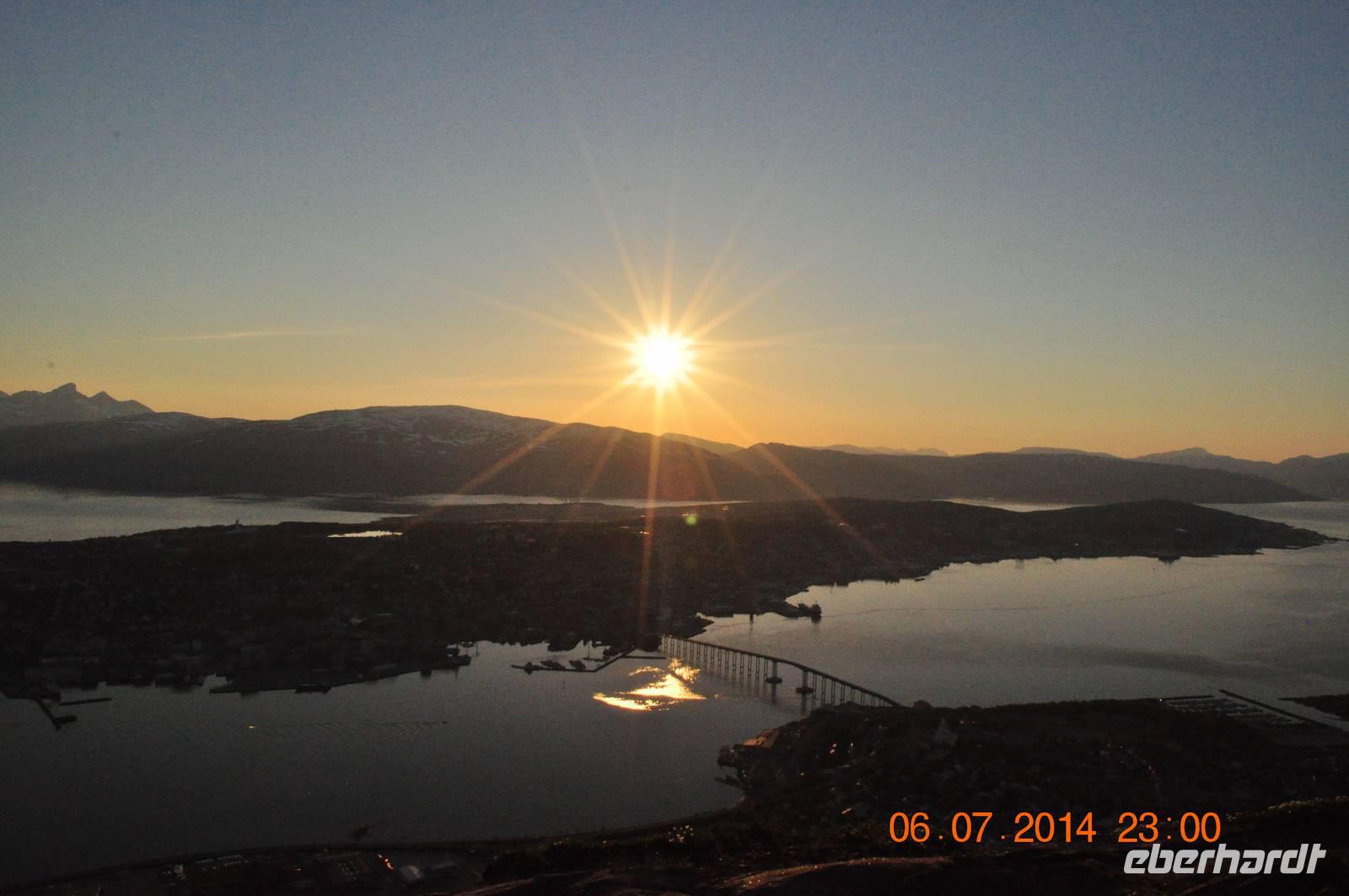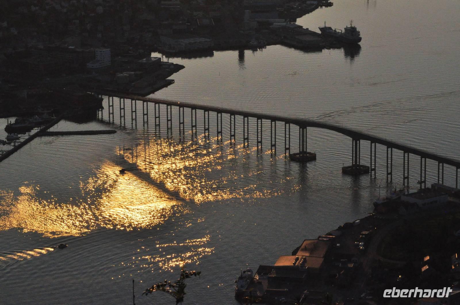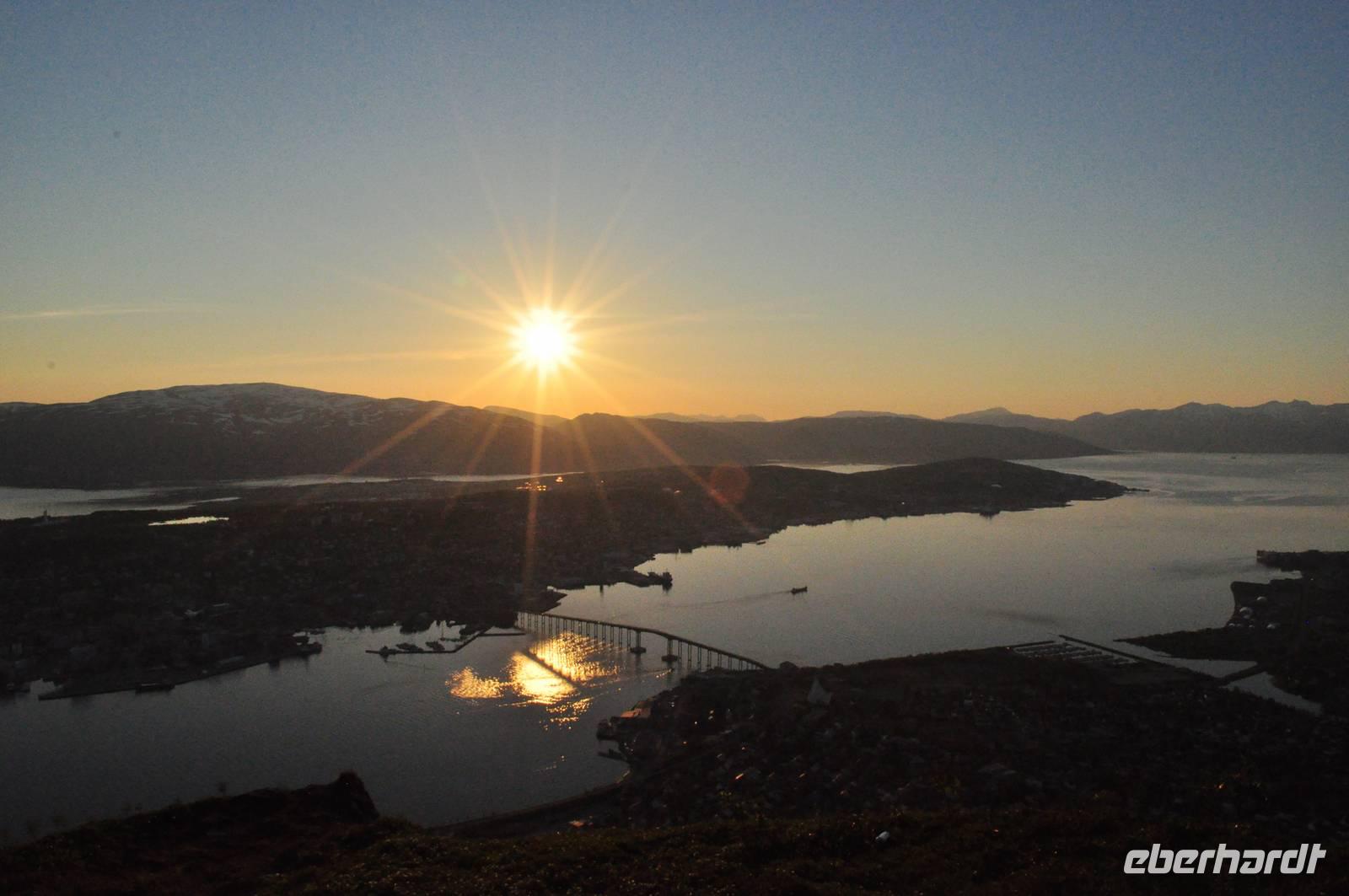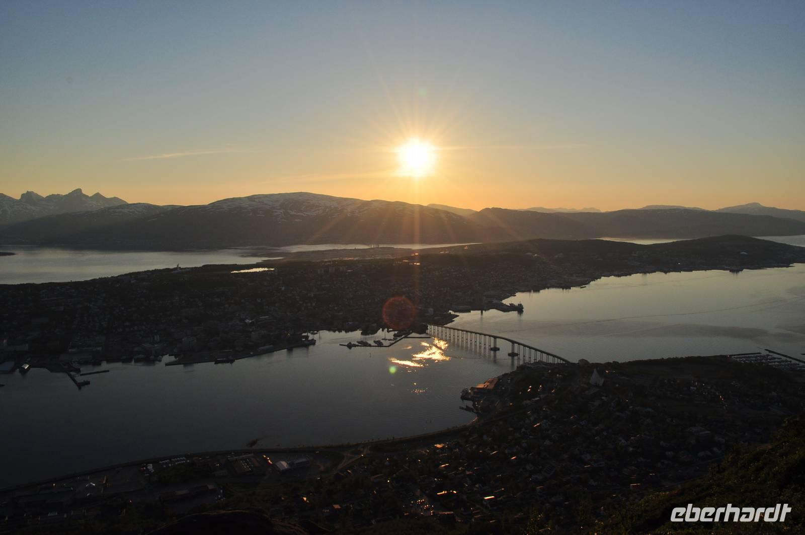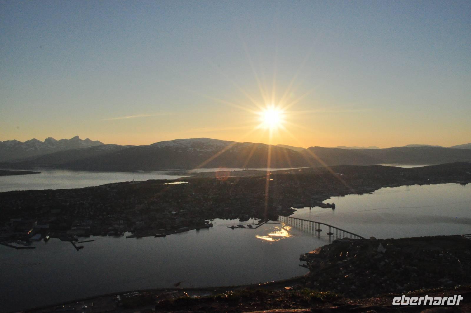 Auch heute gibt es einen Abendspaziergang. Der Linienbus bringt uns zum Festland und zu einer Seilbahnstation. Die Kabelbahn befördert uns hinauf zum Fjellheisen, einem der schönsten Aussichtspunkte von Tromsø.