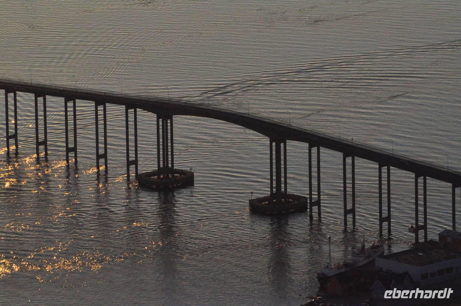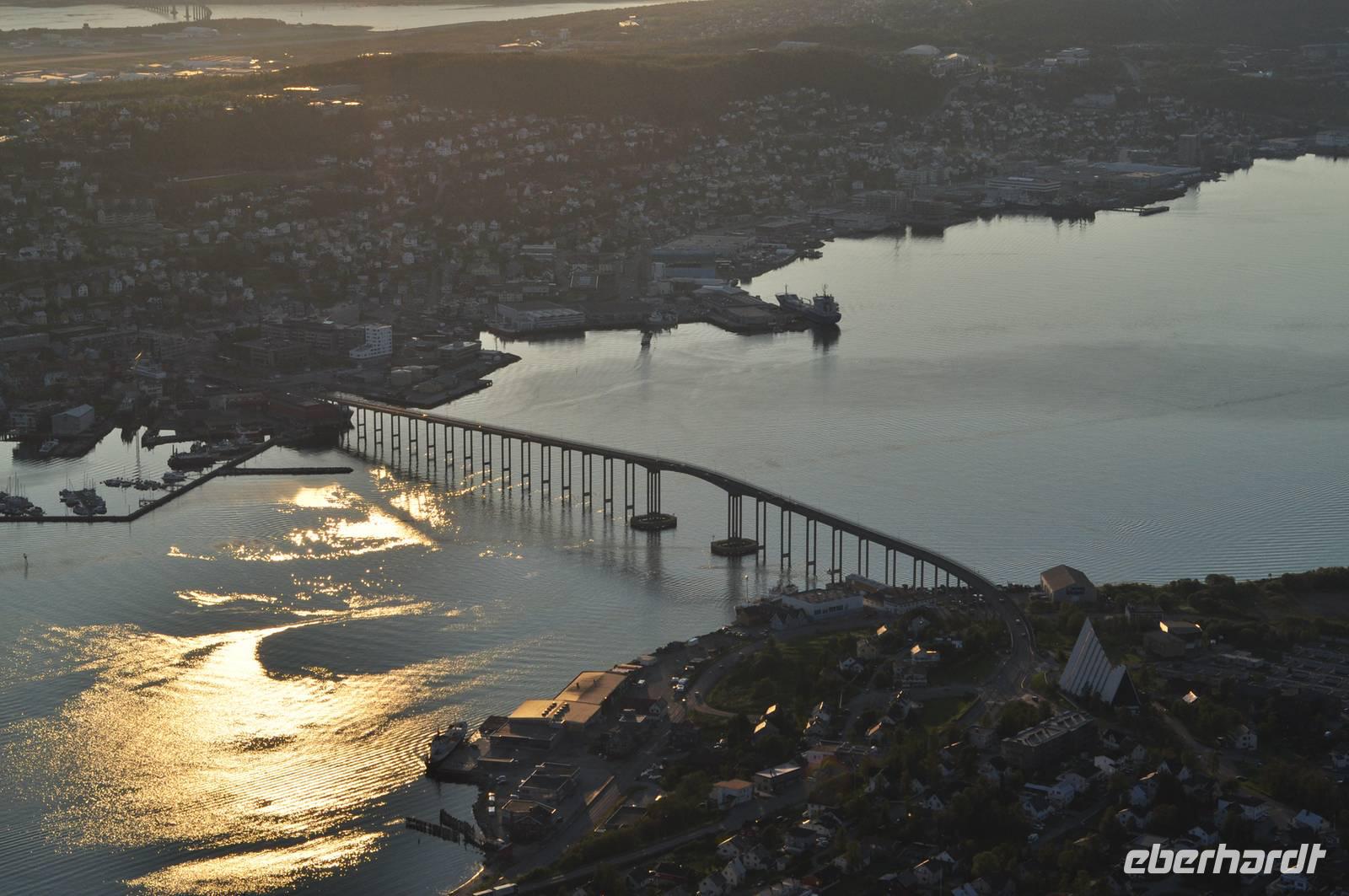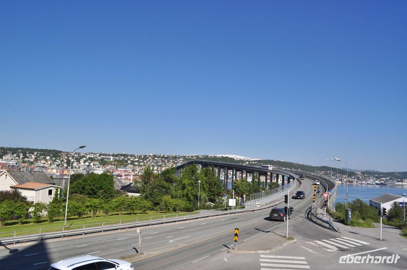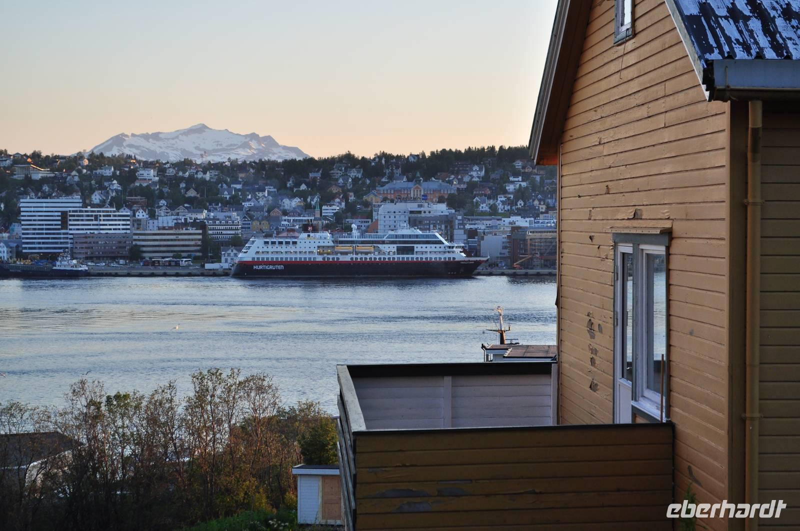 Am Abend erreichen wir die wunderbare Polarstadt Tromsø. Wir überqueren die Tromsø Bru und erreichen die Altstadt auf ihrer Insel mit der großartigen Holzbebauung. Man fühlt sich den großen Polarforschern Nansen, Amundsen und wie sie alle heißen ein wenig näher.