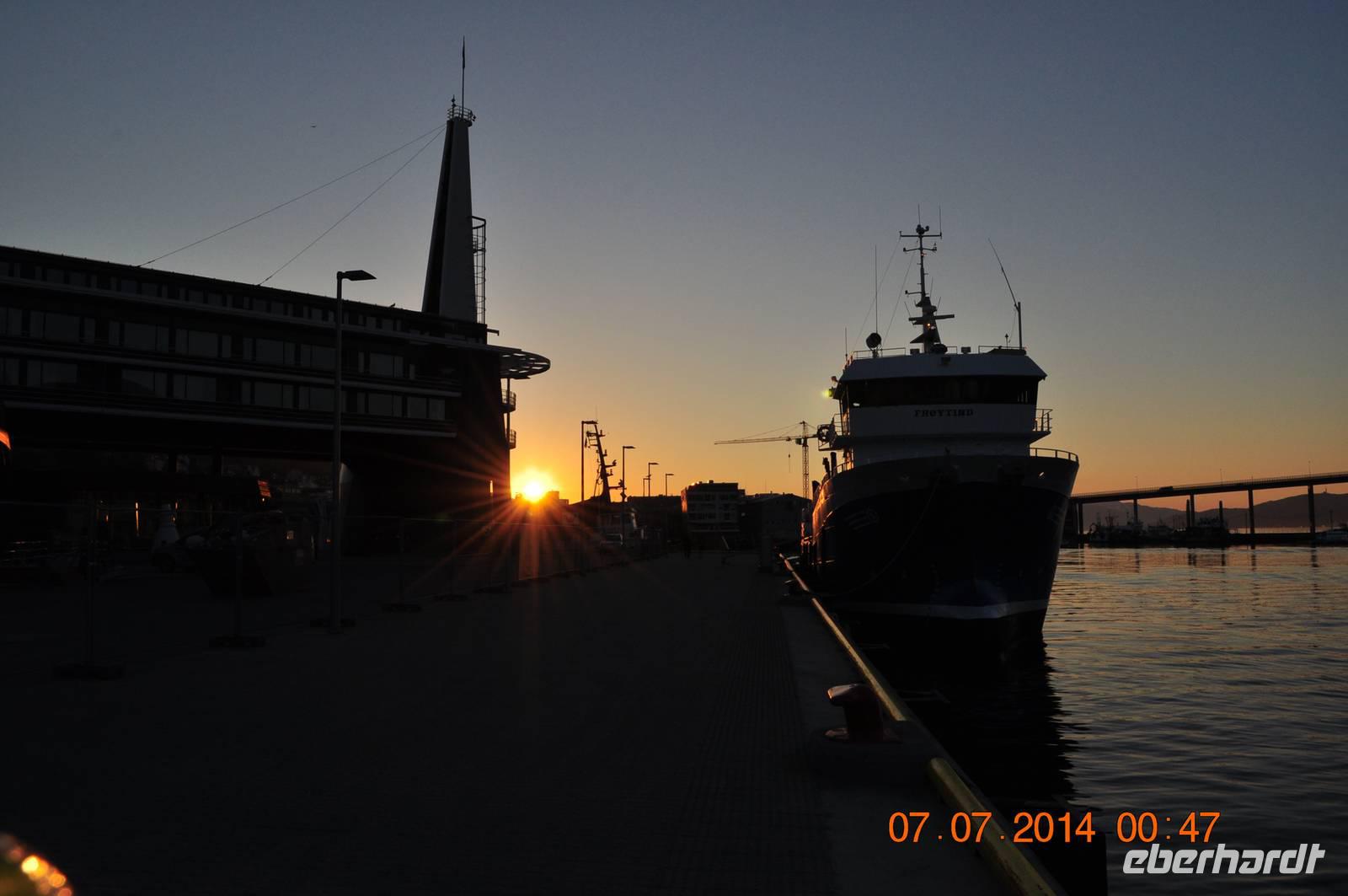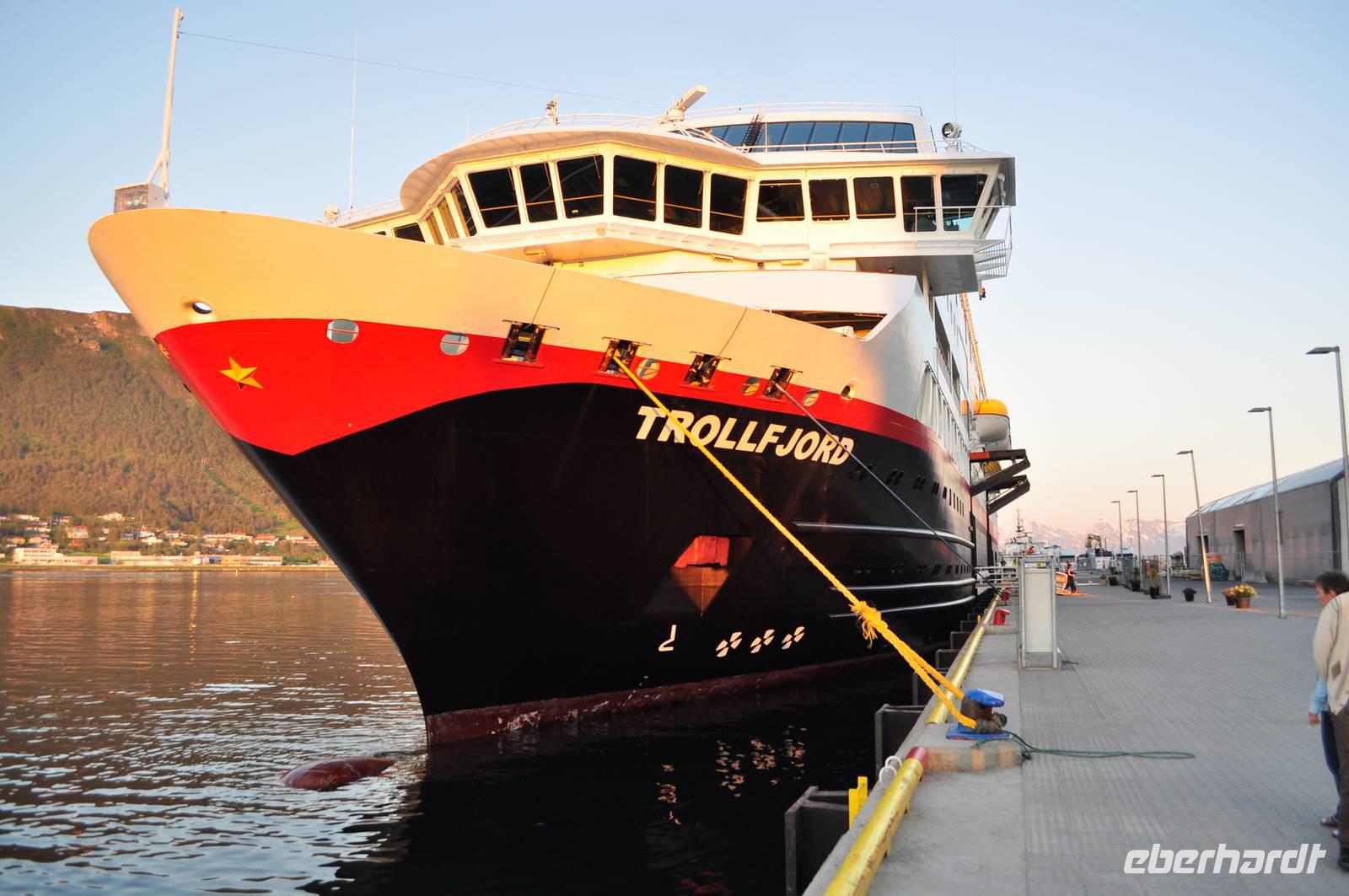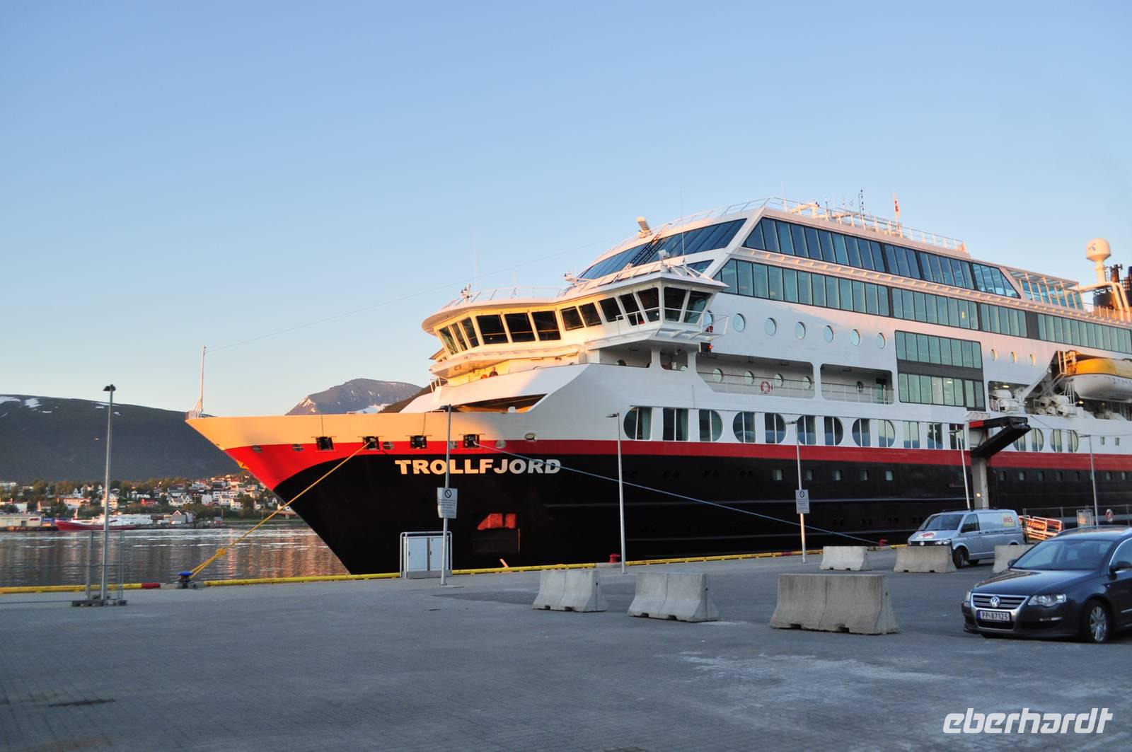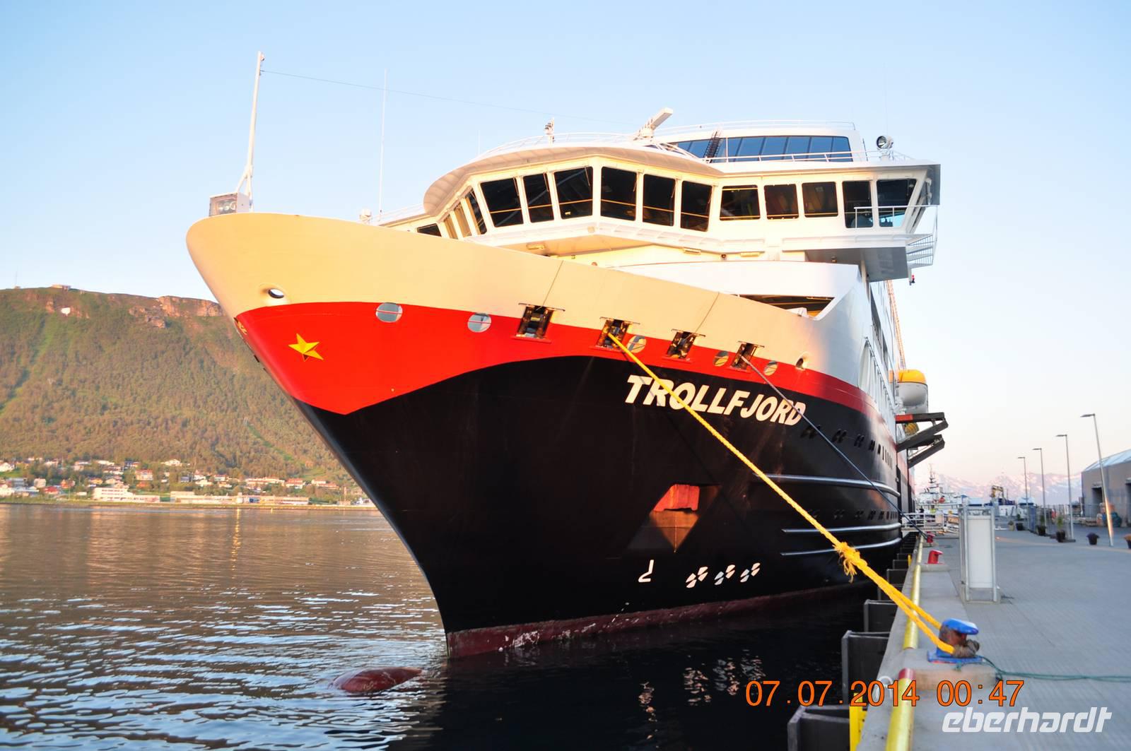 Für die Hurtigruten Fans legt gegen Mitternacht die MS Trollfjord (südgehend) an.