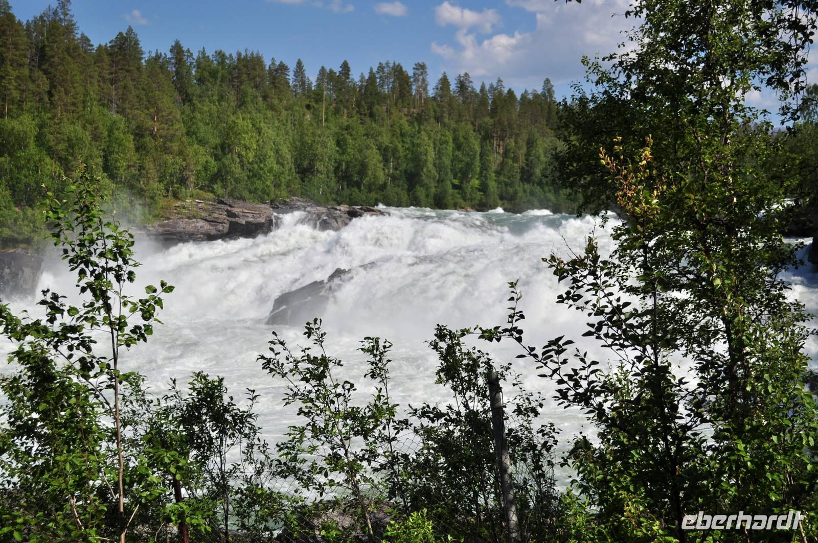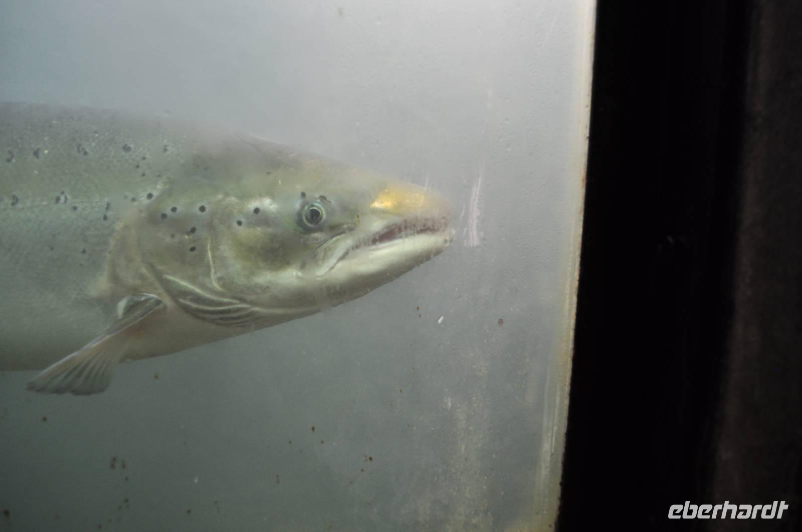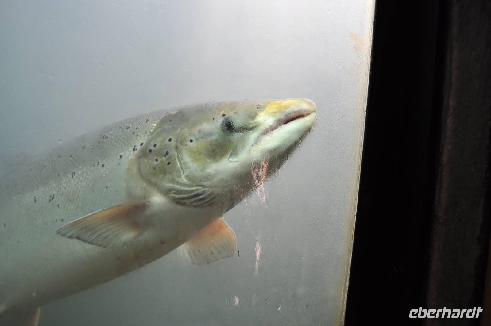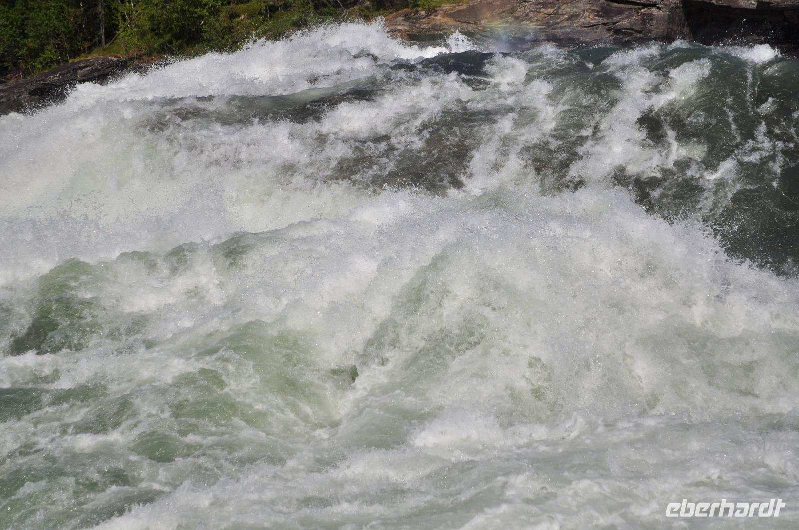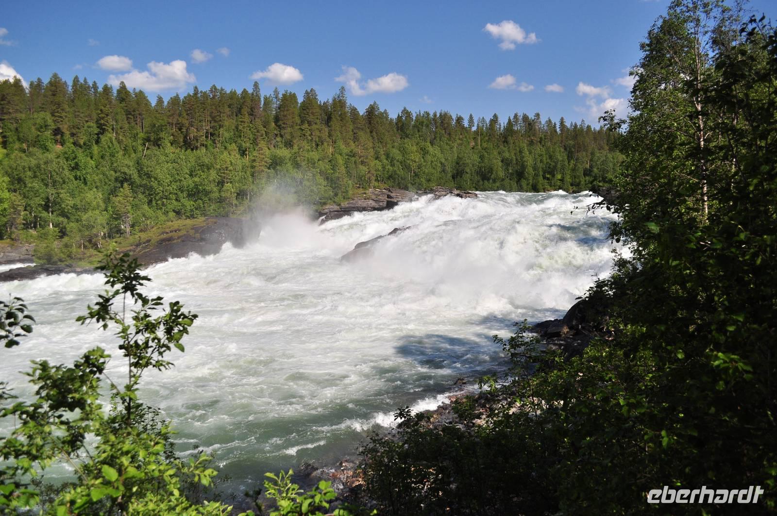 Nun geht es wirklich weiter nach Süden, zunächst über die E8 dann wieder auf die E6. Wir erreichen den Målselvfossen eine beeindruckende tosende Stromschnelle. Auf Wunsch wird Lachssuppe serviert, selbstverständlich zubereitet aus hauseigenem Lachs. Außerdem bekommen wir in einem kleinen Aquarium echte lebende Lachse zu Gesicht.