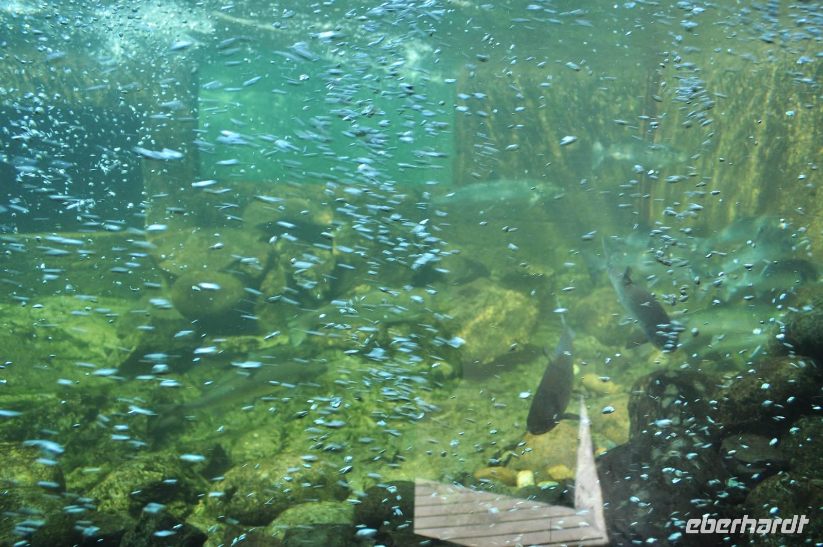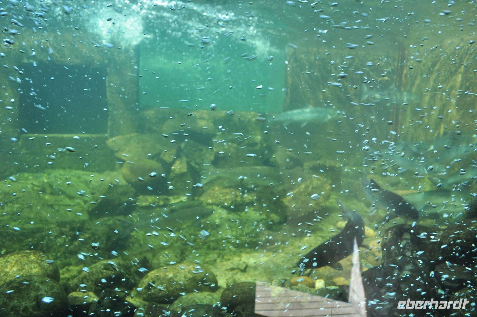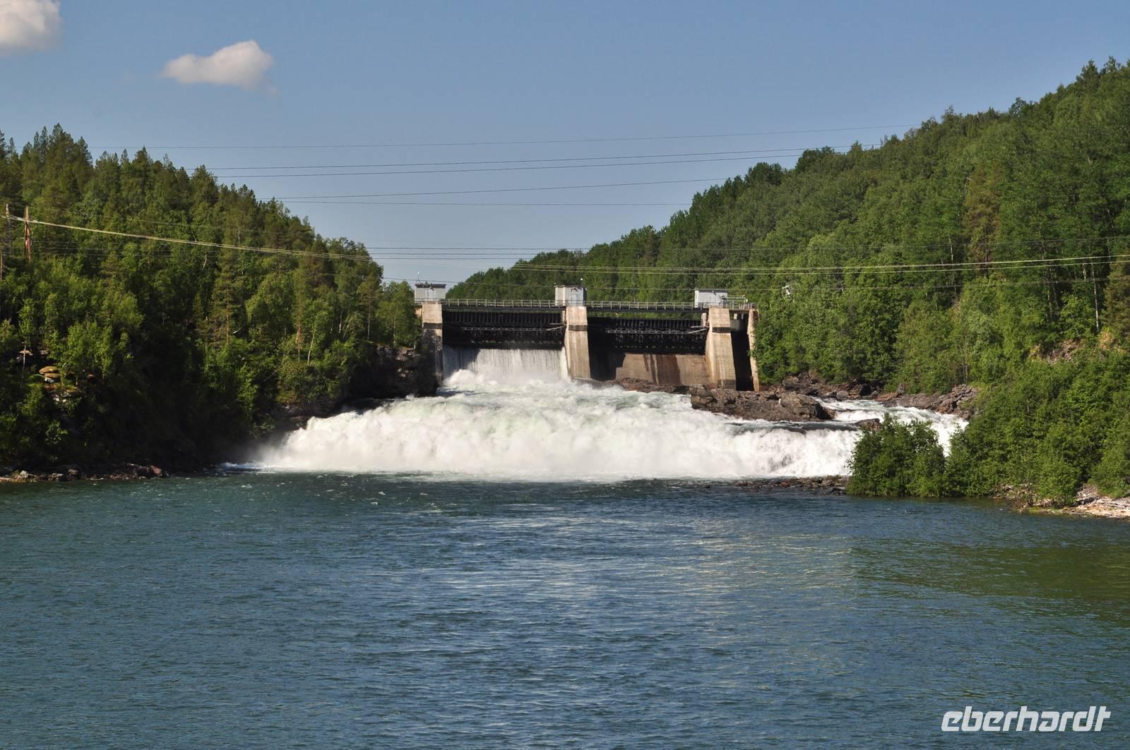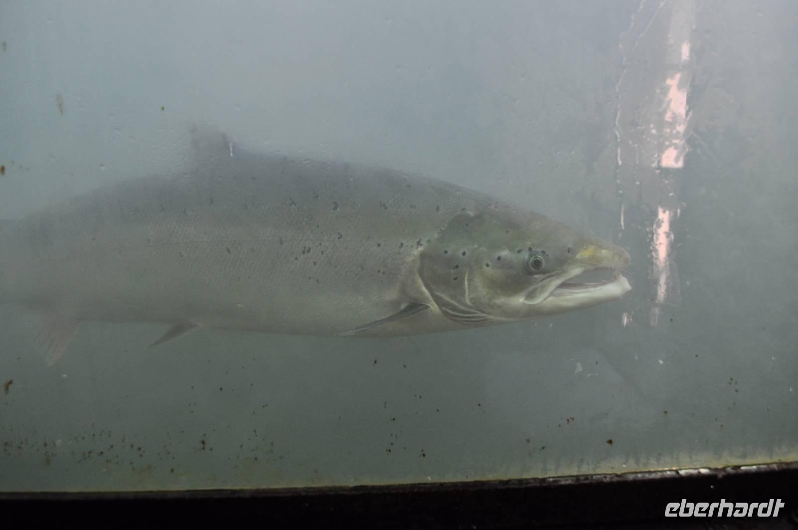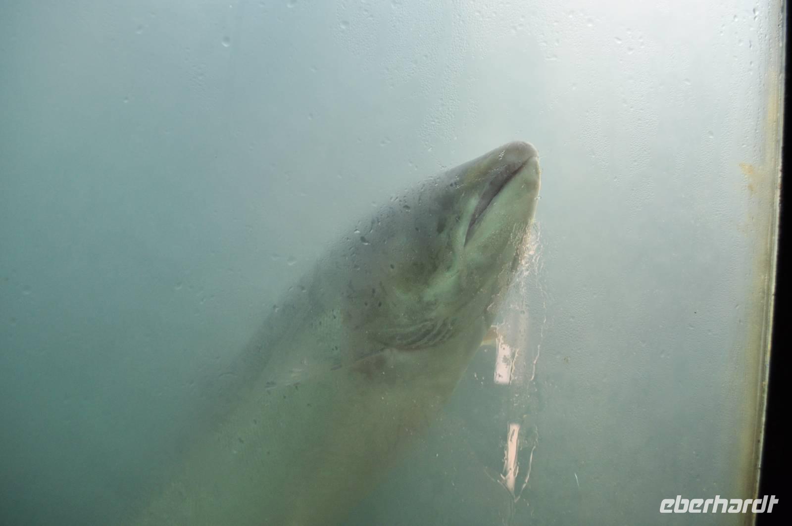 Nun geht es wirklich weiter nach Süden, zunächst über die E8 dann wieder auf die E6. Wir erreichen den Målselvfossen eine beeindruckende tosende Stromschnelle. Auf Wunsch wird Lachssuppe serviert, selbstverständlich zubereitet aus hauseigenem Lachs. Außerdem bekommen wir in einem kleinen Aquarium echte lebende Lachse zu Gesicht.