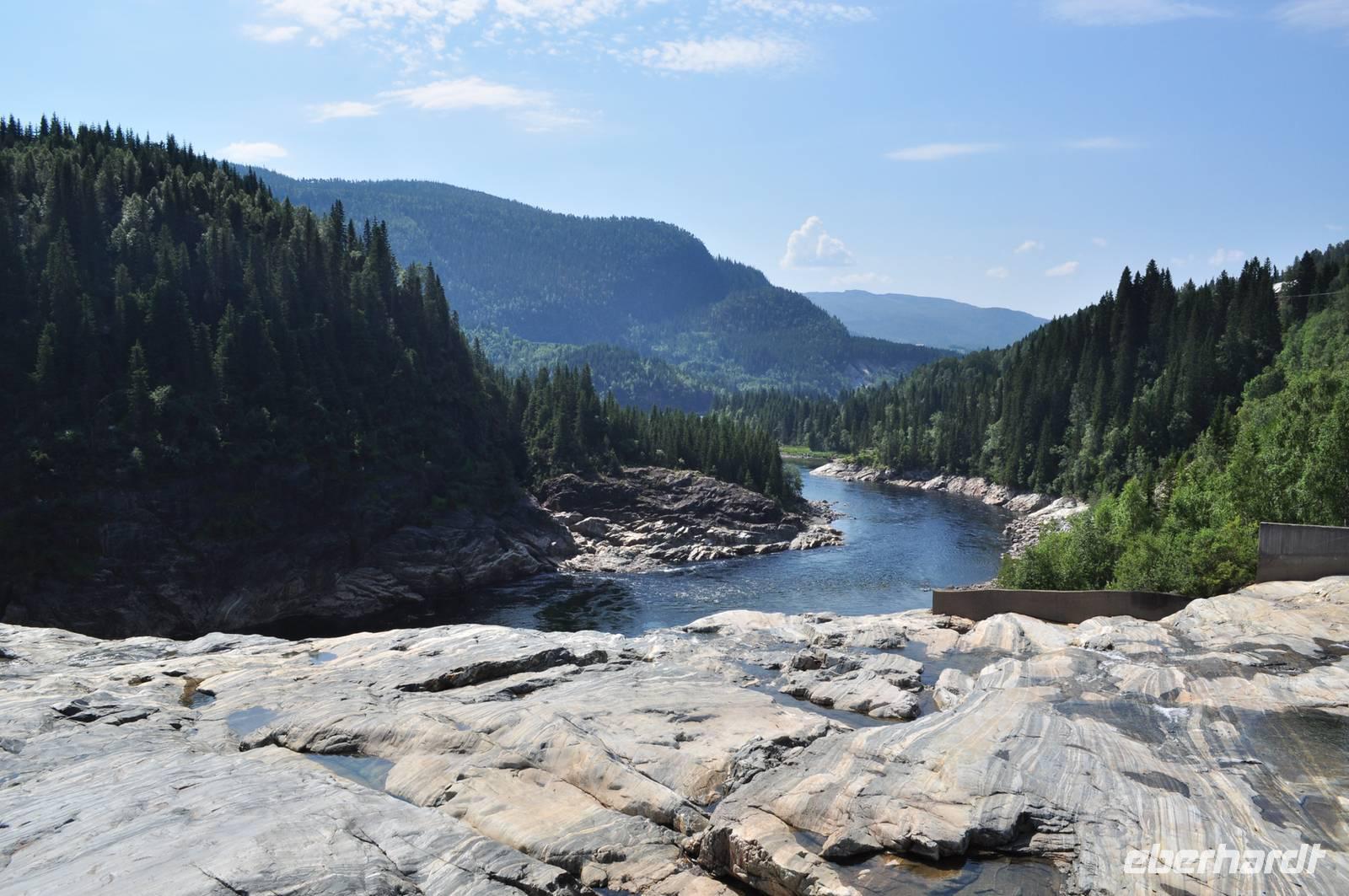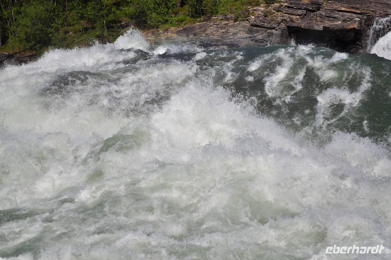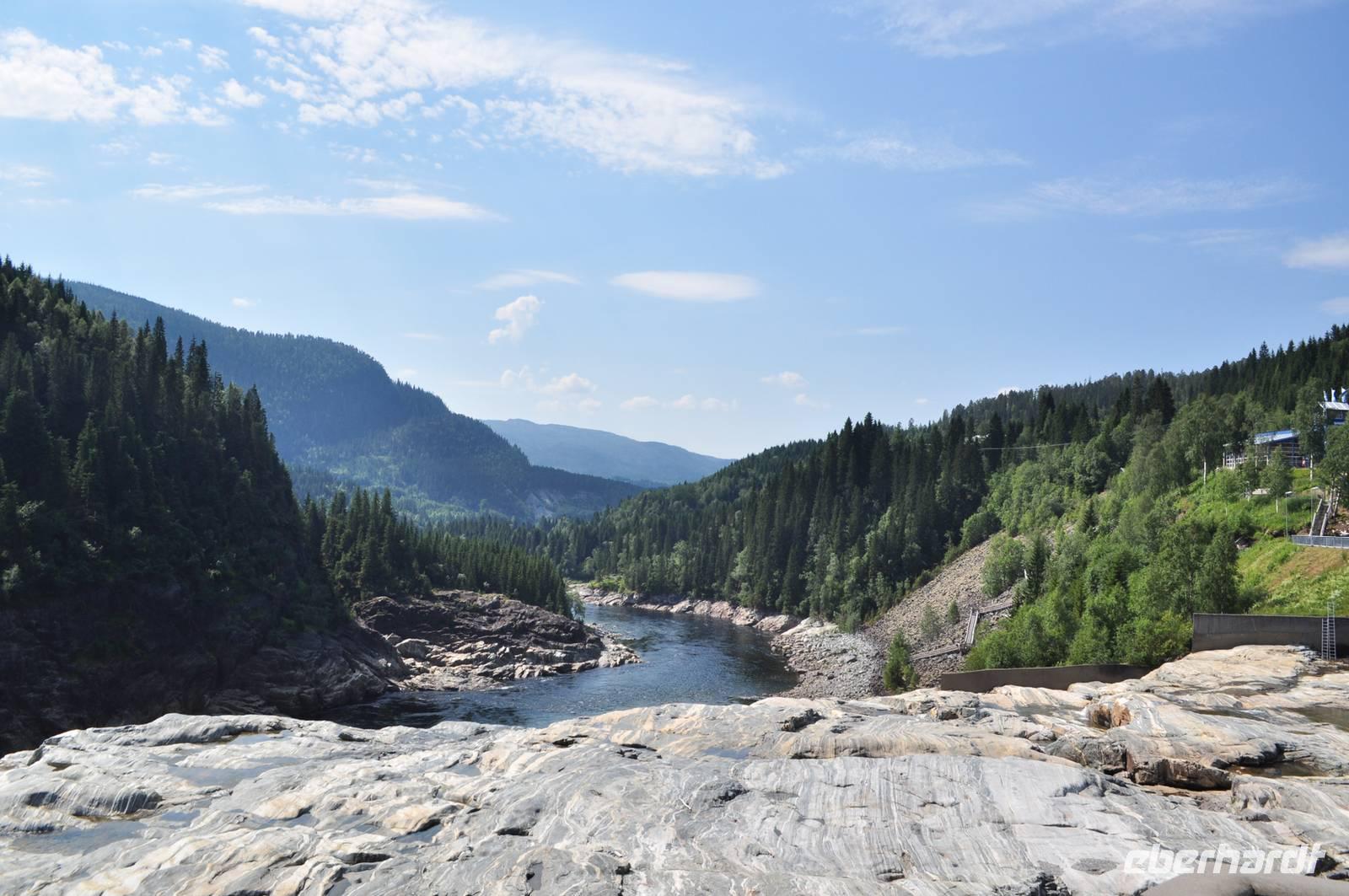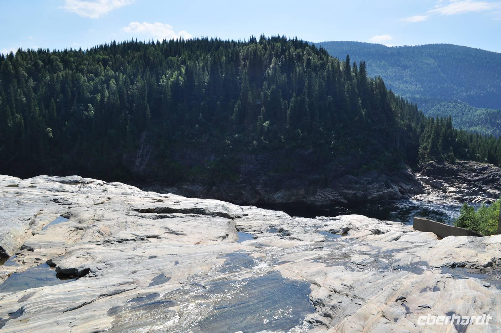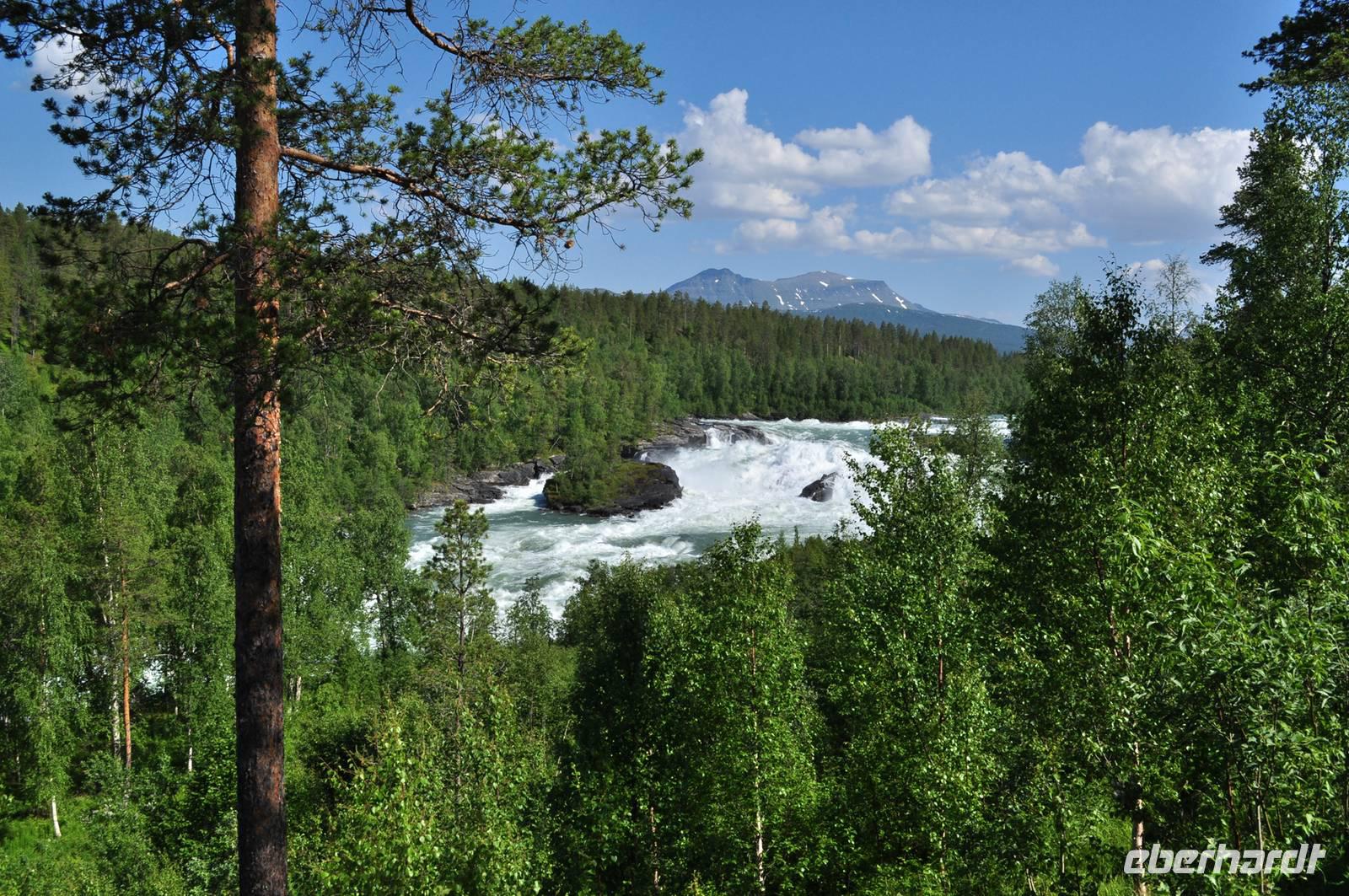 Auf der E6 geht es weiter nach Süden. Vorbei an spektakulären Wasserfällen, z. B. dem Laksforsen, weite und wunderschöne Waldgebiete und viele Fjorde. Stellenweise ist das Meer spiegelglatt, so dass sich die umliegende Bergwelt darin spiegelt. War da nicht ein Troll? Oder dort drüben vielleicht?