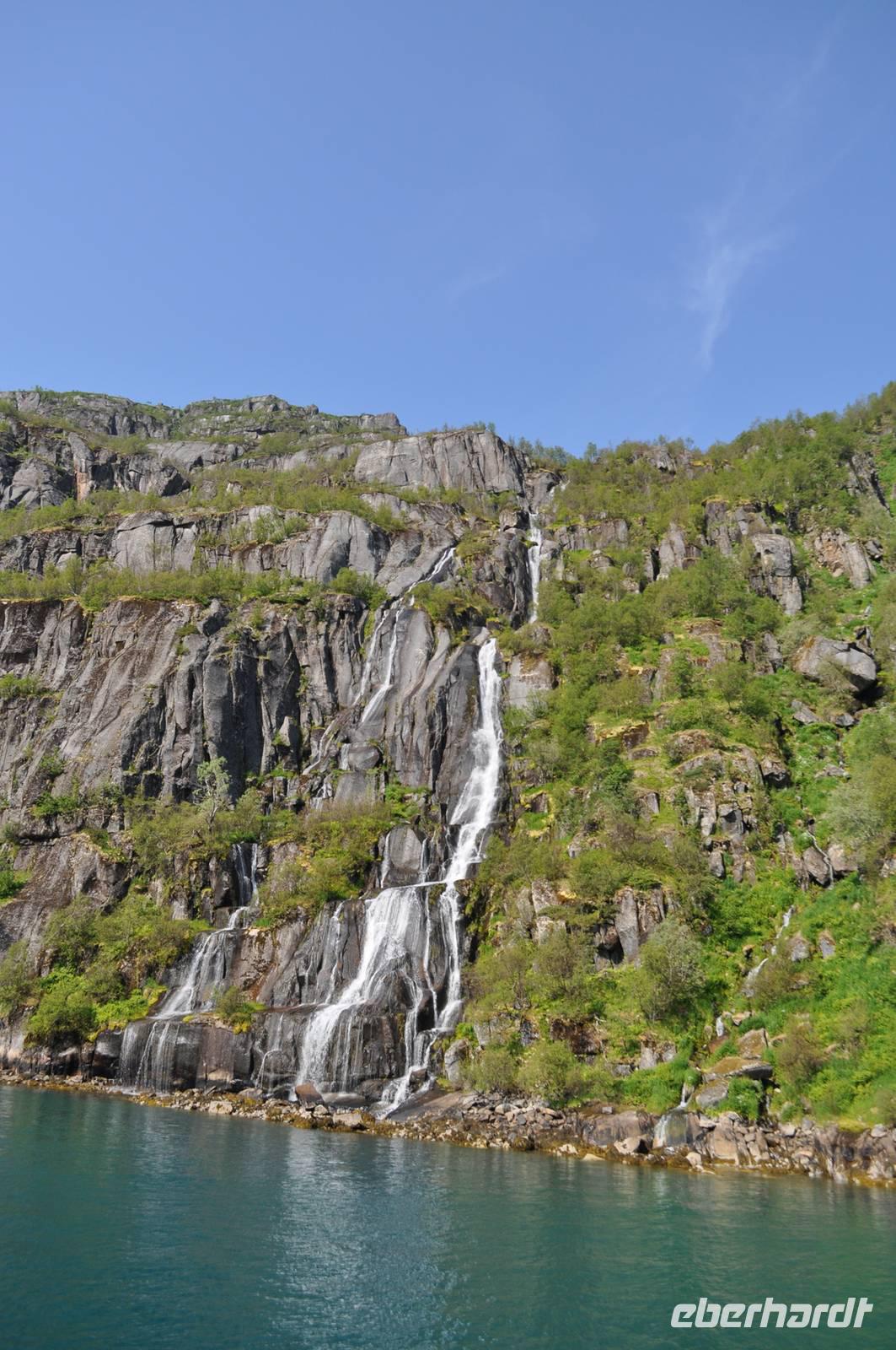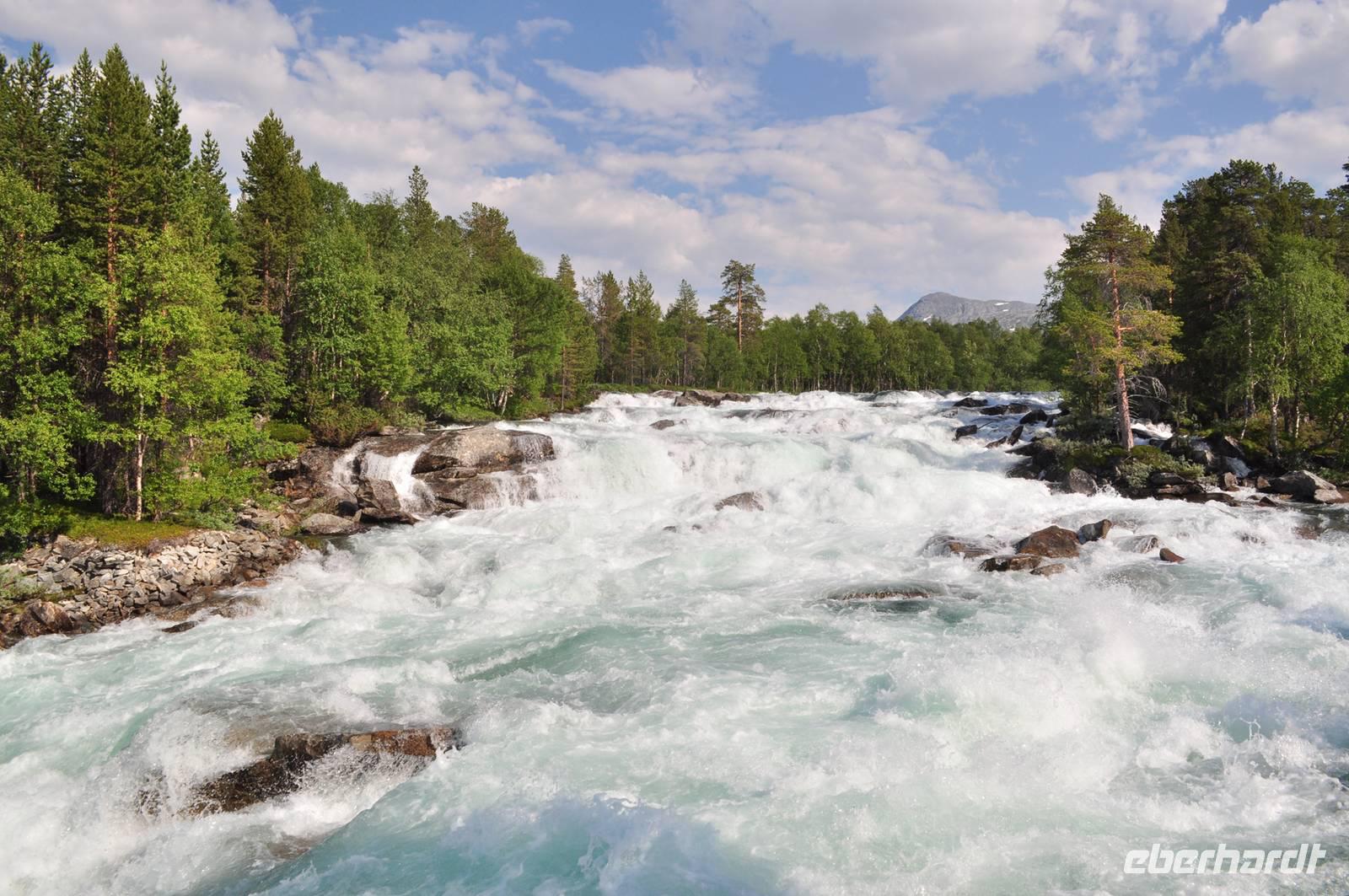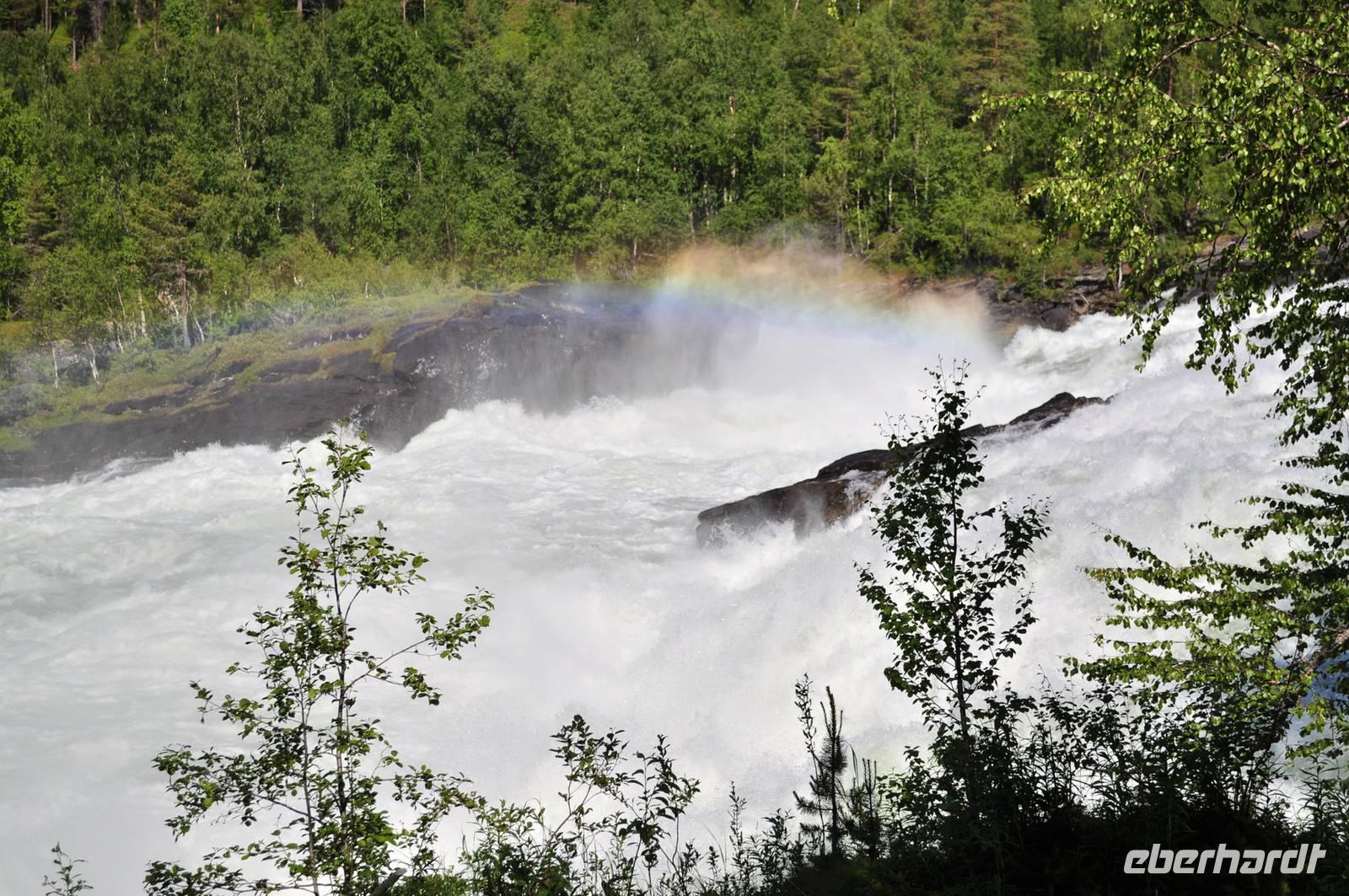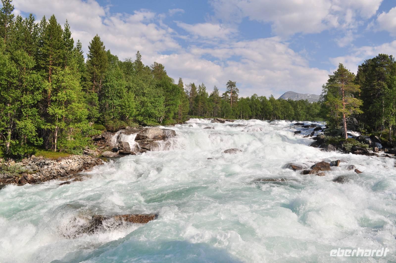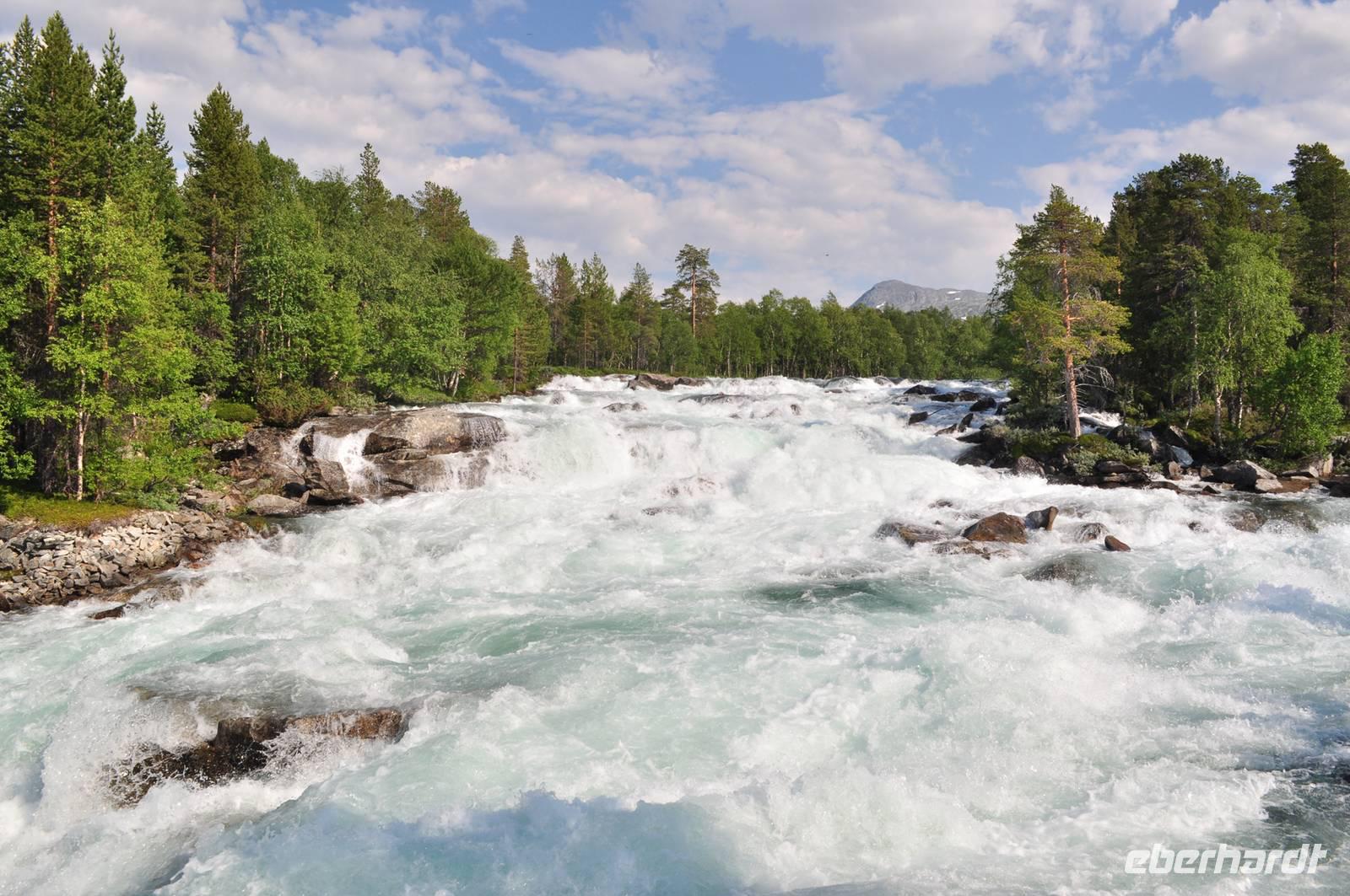 Auf der E6 geht es weiter nach Süden. Vorbei an spektakulären Wasserfällen, z. B. dem Laksforsen, weite und wunderschöne Waldgebiete und viele Fjorde. Stellenweise ist das Meer spiegelglatt, so dass sich die umliegende Bergwelt darin spiegelt. War da nicht ein Troll? Oder dort drüben vielleicht?
