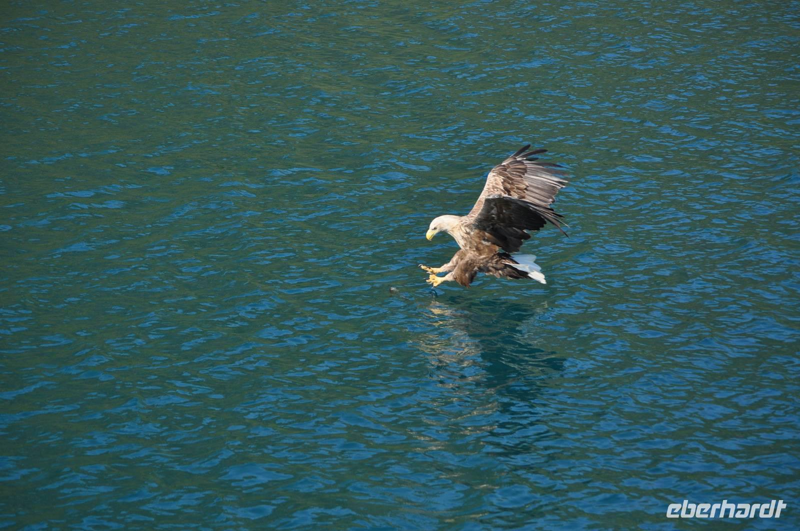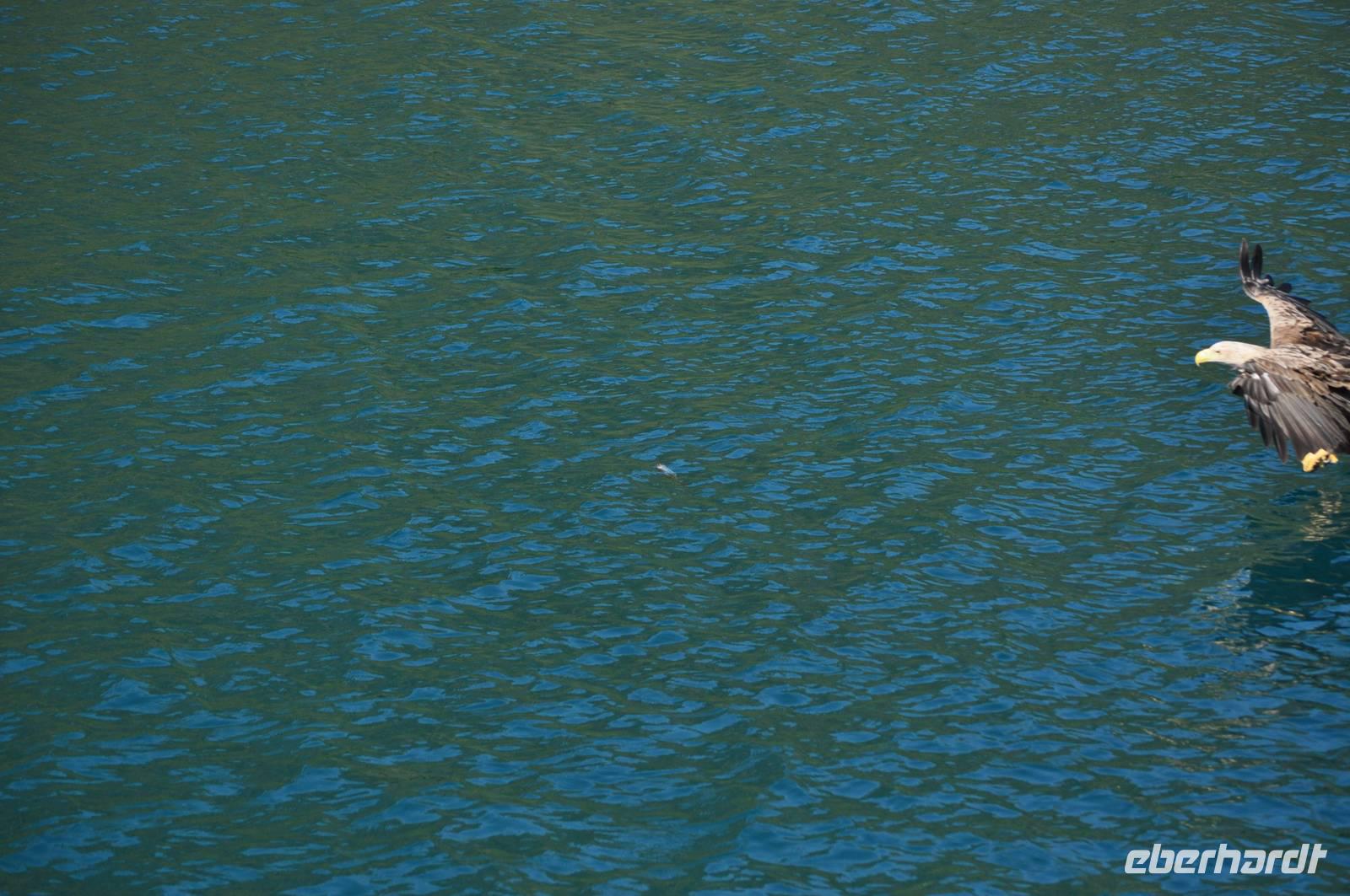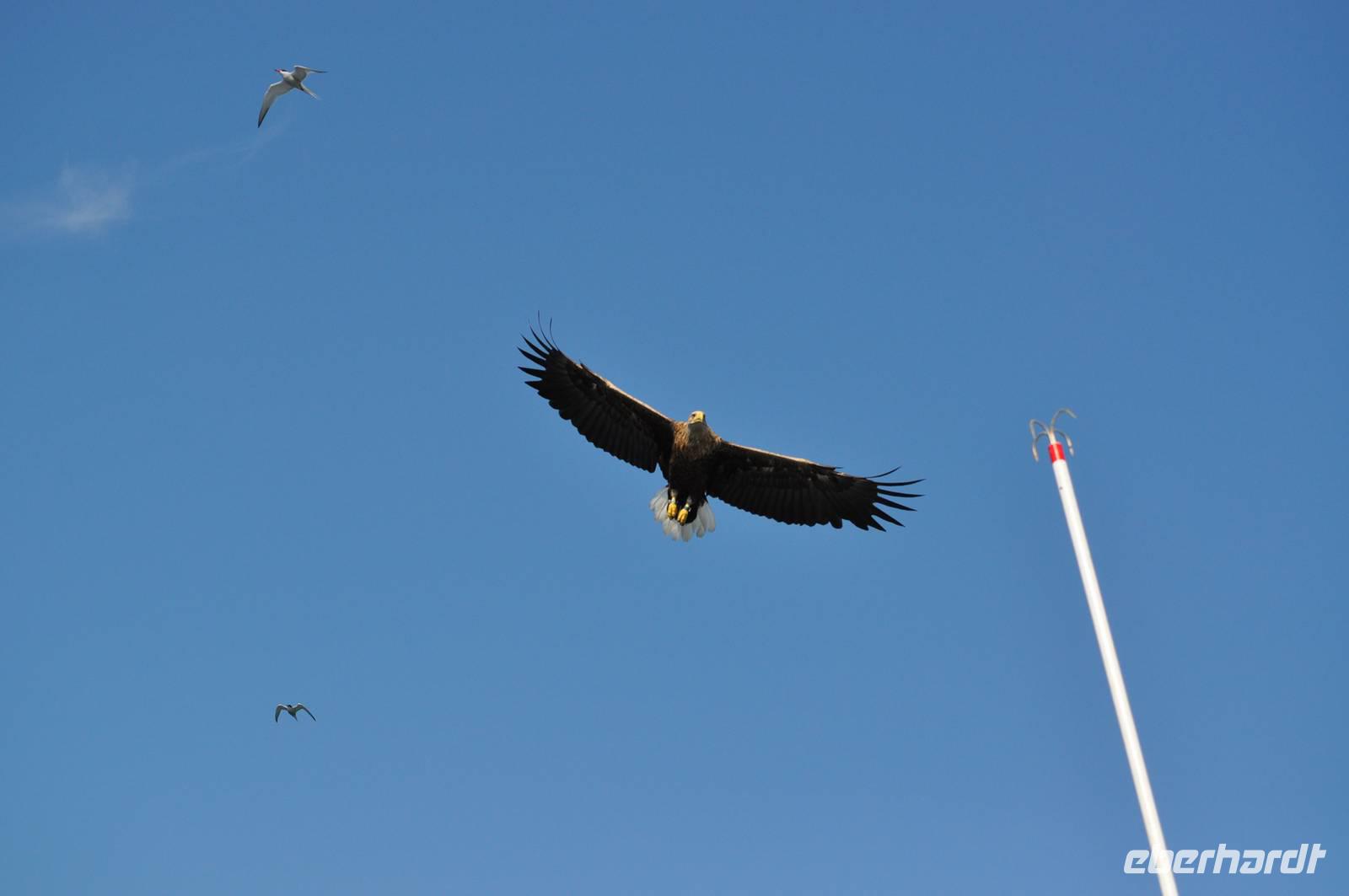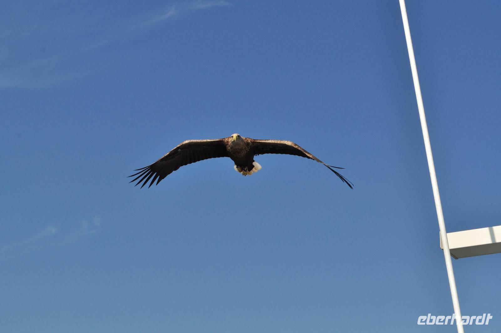 Der Fisch wurde nicht sinnlos gefangen, er wurde für die Seeadler genutzt. Gegen Ende der Fahrt flatterten sogar einige der seltenen Papageitaucher am Boot vorbei.