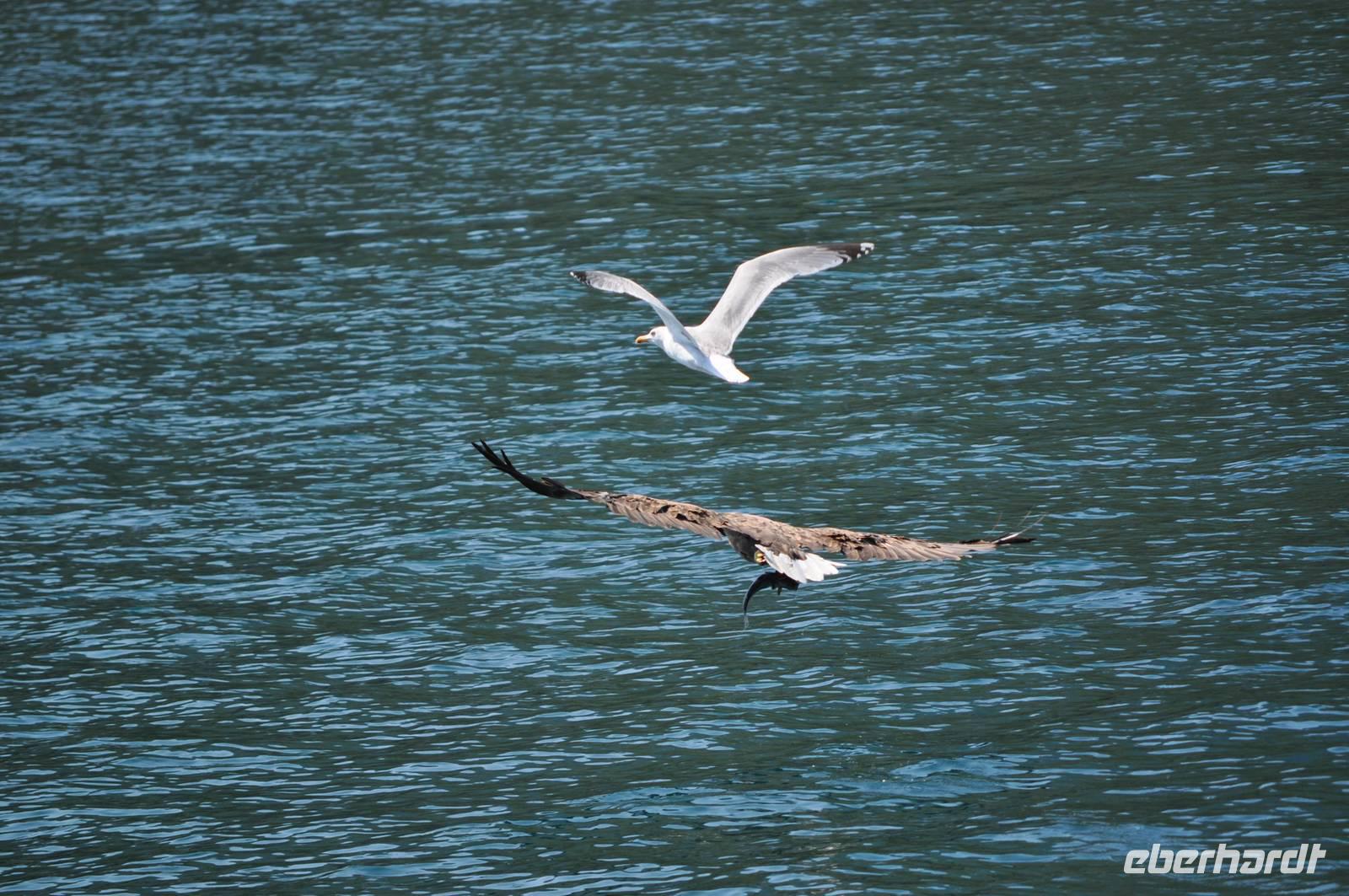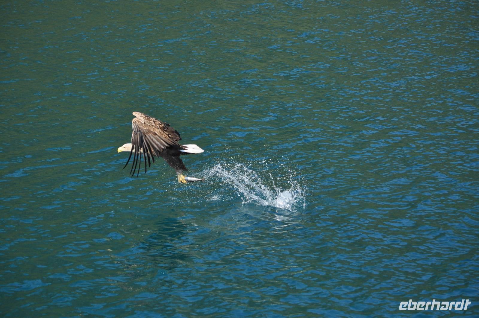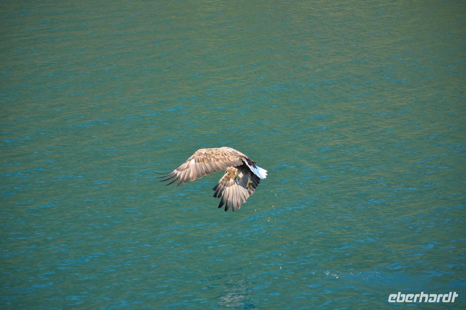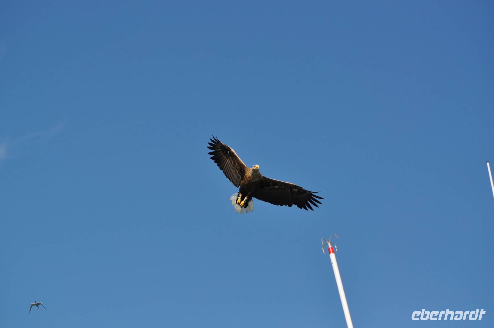 Der Fisch wurde nicht sinnlos gefangen, er wurde für die Seeadler genutzt. Gegen Ende der Fahrt flatterten sogar einige der seltenen Papageitaucher am Boot vorbei.