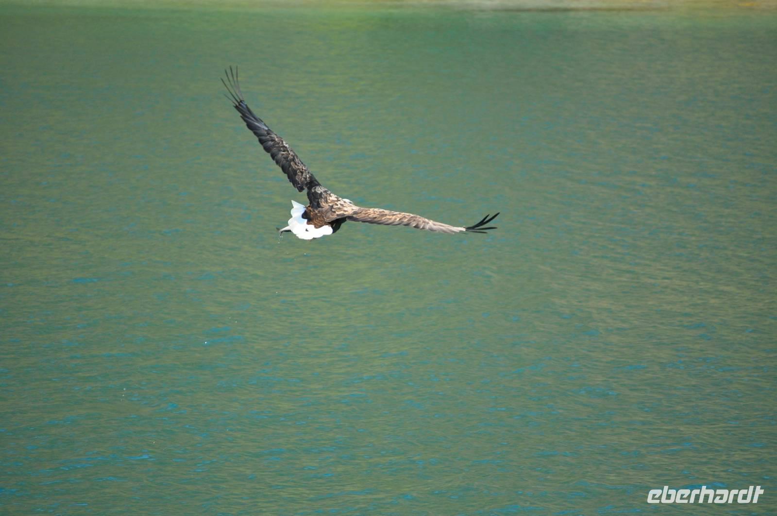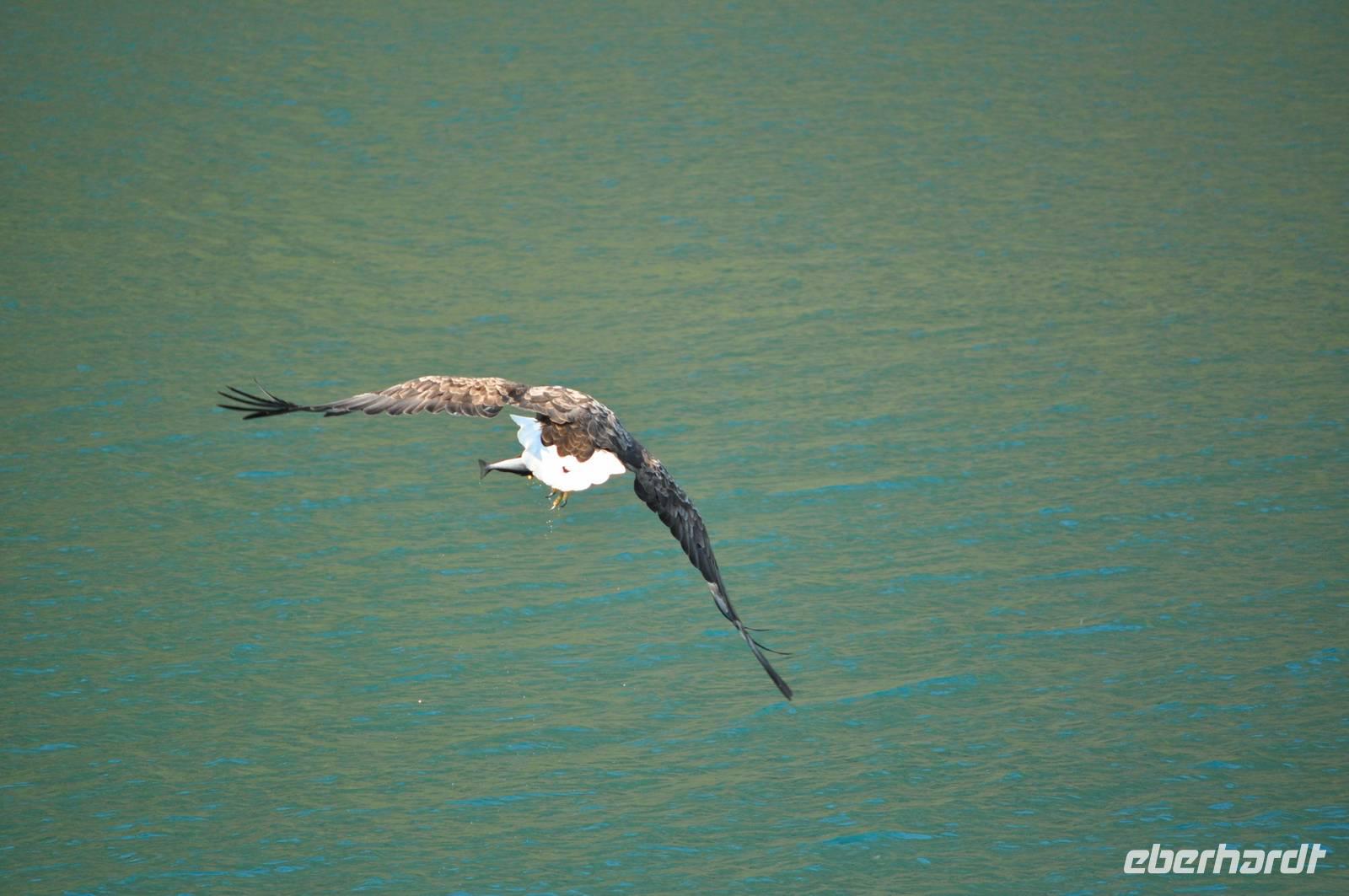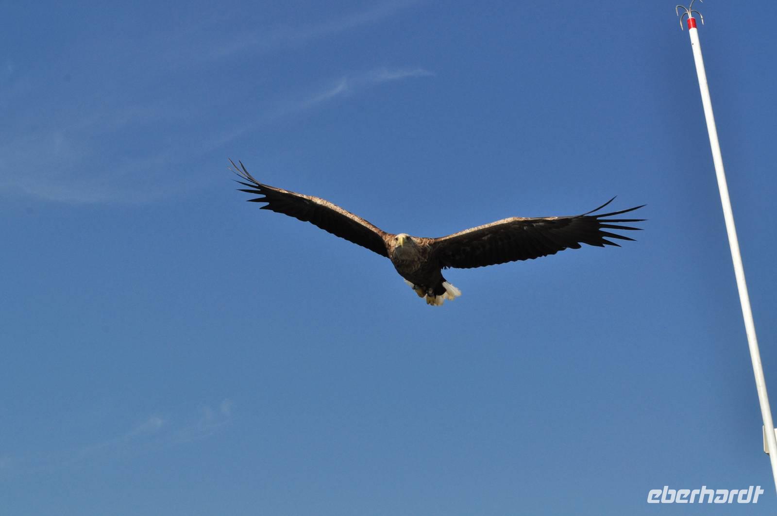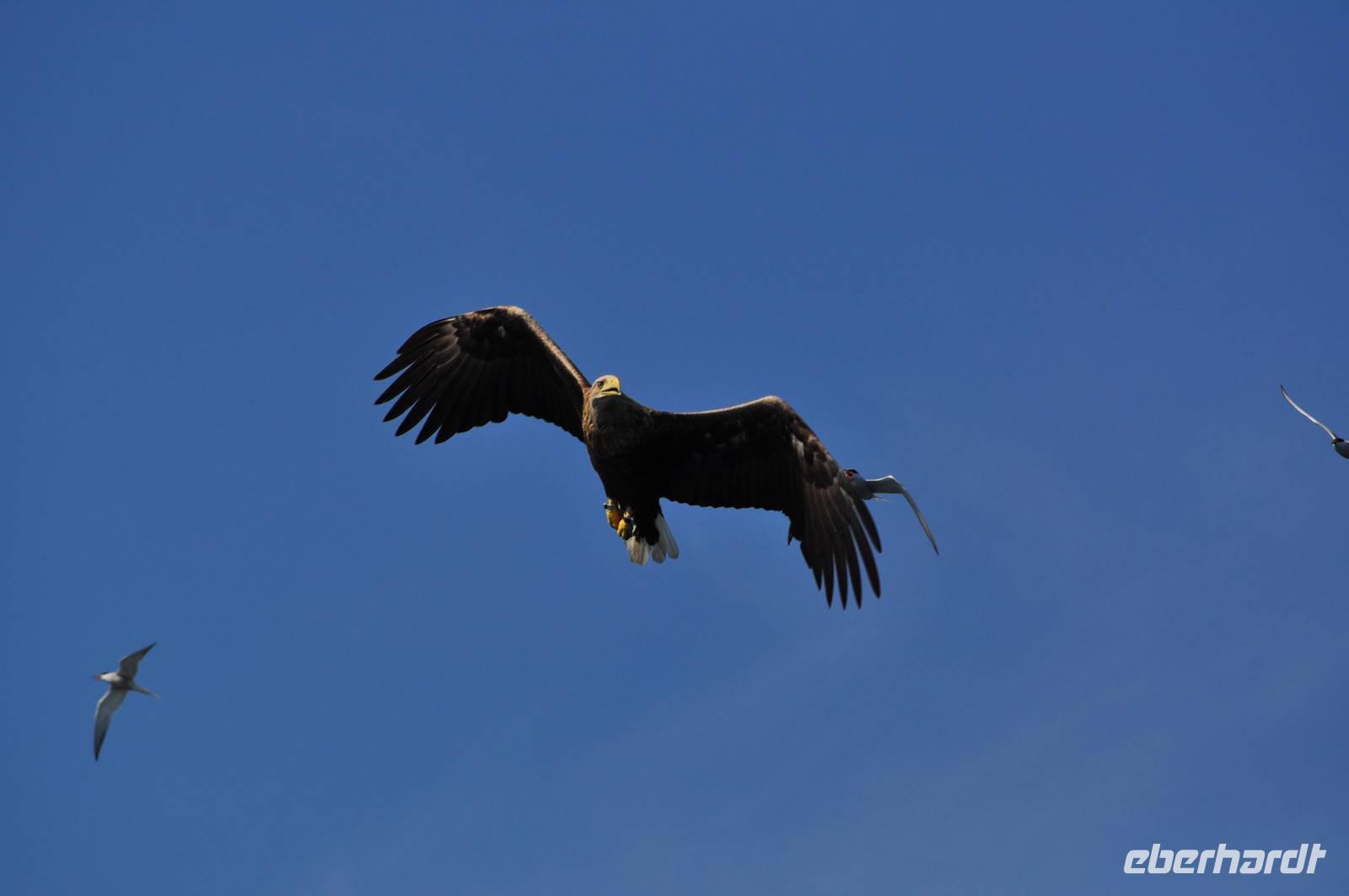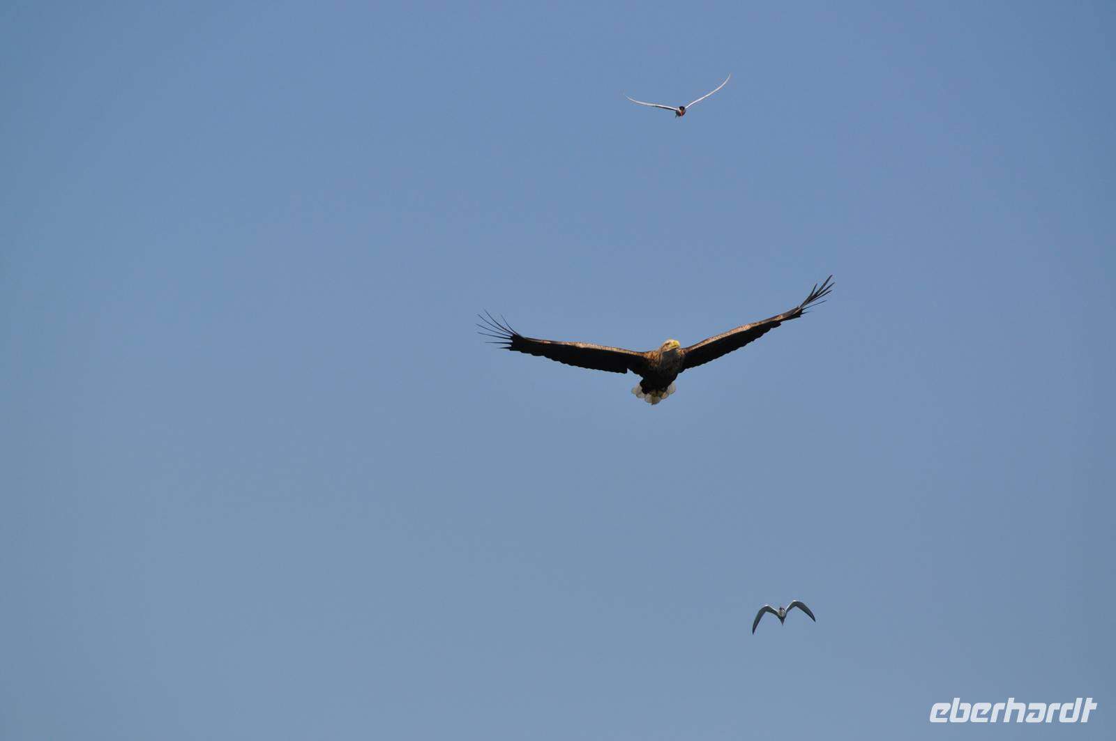 Der Fisch wurde nicht sinnlos gefangen, er wurde für die Seeadler genutzt. Gegen Ende der Fahrt flatterten sogar einige der seltenen Papageitaucher am Boot vorbei.