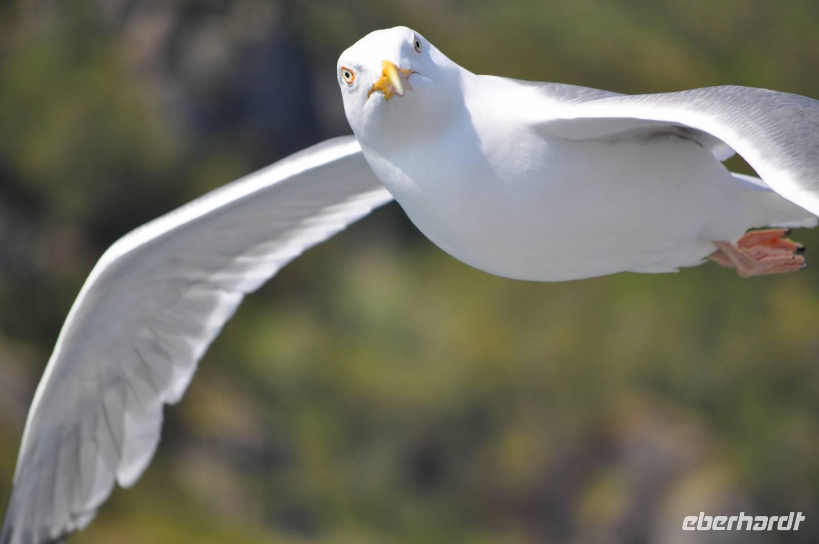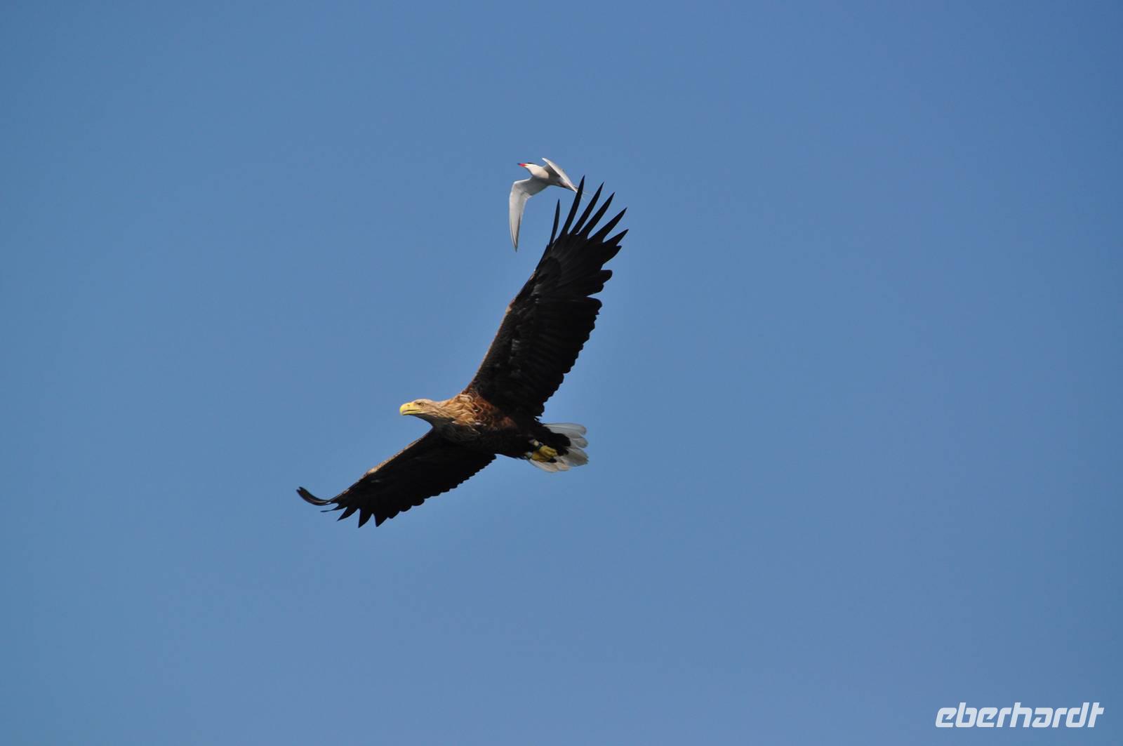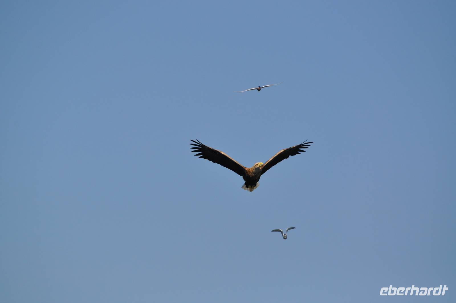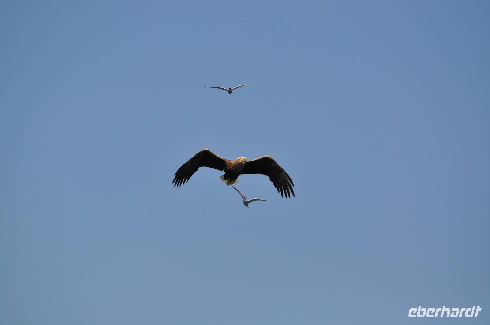 Der Fisch wurde nicht sinnlos gefangen, er wurde für die Seeadler genutzt. Gegen Ende der Fahrt flatterten sogar einige der seltenen Papageitaucher am Boot vorbei.