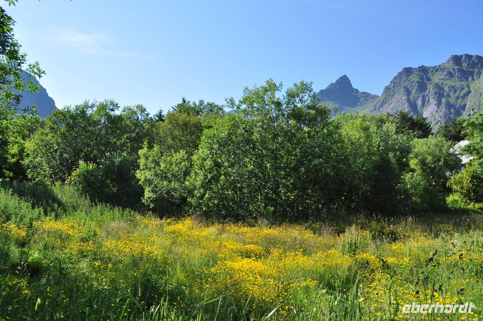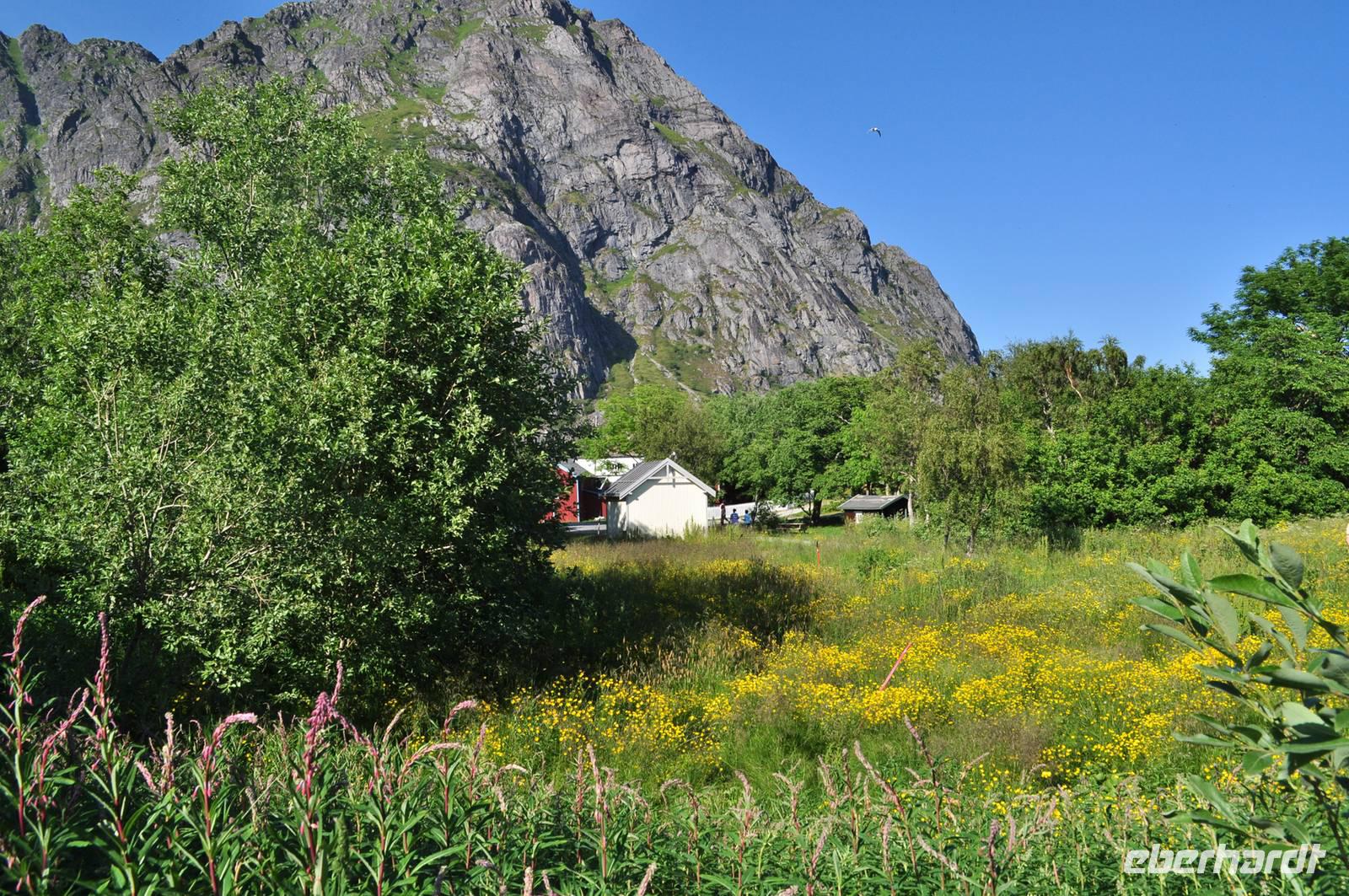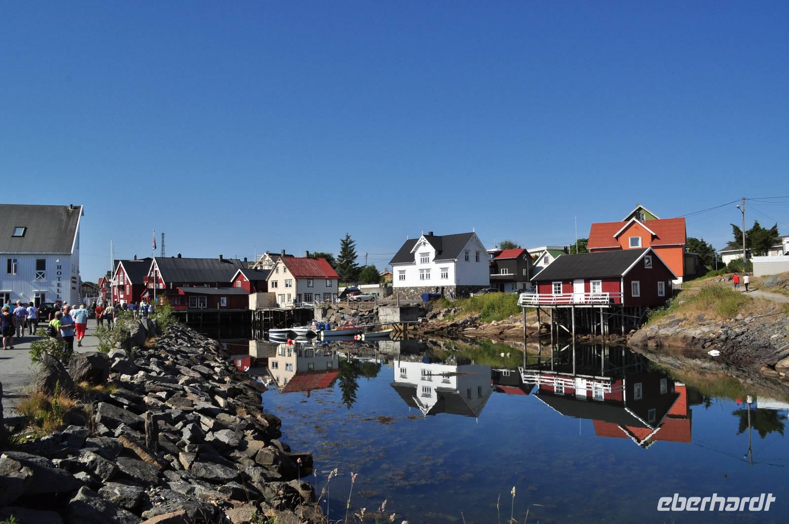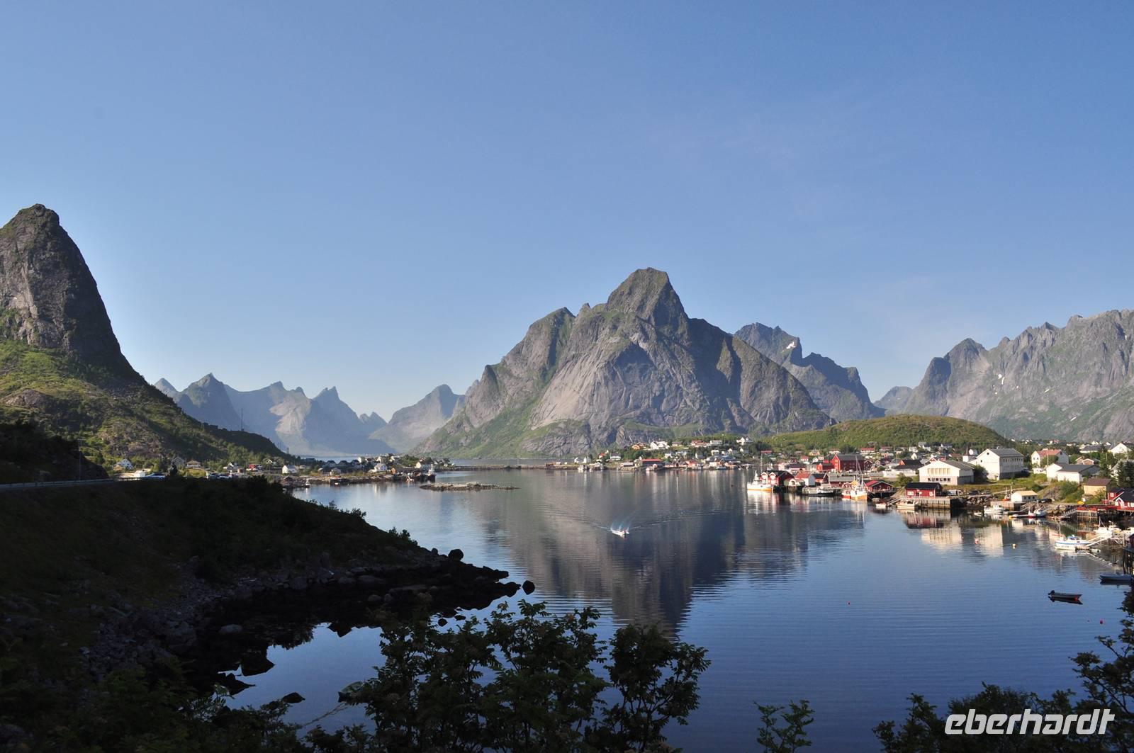 Über eine Reihe einspuriger schmaler Brücken erreichen wir die malerischen Fischerorte Å, Moskenes, Reine und Vikten. Am weißen Sandstrand gibt es sogar die Möglichkeit, das Meer bei karibischen Temperaturen jenseits der 30 Grad Marke zu genießen, es ist so heiß wie seit über